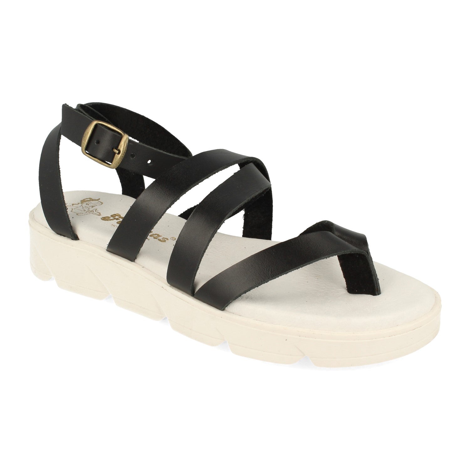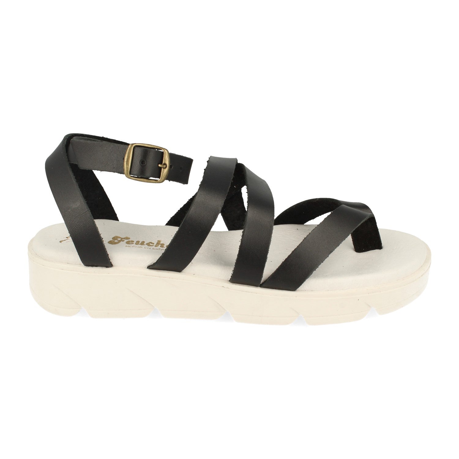 Sandalias Planas de Mujer Comodas Fabricadas en Piel Palas Cruzadas y Cierre de Hebilla Primavera Verano 2021