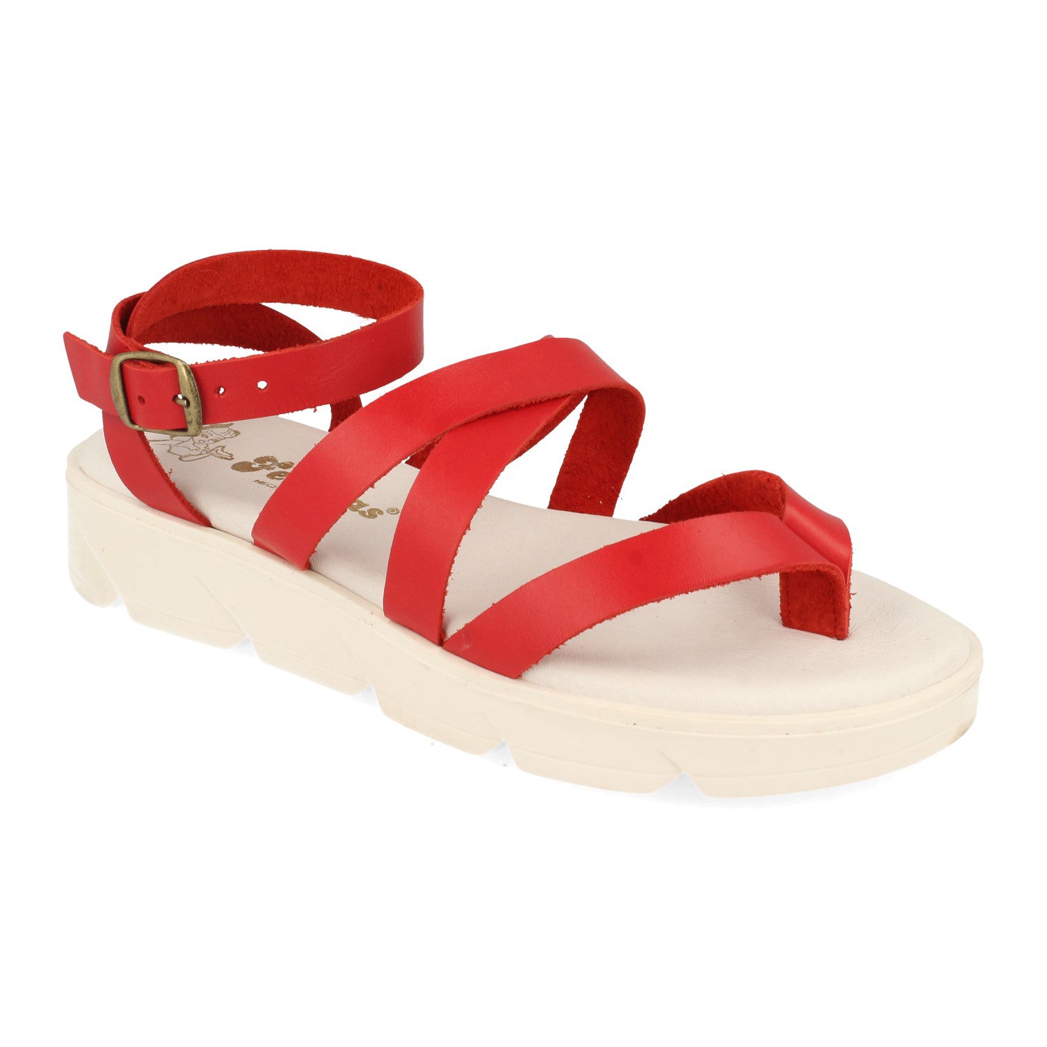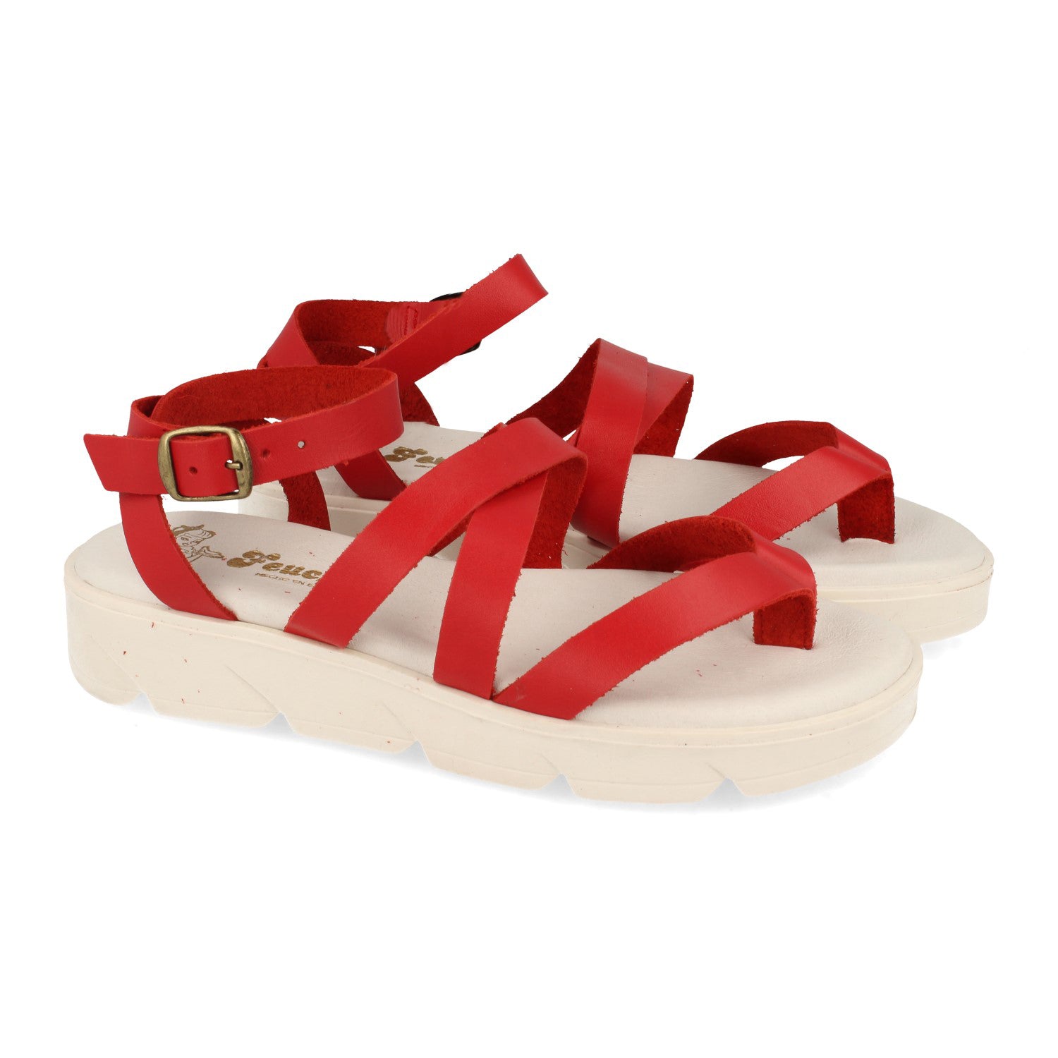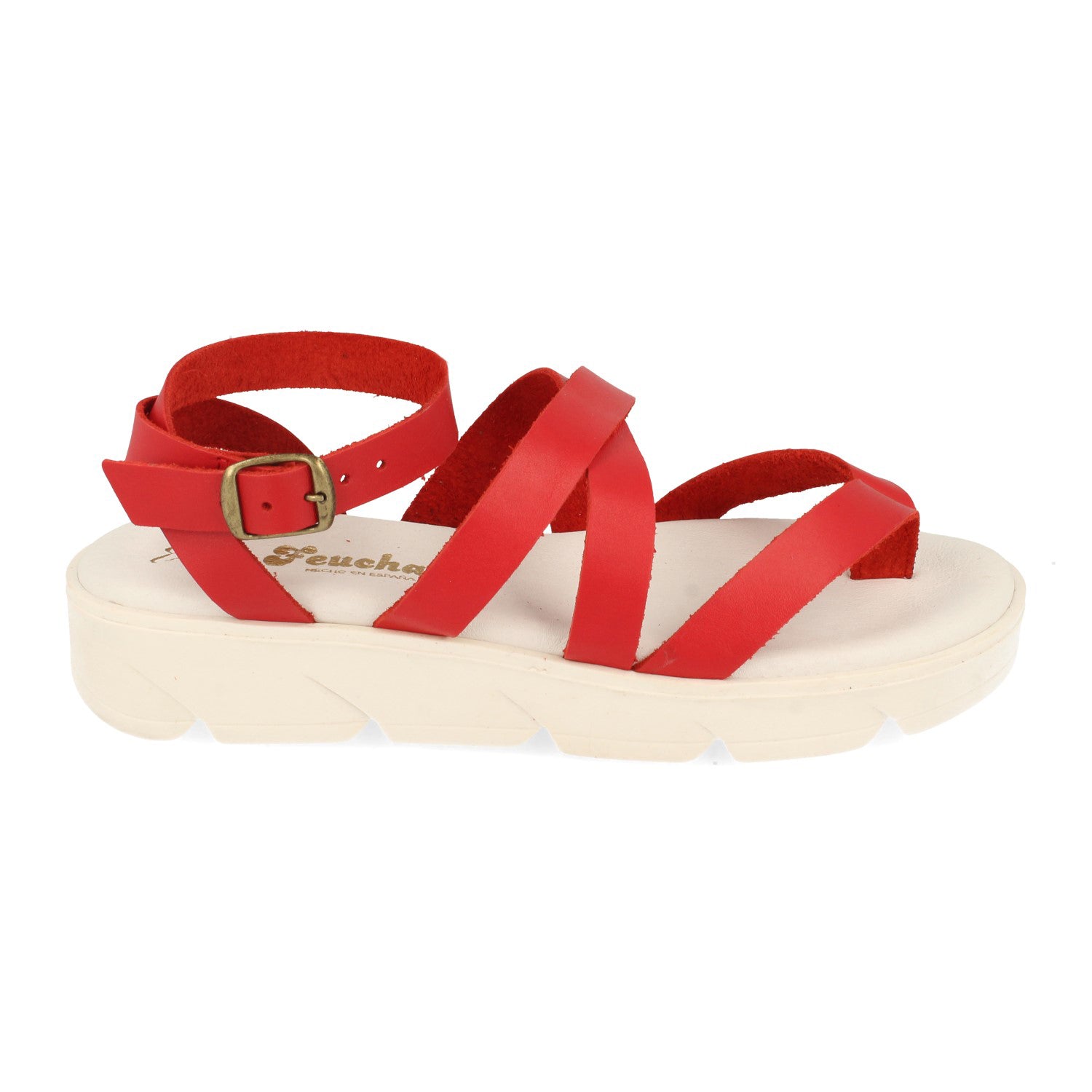 Sandalias Planas de Mujer Comodas Fabricadas en Piel Palas Cruzadas y Cierre de Hebilla Primavera Verano 2021