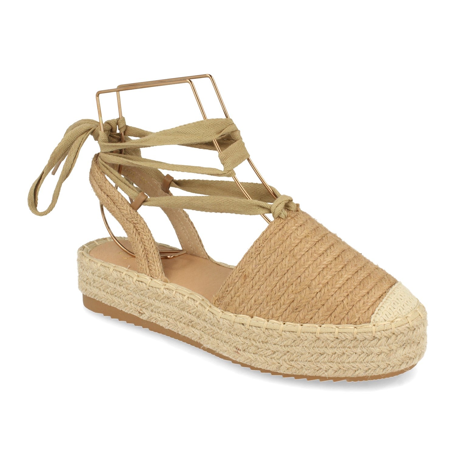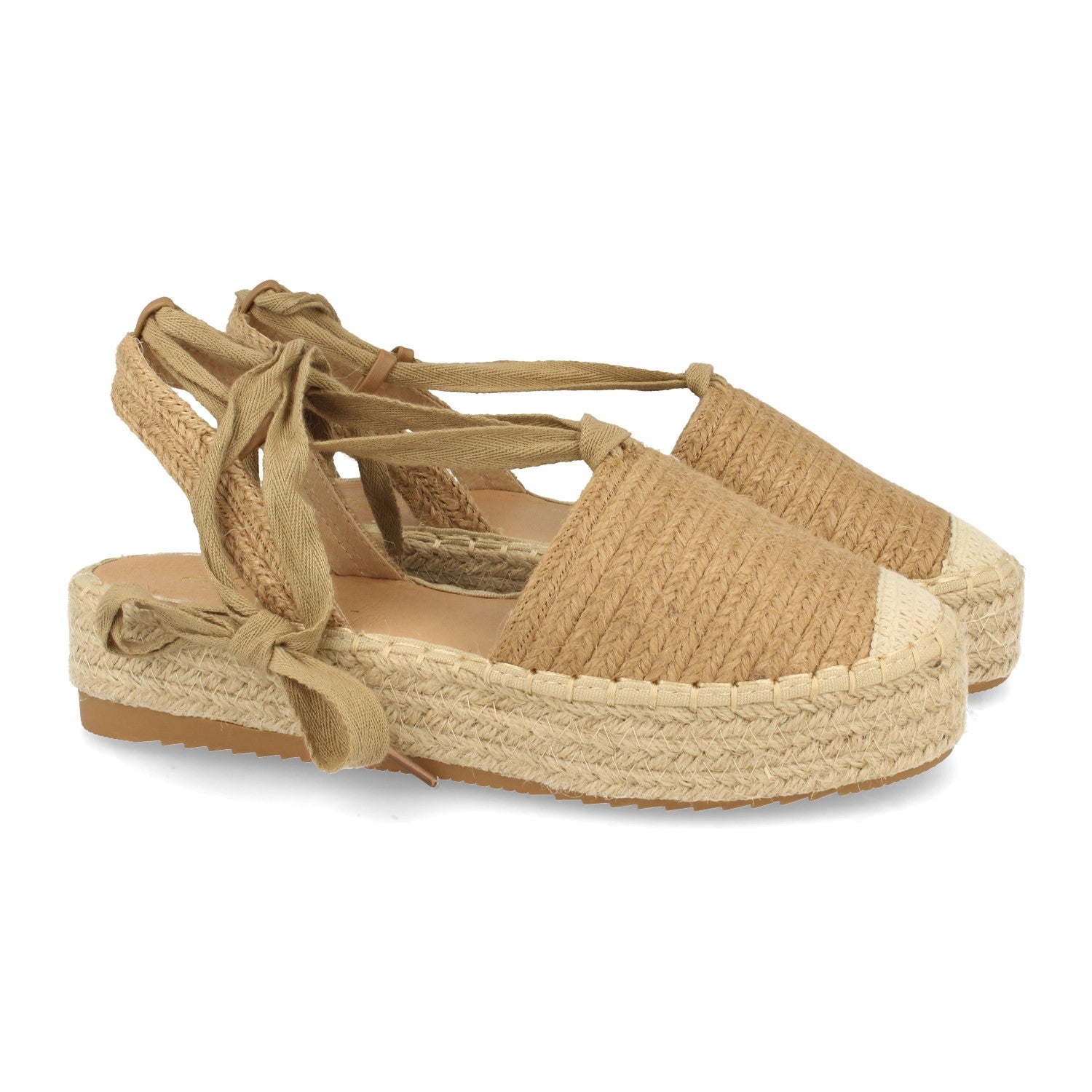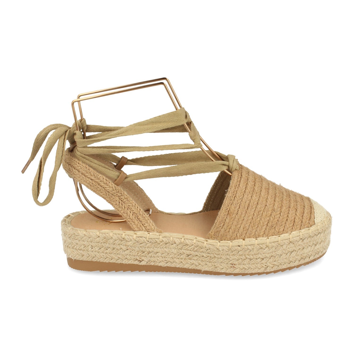 Sandalia de Plataforma con Yute Pala y Talón de Rafia y Cierre de Cuerda Atada al Tobillo Primavera Verano 2021