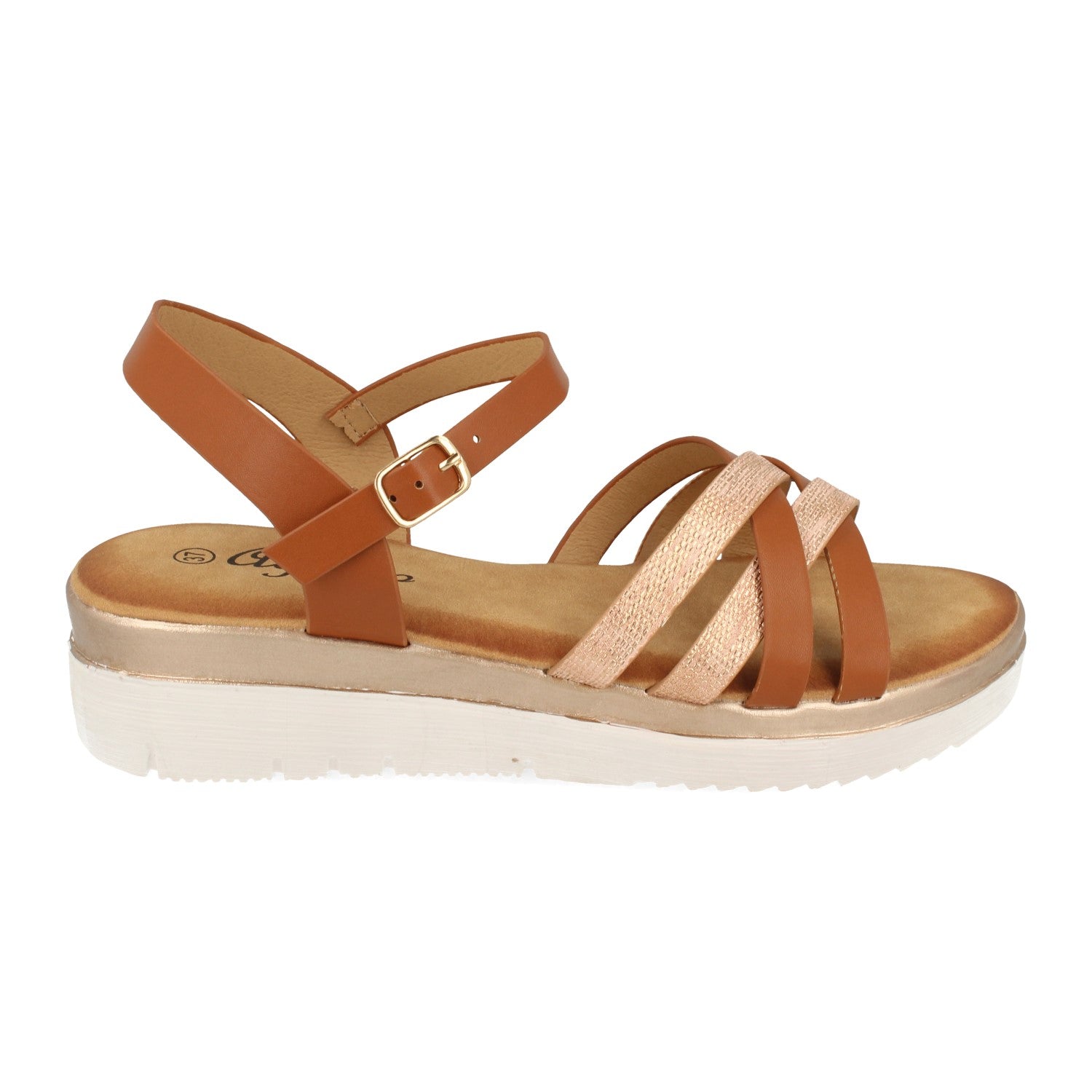 Sandalia Cuña para Mujer Comodas con Palas Cruzadas Multicolor y Cierre de Hebilla Primavera Verano 2021