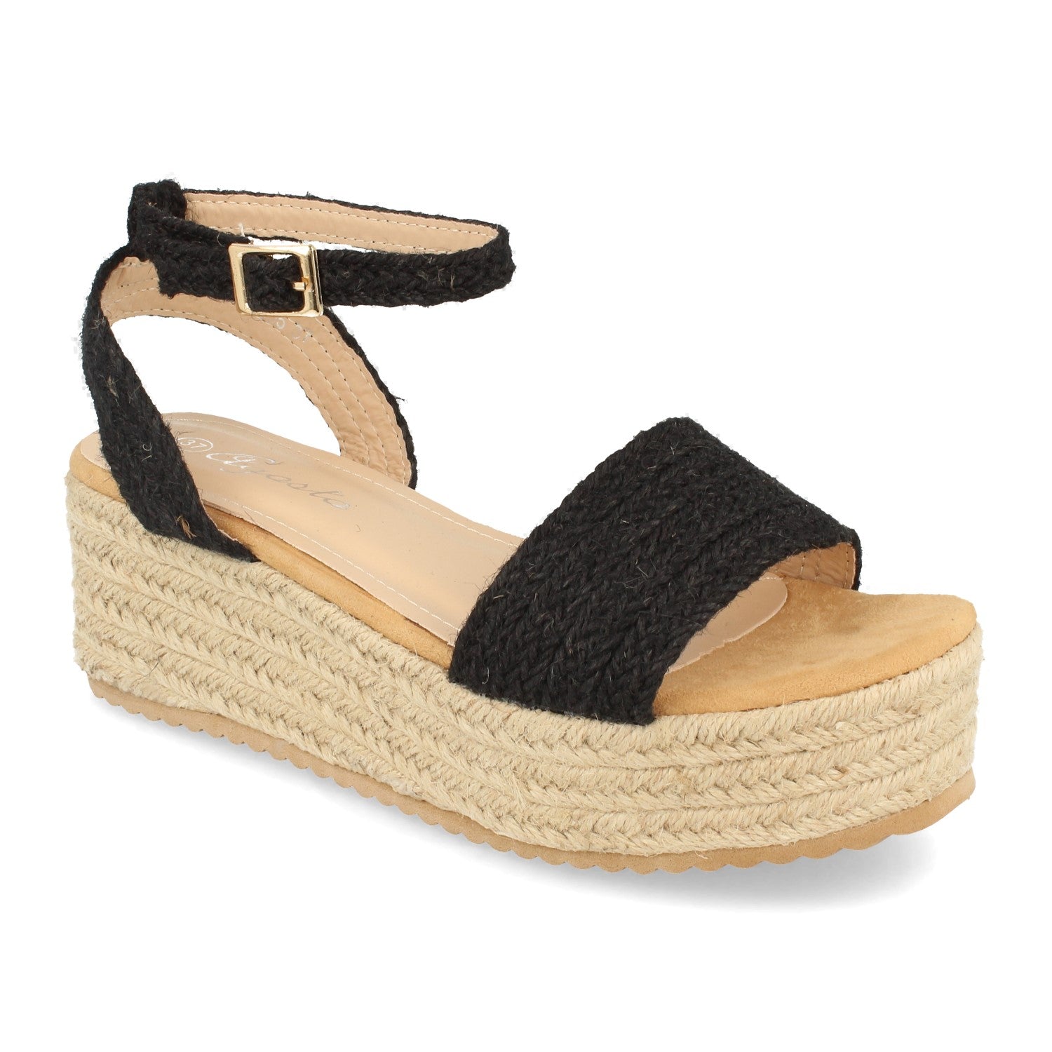 Sandalia de Plataforma con Yute Pala y Talón de Rafia y Cierre de Hebilla Primavera Verano 2021