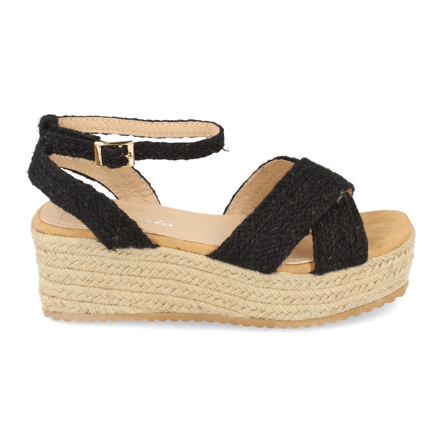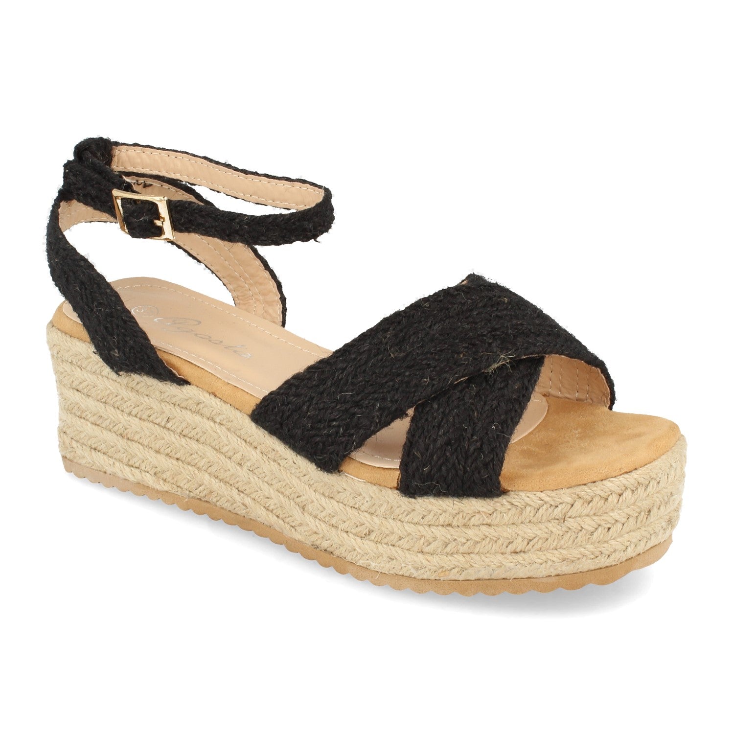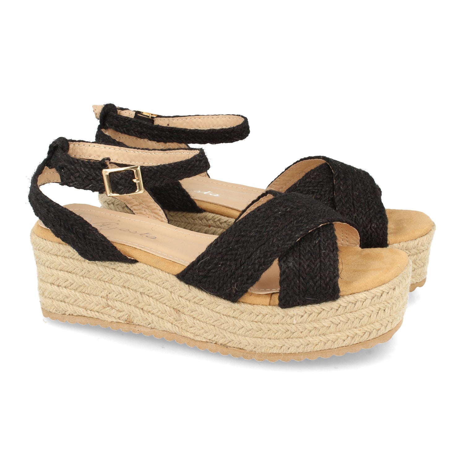 Sandalia de Plataforma con Yute Palas Cruzadas de Rafia y Cierre de Hebilla Primavera Verano 2021