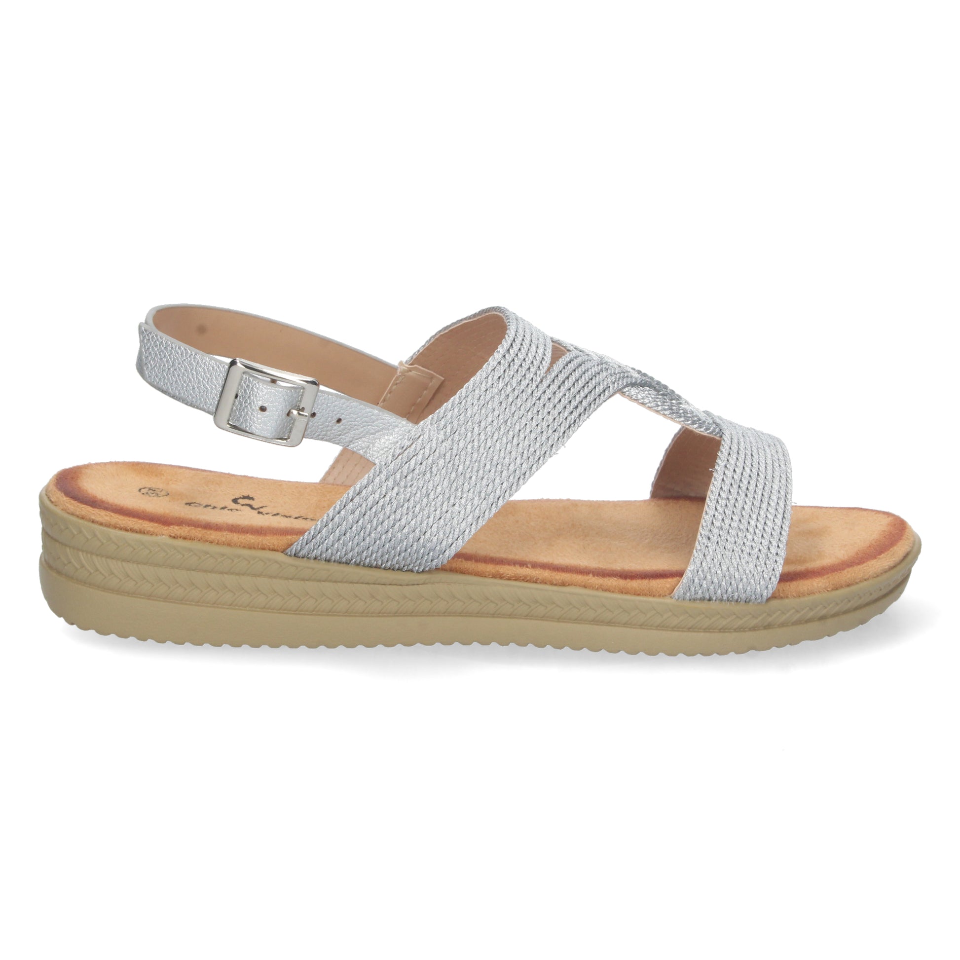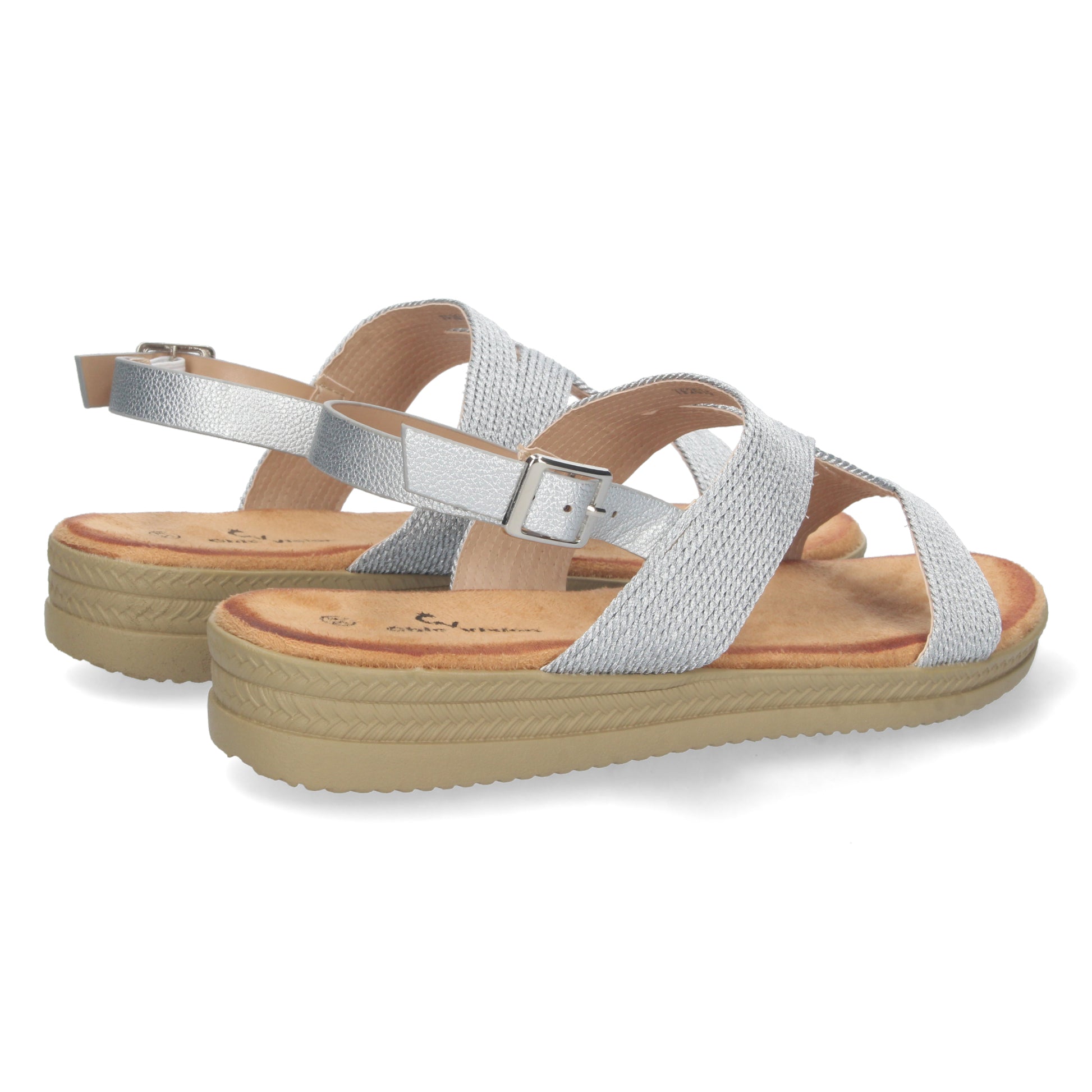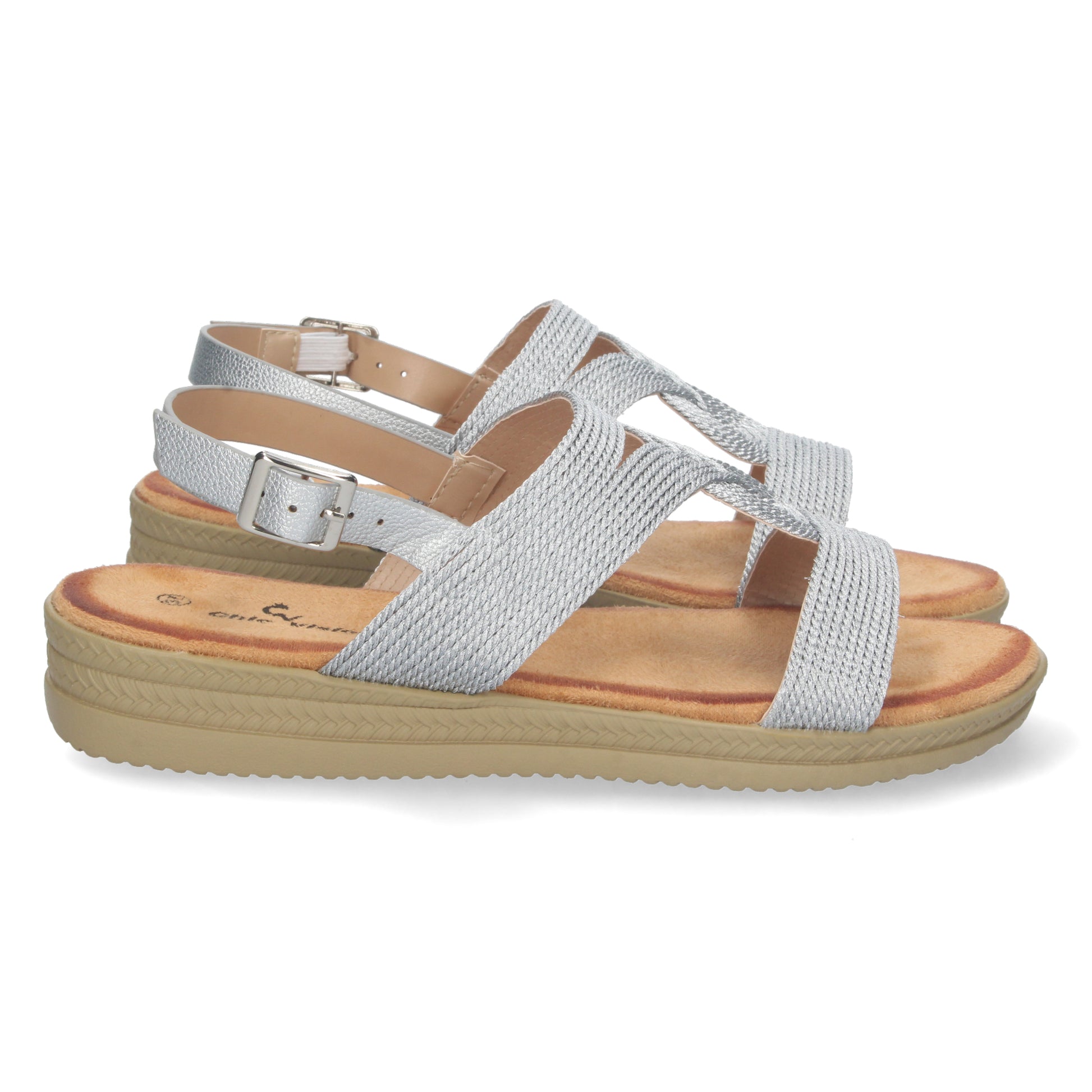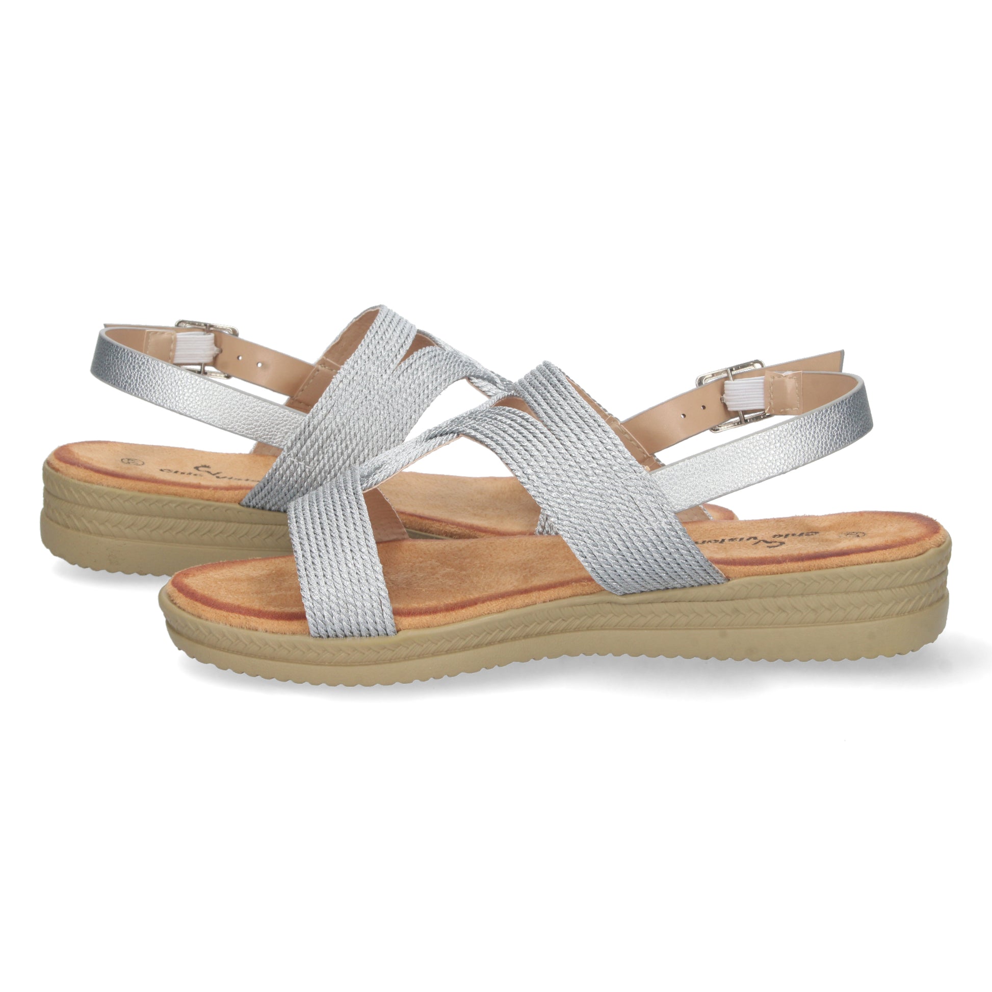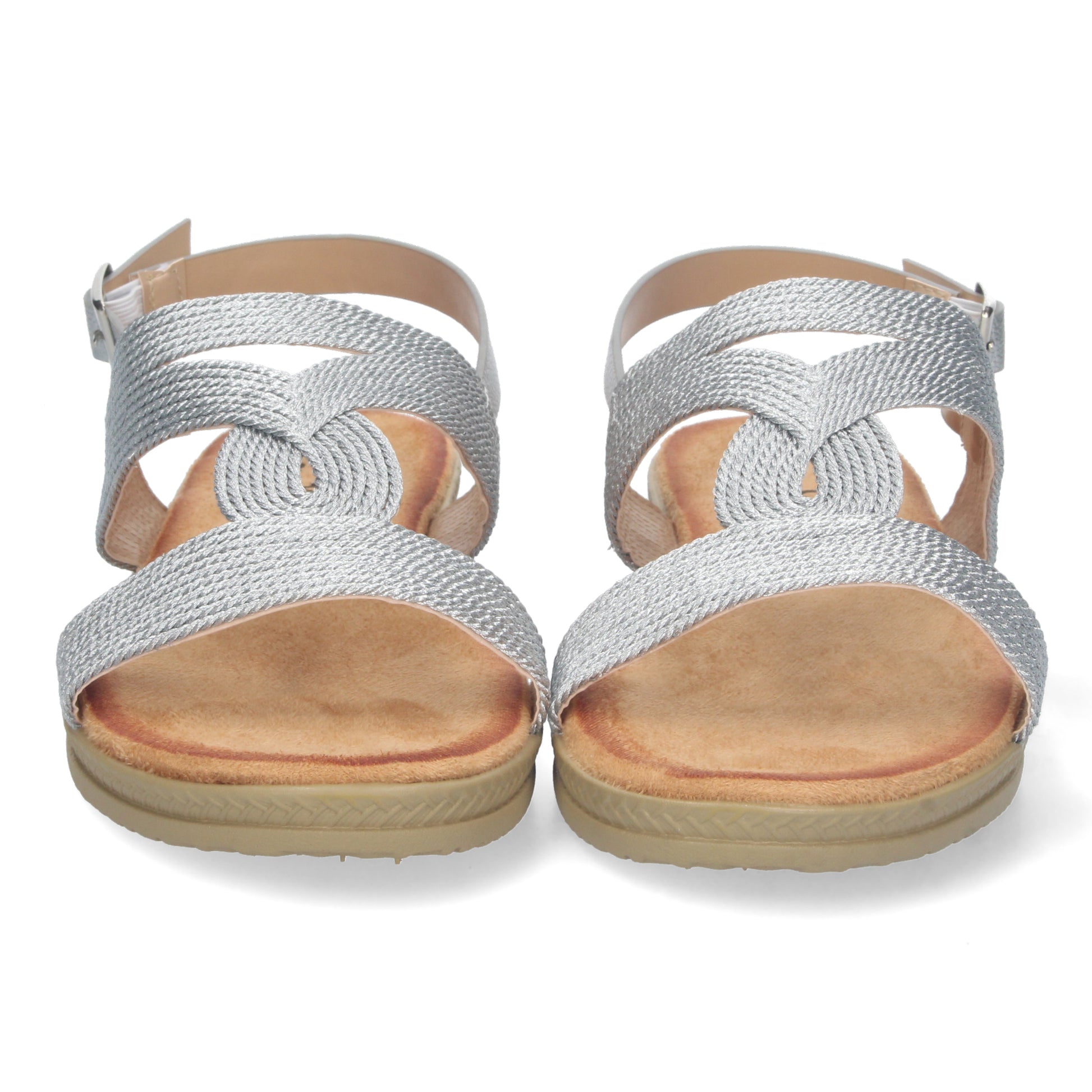 Sandalia Plana para Mujer Comoda con Pala en T Trenzada Metalizado y Cierre de Hebilla en el Tobillo
