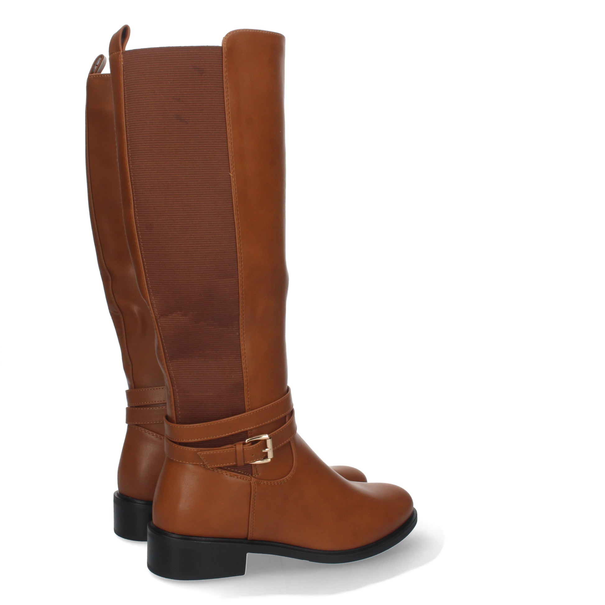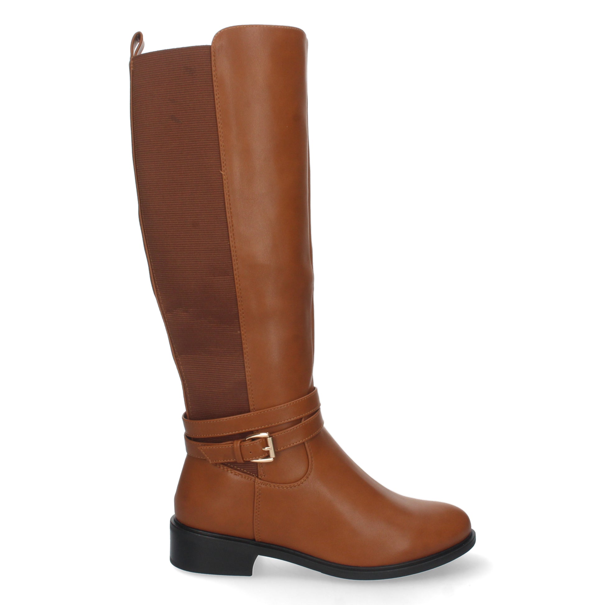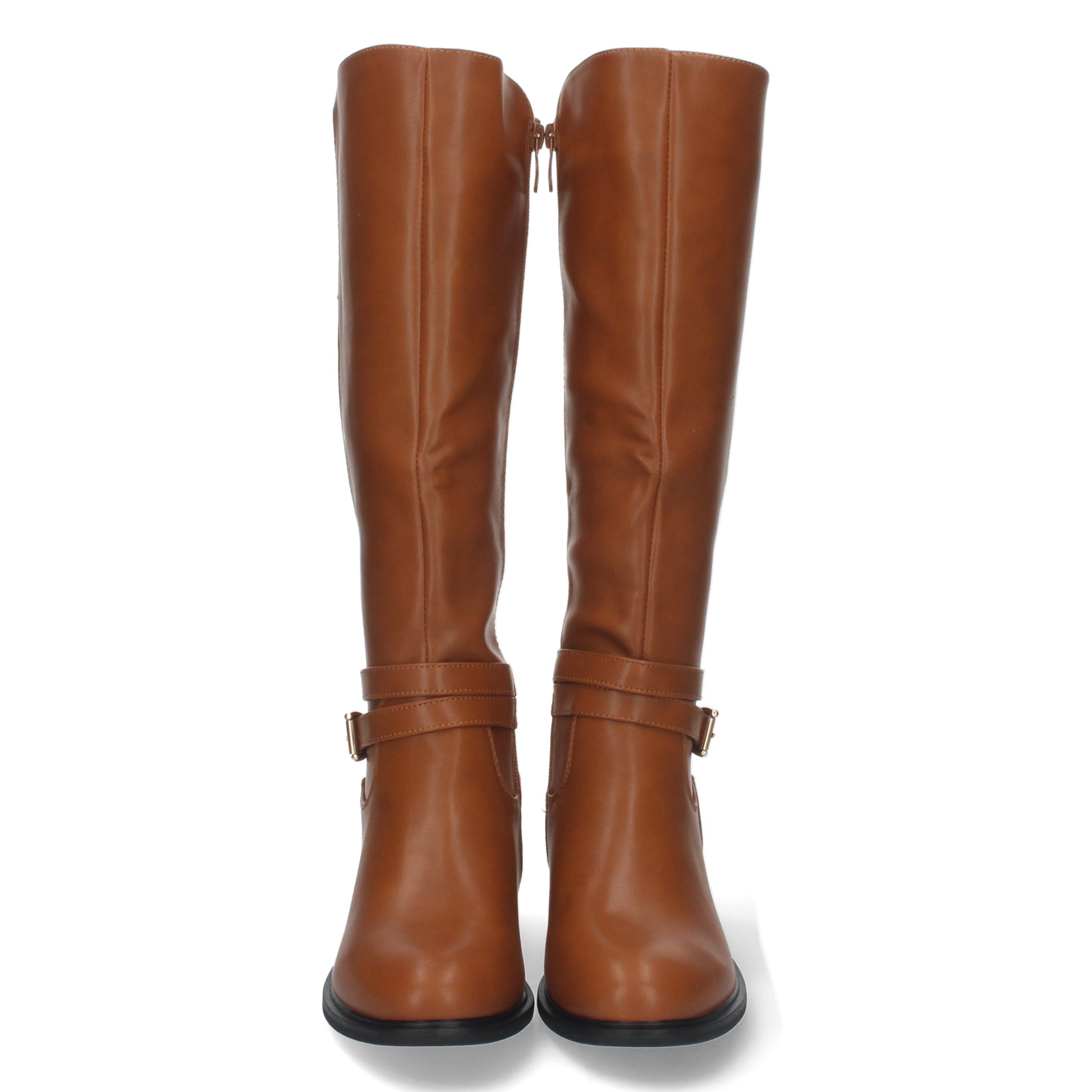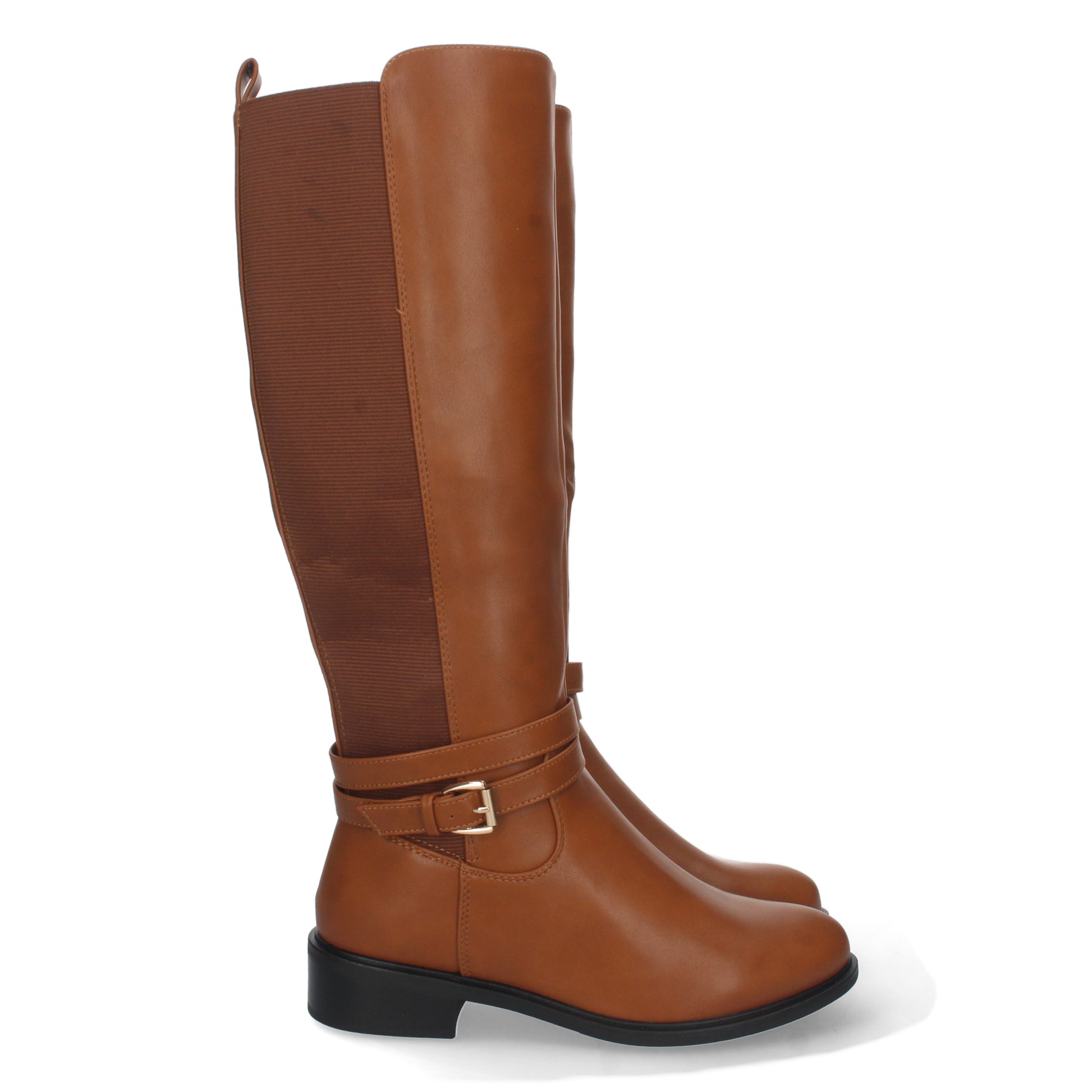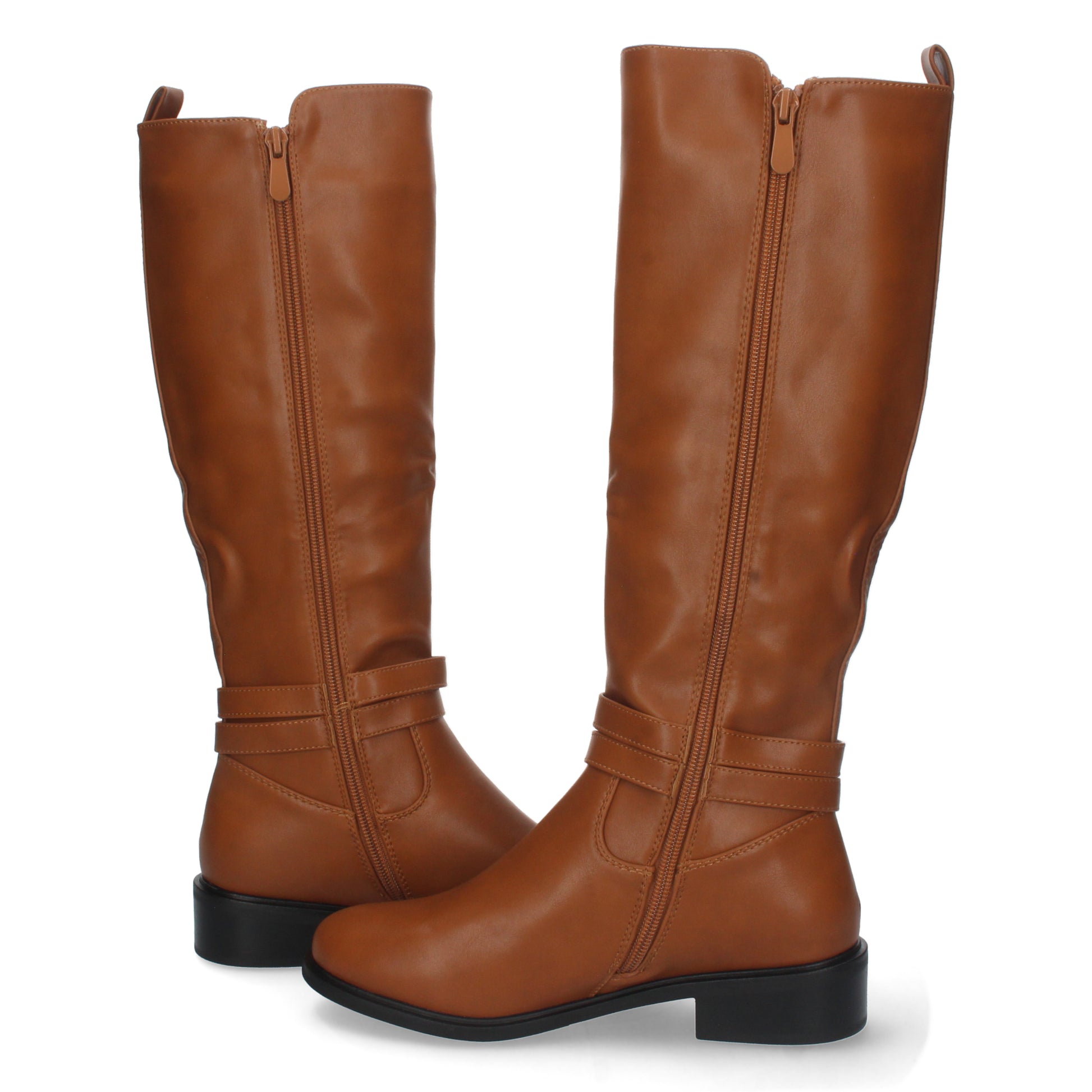 Bota de Tacon Bajo para Mujer Comoda Elástico en el Gemelo Correa con Hebilla y Cierre de Cremallera Otoño Invierno 2022