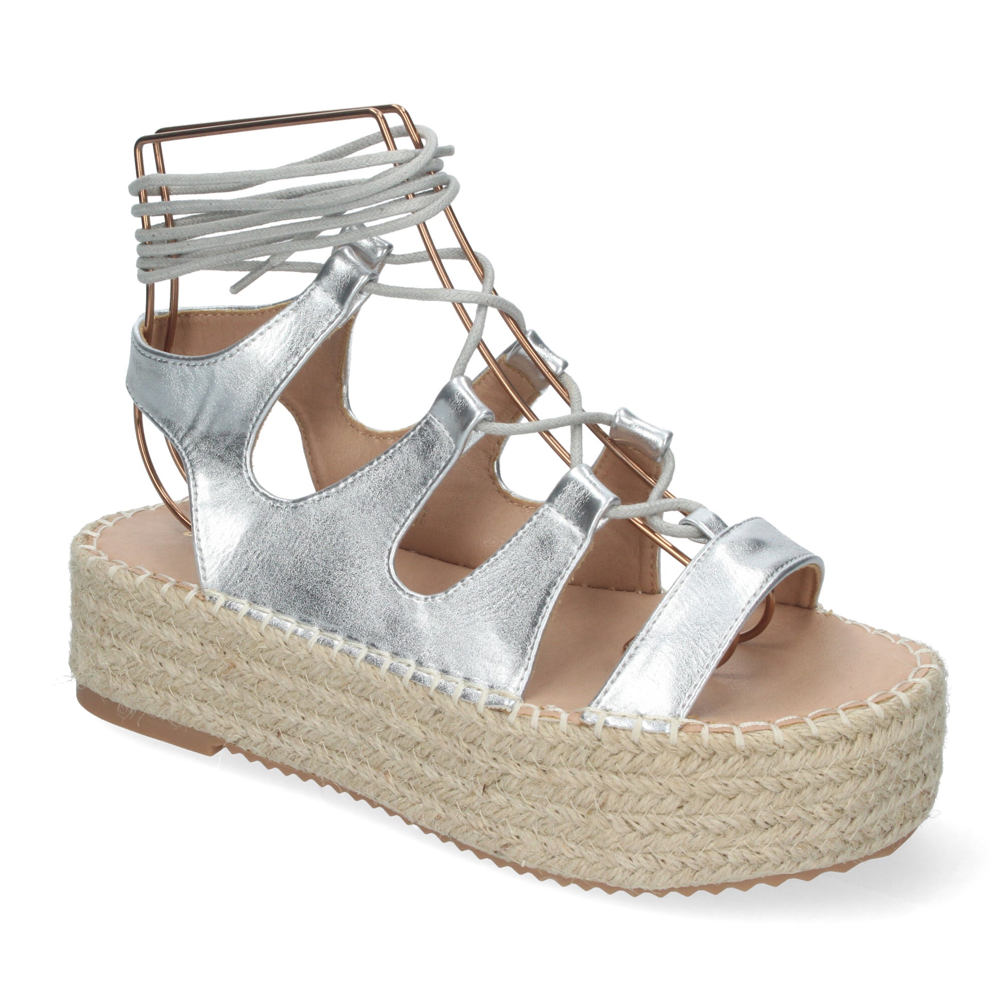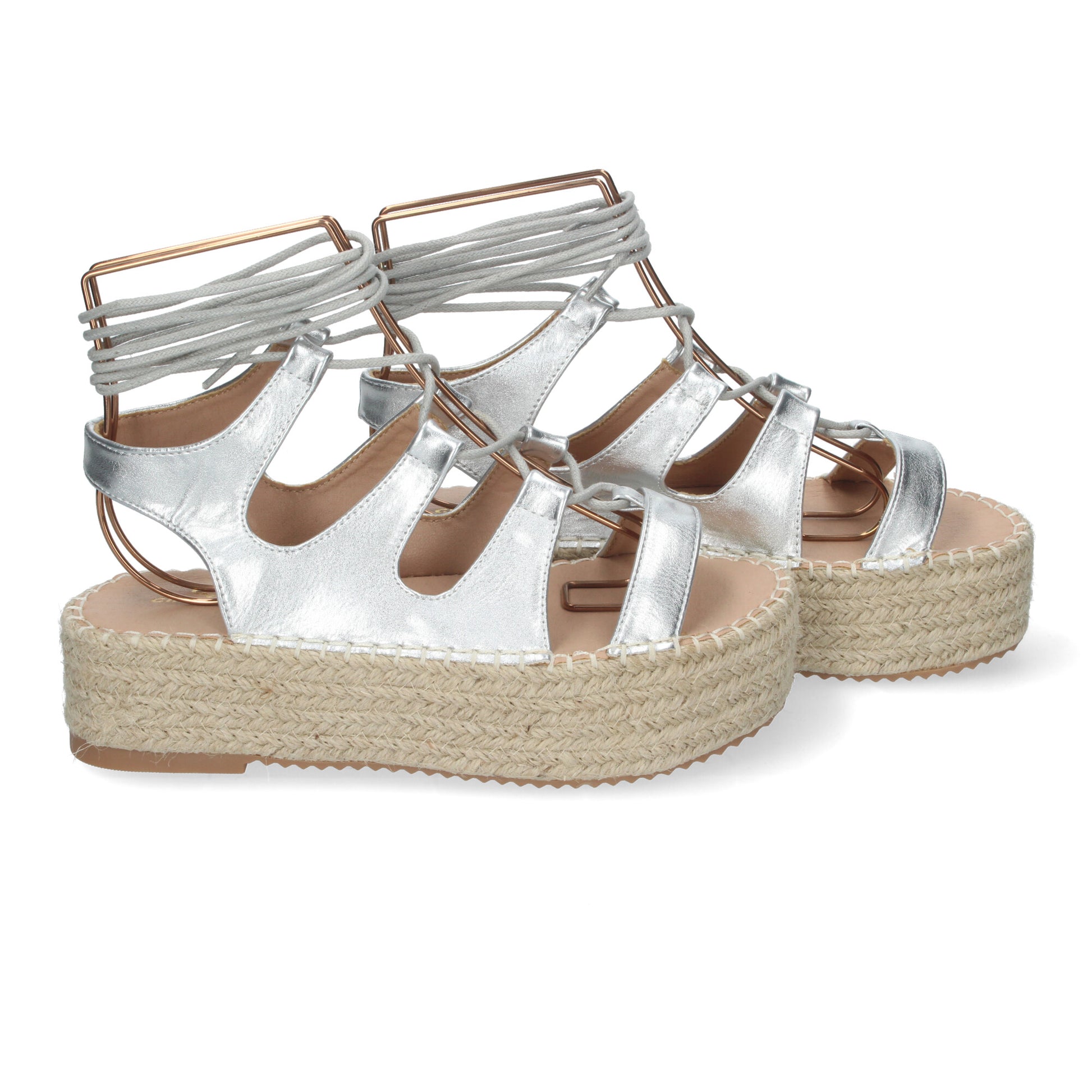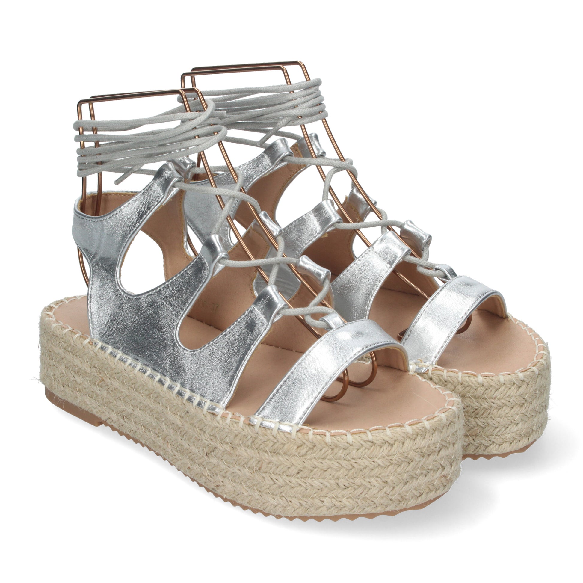 Sandalia de Mujer con Plataforma de Yute Cómodas y Elegantes Tiras Cruzadas con Cordones Pala y Talón Abierto Ideales para Primavera-Verano.