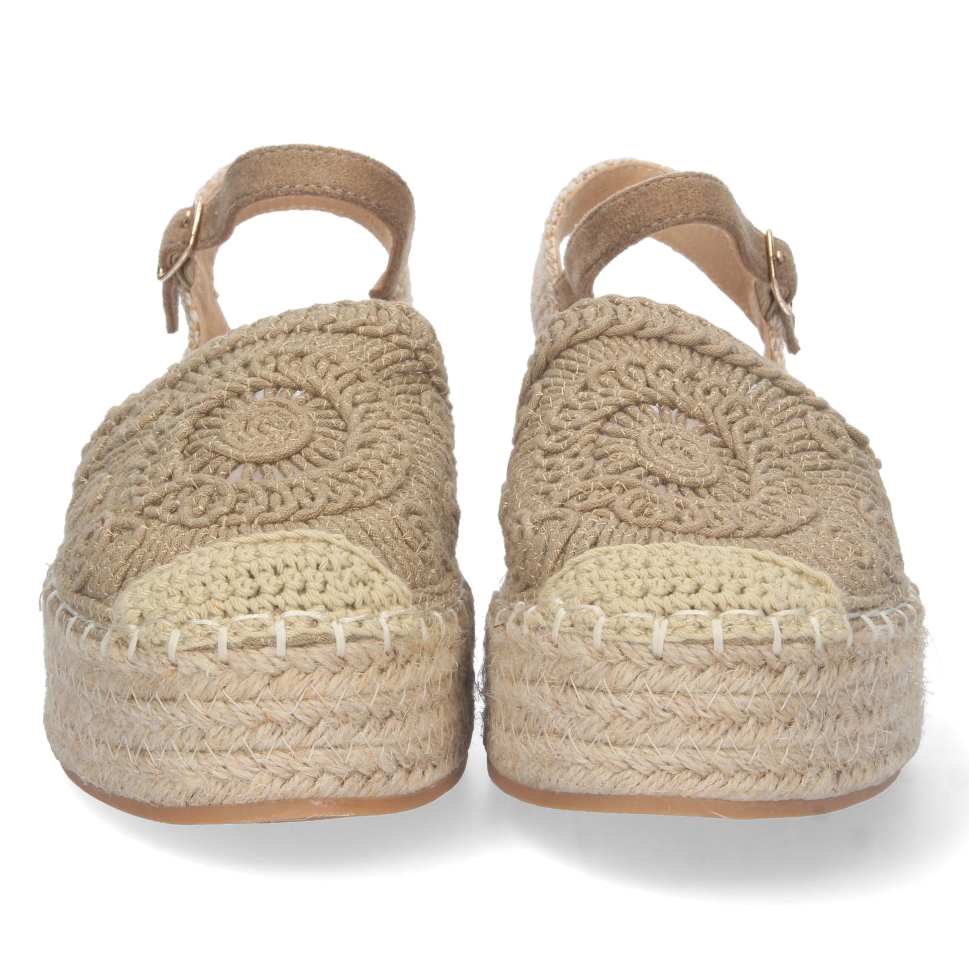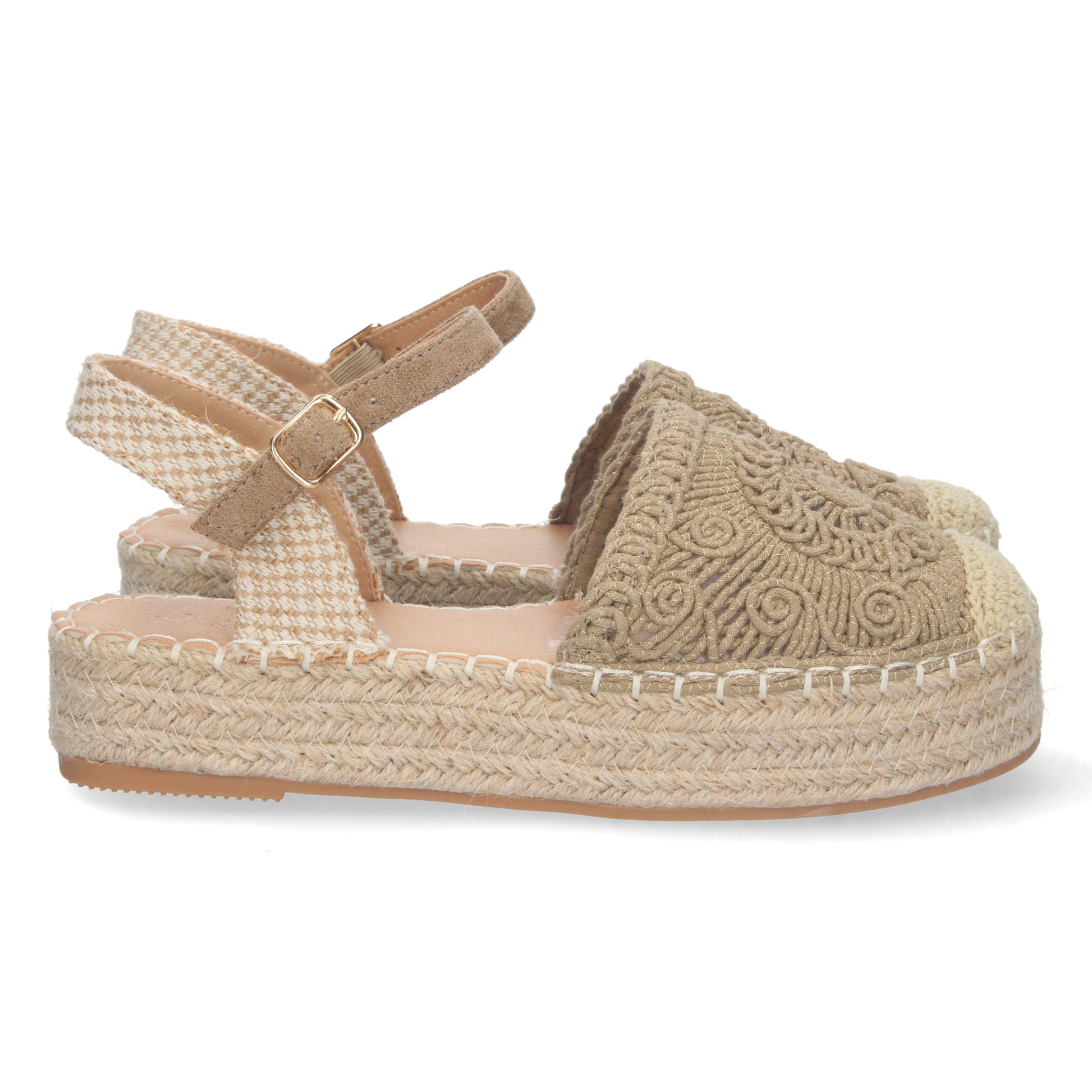 Sandalia de Plataforma para Mujer Comoda Forrada de Yute Pala Cerrada y Entrelazada Talón Abierto y Cierre de Hebilla