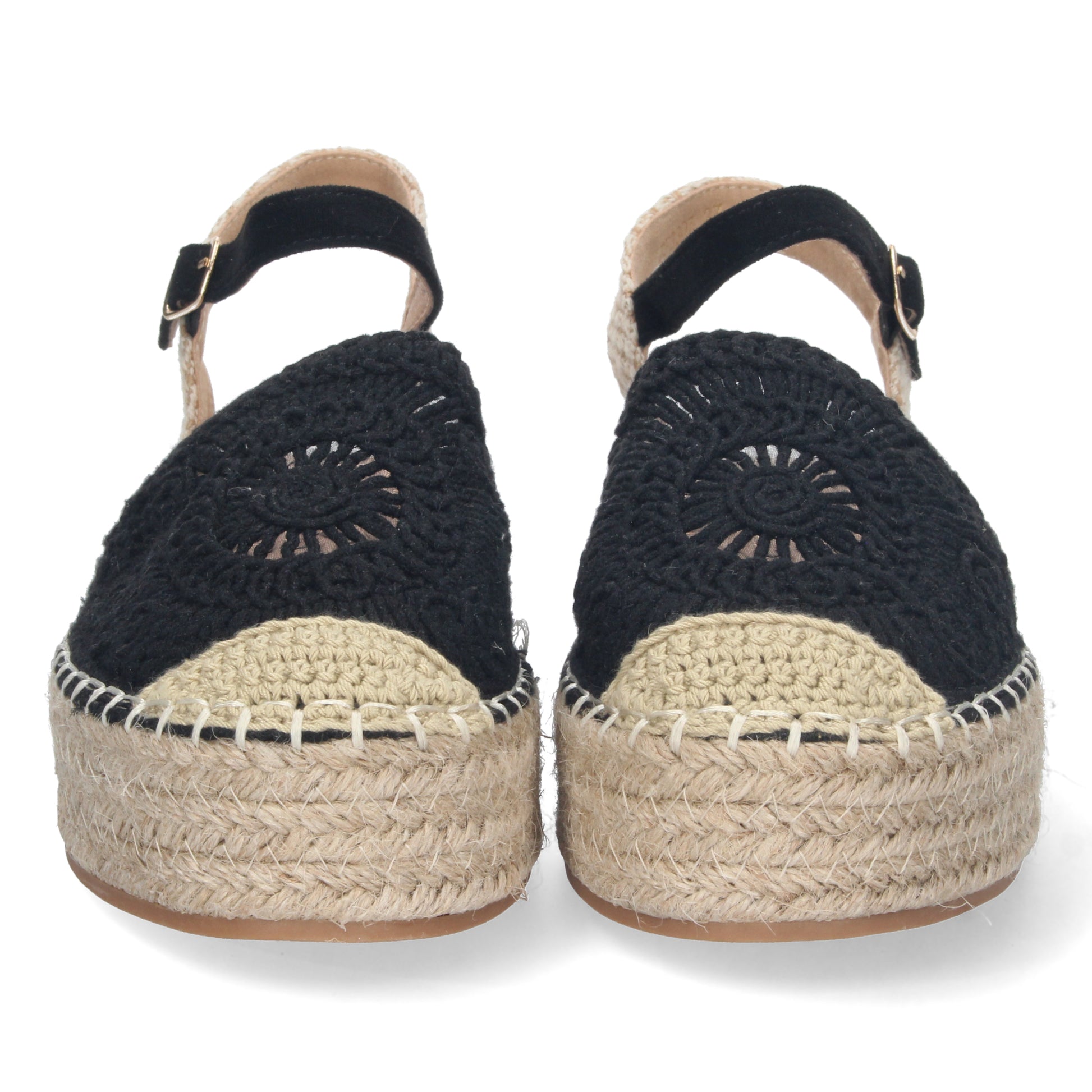 Sandalia de Plataforma para Mujer Comoda Forrada de Yute Pala Cerrada y Entrelazada Talón Abierto y Cierre de Hebilla