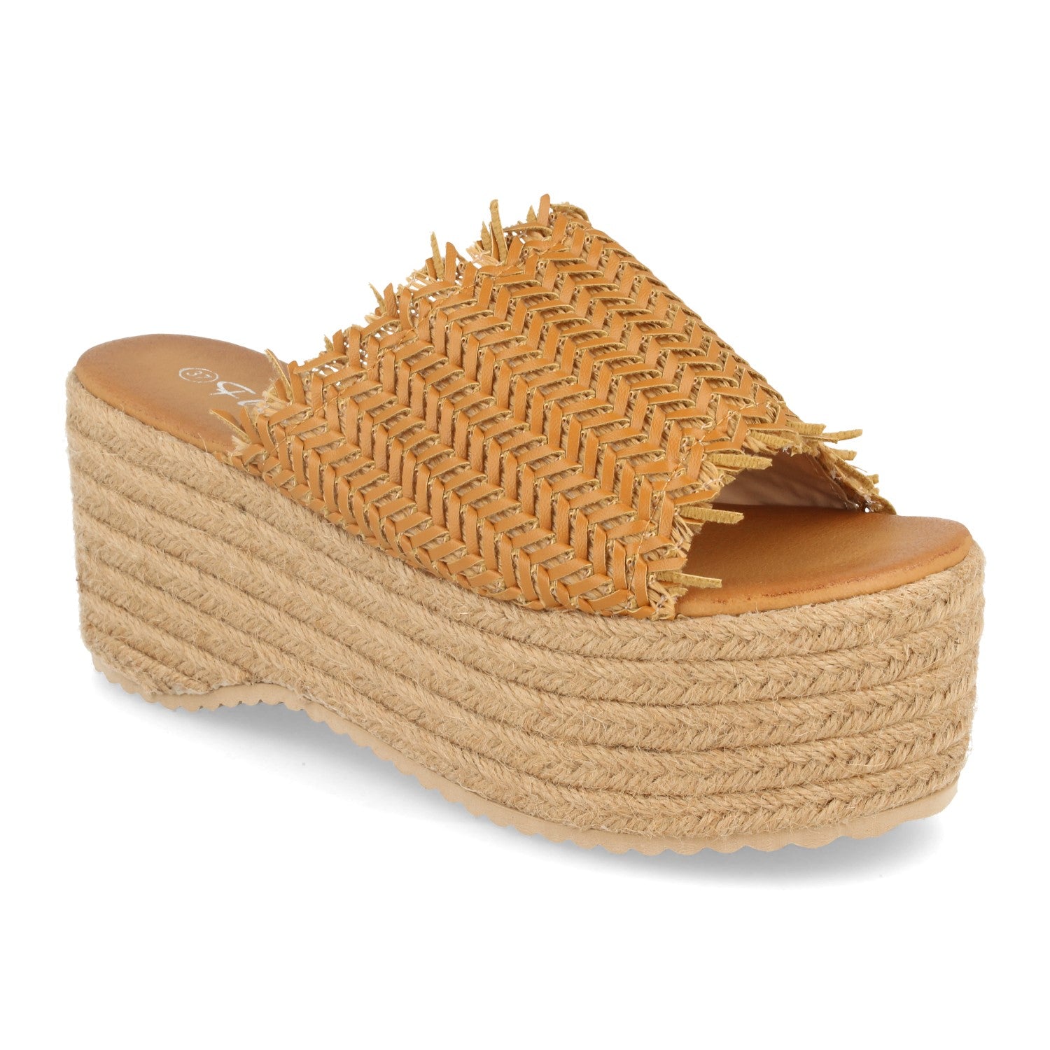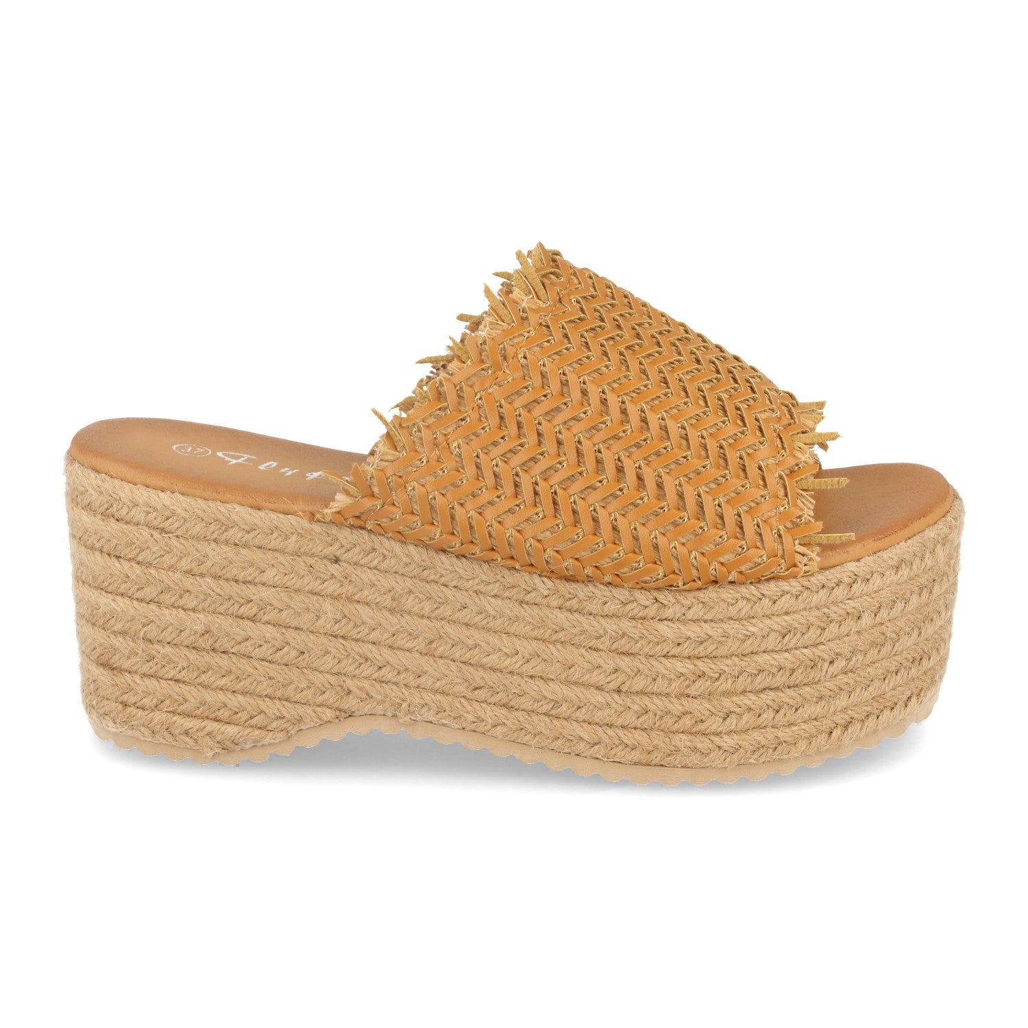 Sandalia de Plataforma con Yute Pala de Material Trenzado Talon Abierto y Piso de Eva Primavera Verano 2020