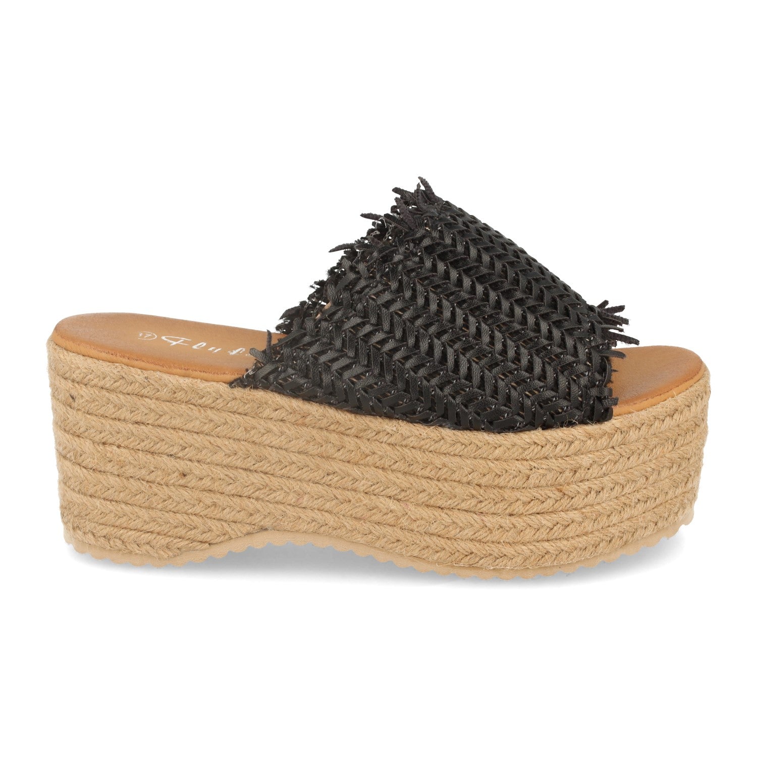 Sandalia de Plataforma con Yute Pala de Material Trenzado Talon Abierto y Piso de Eva Primavera Verano 2020