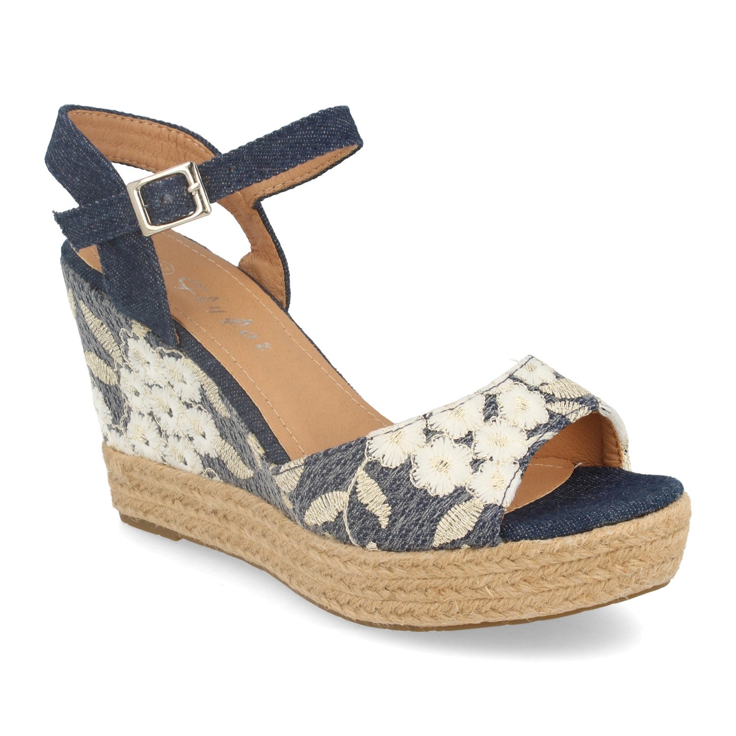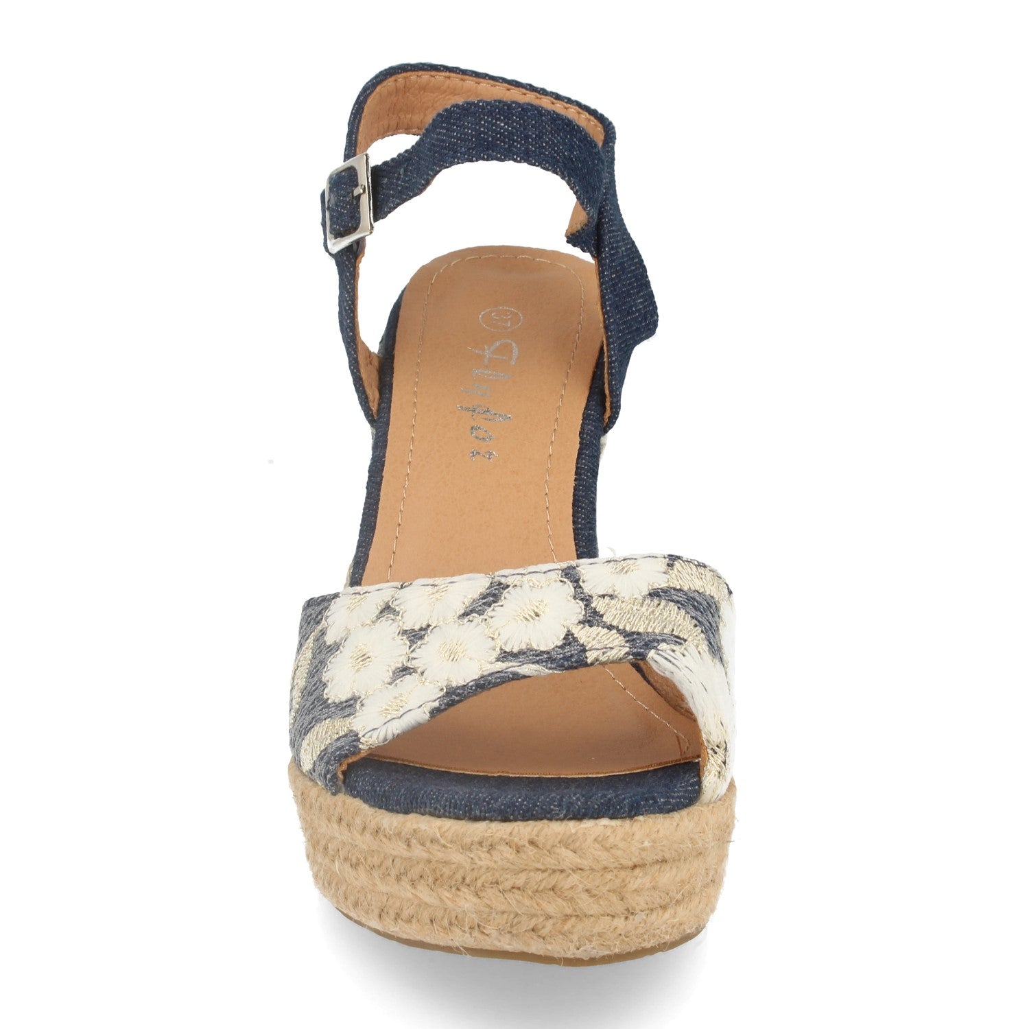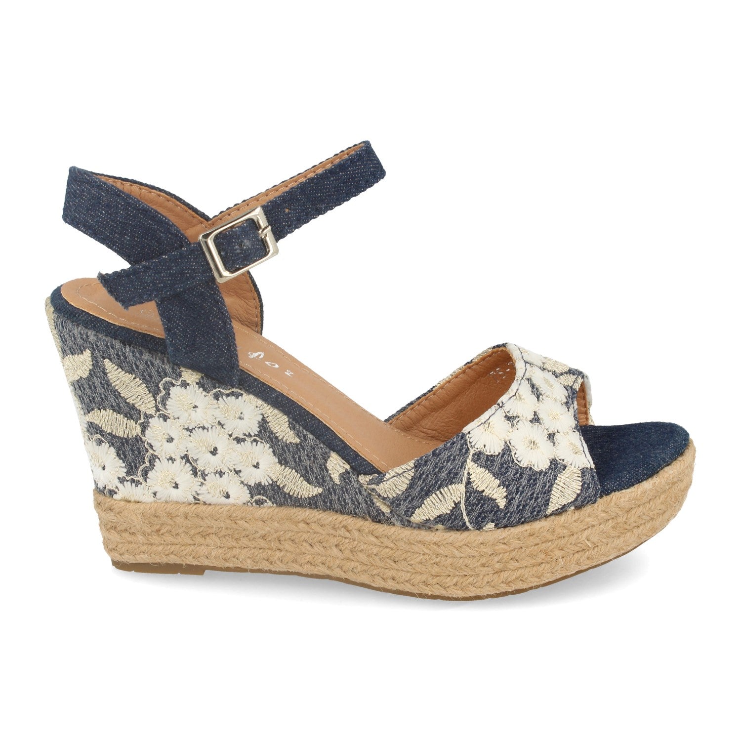 Sandalia de Cuña con Yute con Bordado de Flores en Cuña y Pala Cierre de Hebilla y Piso de Crepelina Primavera Verano 2020