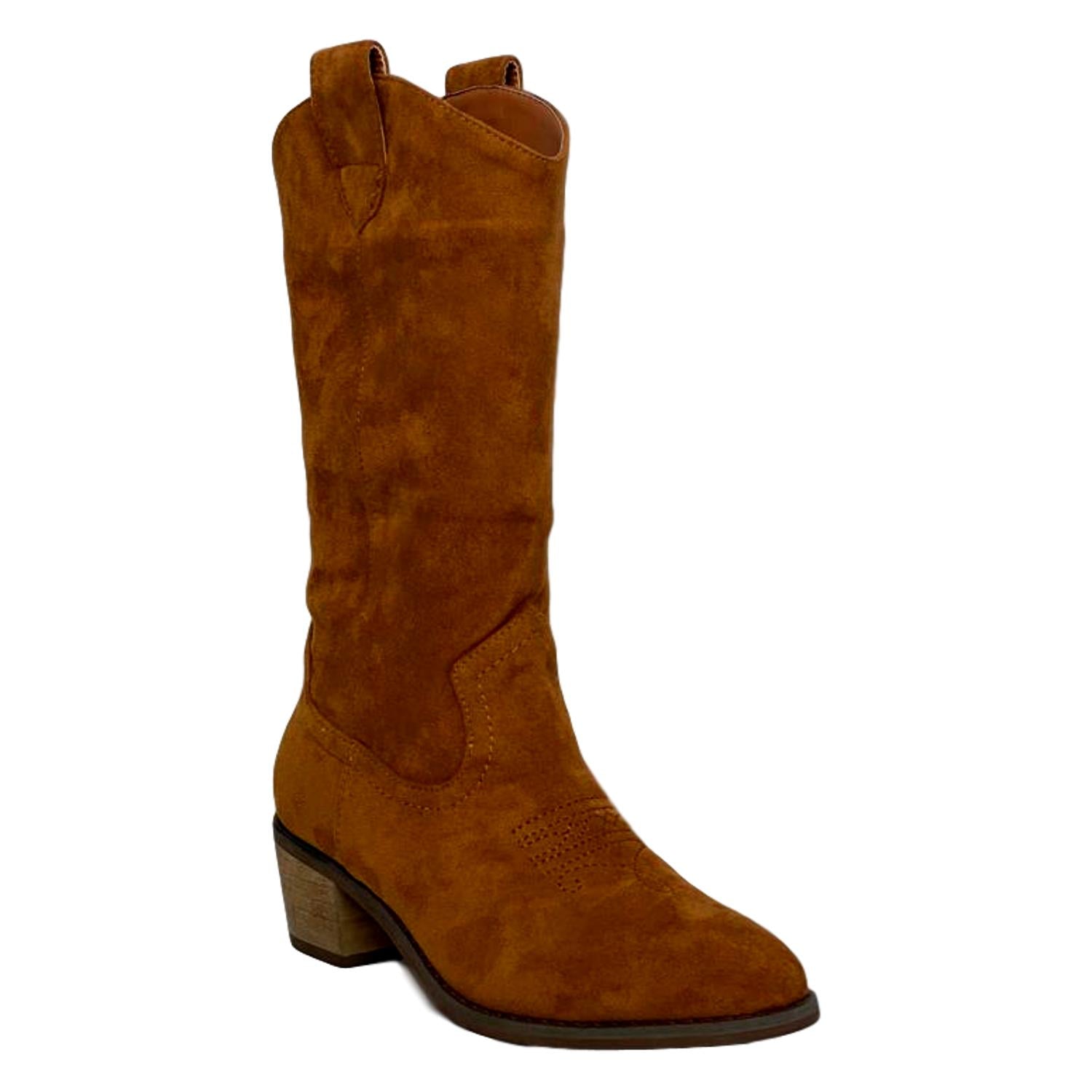 Bota Campera con Tacon Comodos Bordado en Empeine y Cierre de Cremallera Otoño Invierno 2020