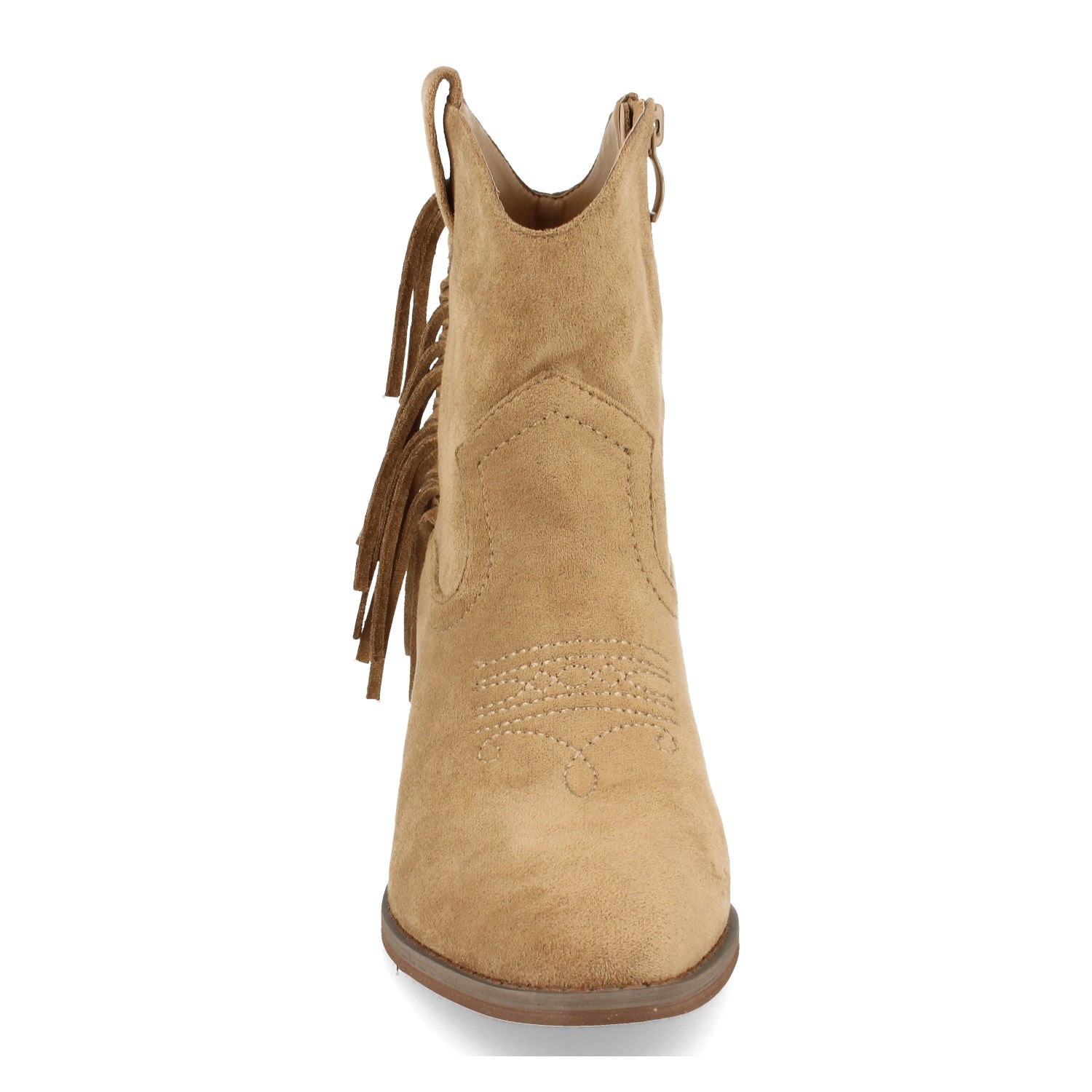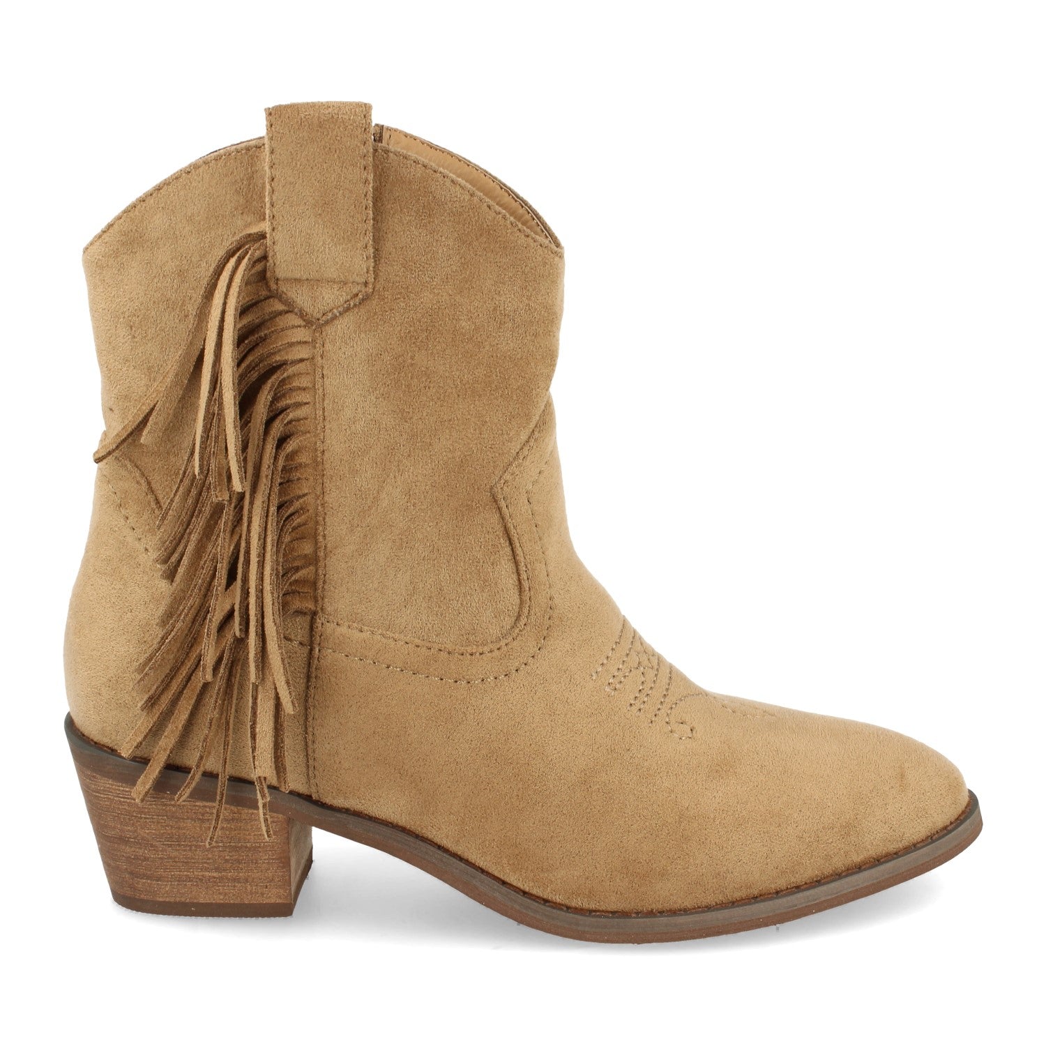 Botin de Mujer con Tacon de Estilo Campero Flecos en el Lateral Bordado en Empeine y Cierre de Cremallera Otoño Invierno 2020