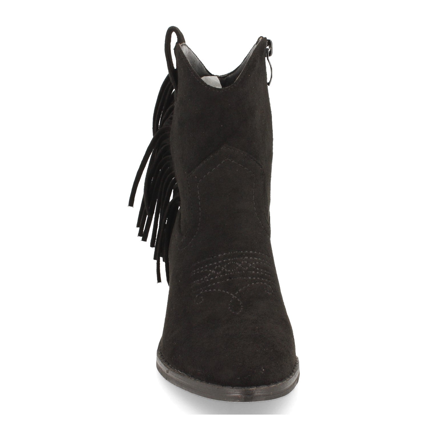 Botin de Mujer con Tacon de Estilo Campero Flecos en el Lateral Bordado en Empeine y Cierre de Cremallera Otoño Invierno 2020