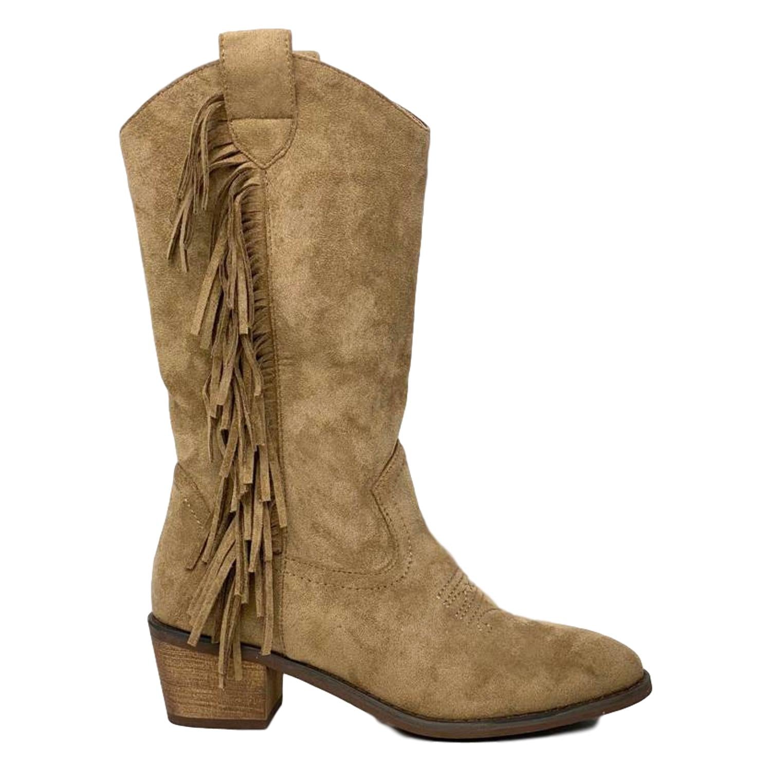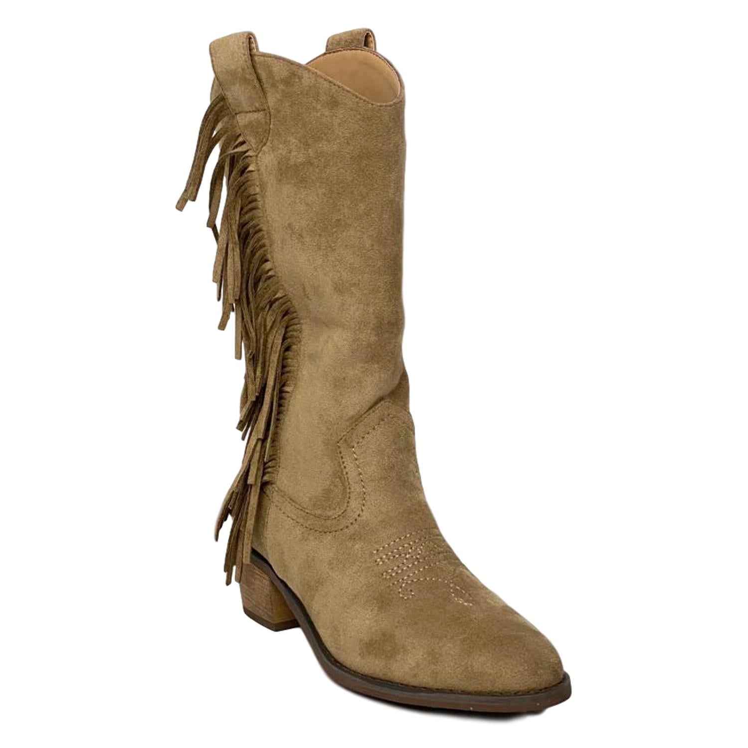 Bota con Tacon de Estilo Campero Flecos en el Lateral Bordado en Empeine y Cierre de Cremallera Otoño Invierno 2020
