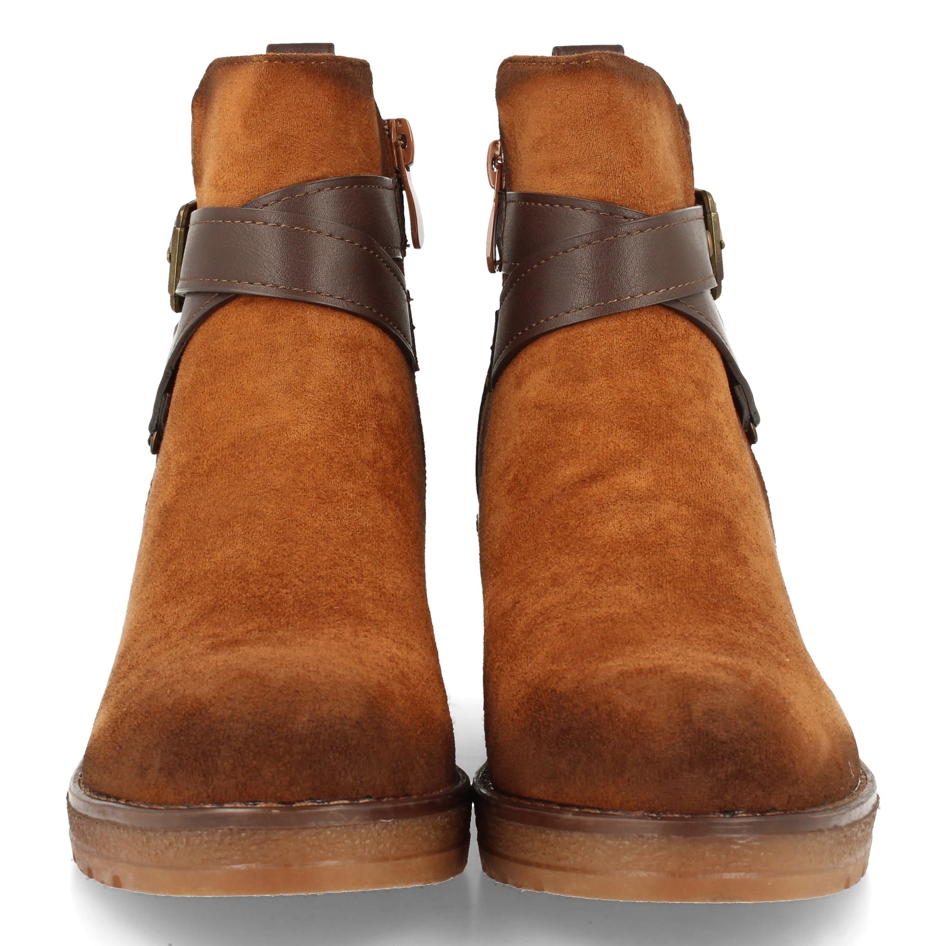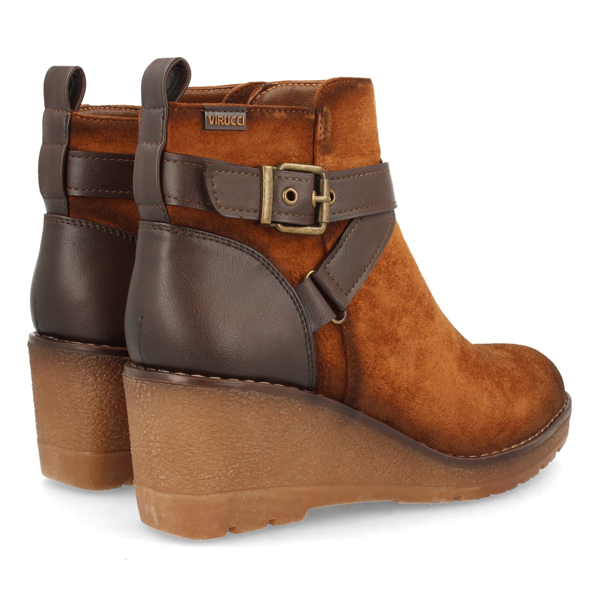 Botín para Mujer con Cuña Correas Cruzadas con Hebilla y Cierre de Cremallera Otoño Invierno 2021