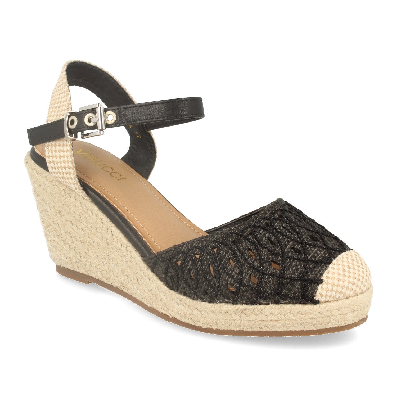 Sandalia de Mujer con Cuña de Yute Pala Cerrada Talon Abierto y Cierre de Hebilla en el Tobillo Primavera Verano 2020