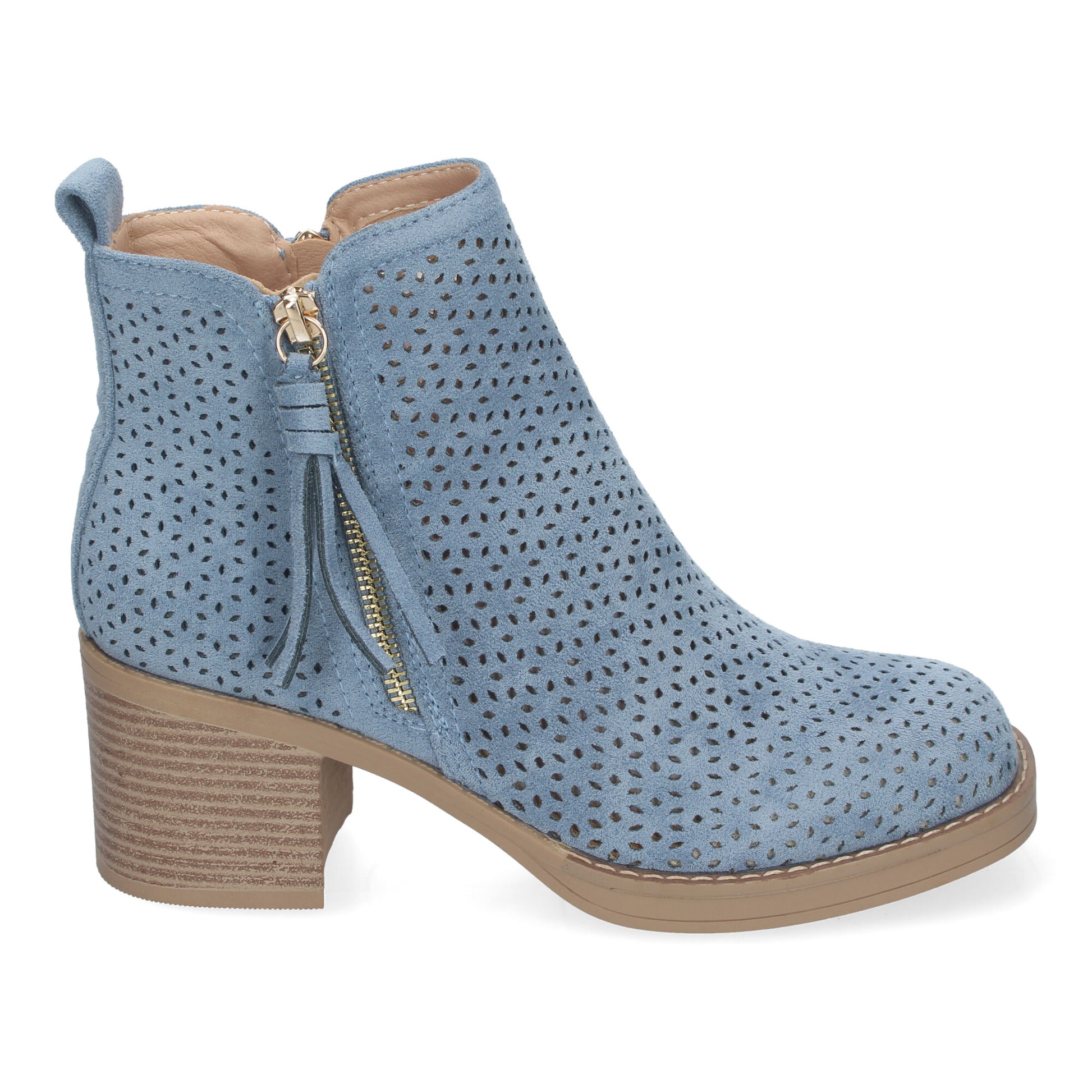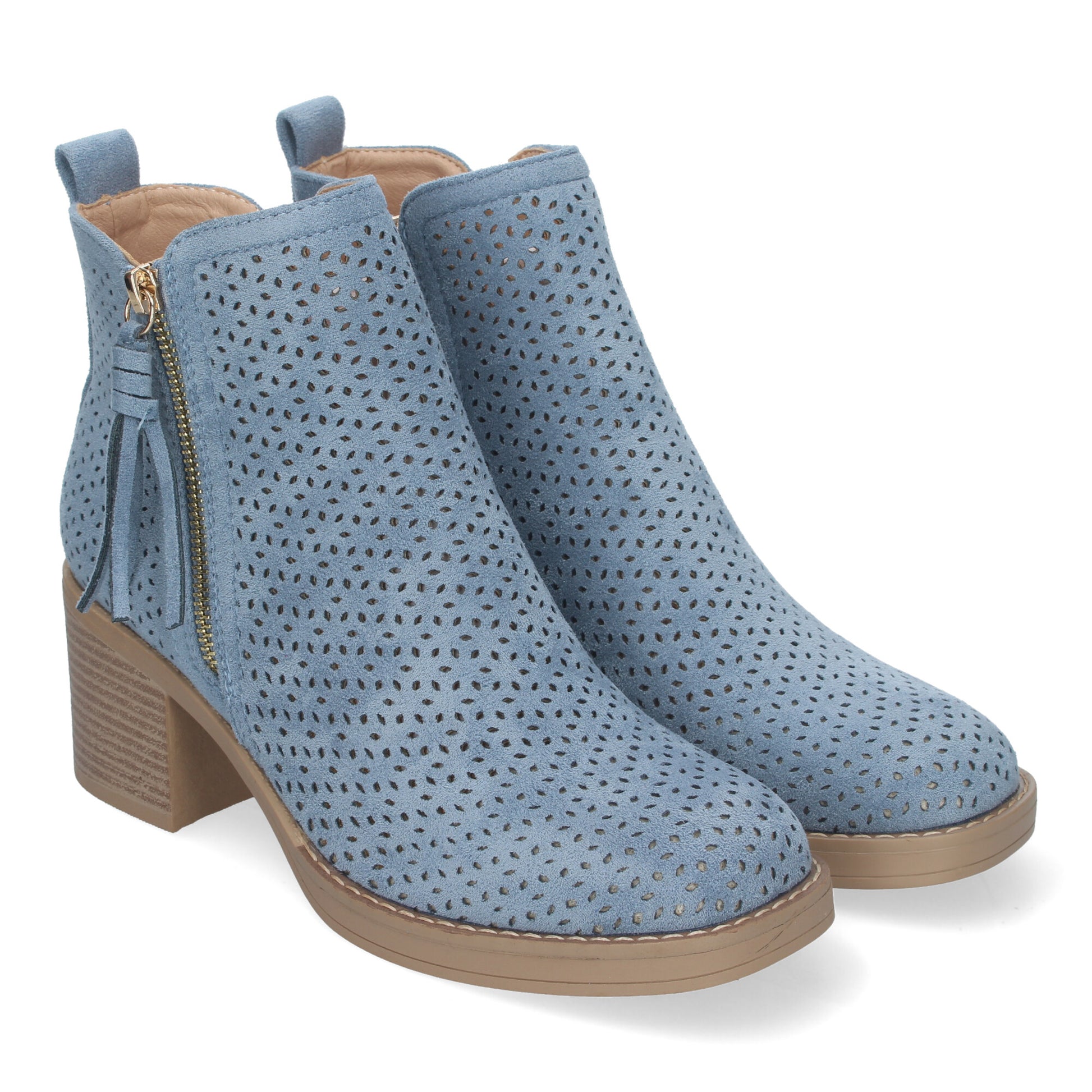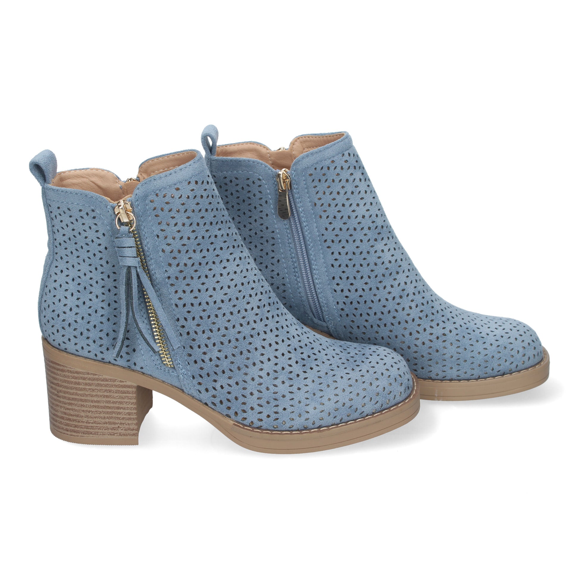 Botines de Mujer Primavera Verano Elegantes y Comodos con Tacón Ancho Diseño Perforado con Doble Cremallera Lateral con Fleco Ideal para Cualquier Ocasión.