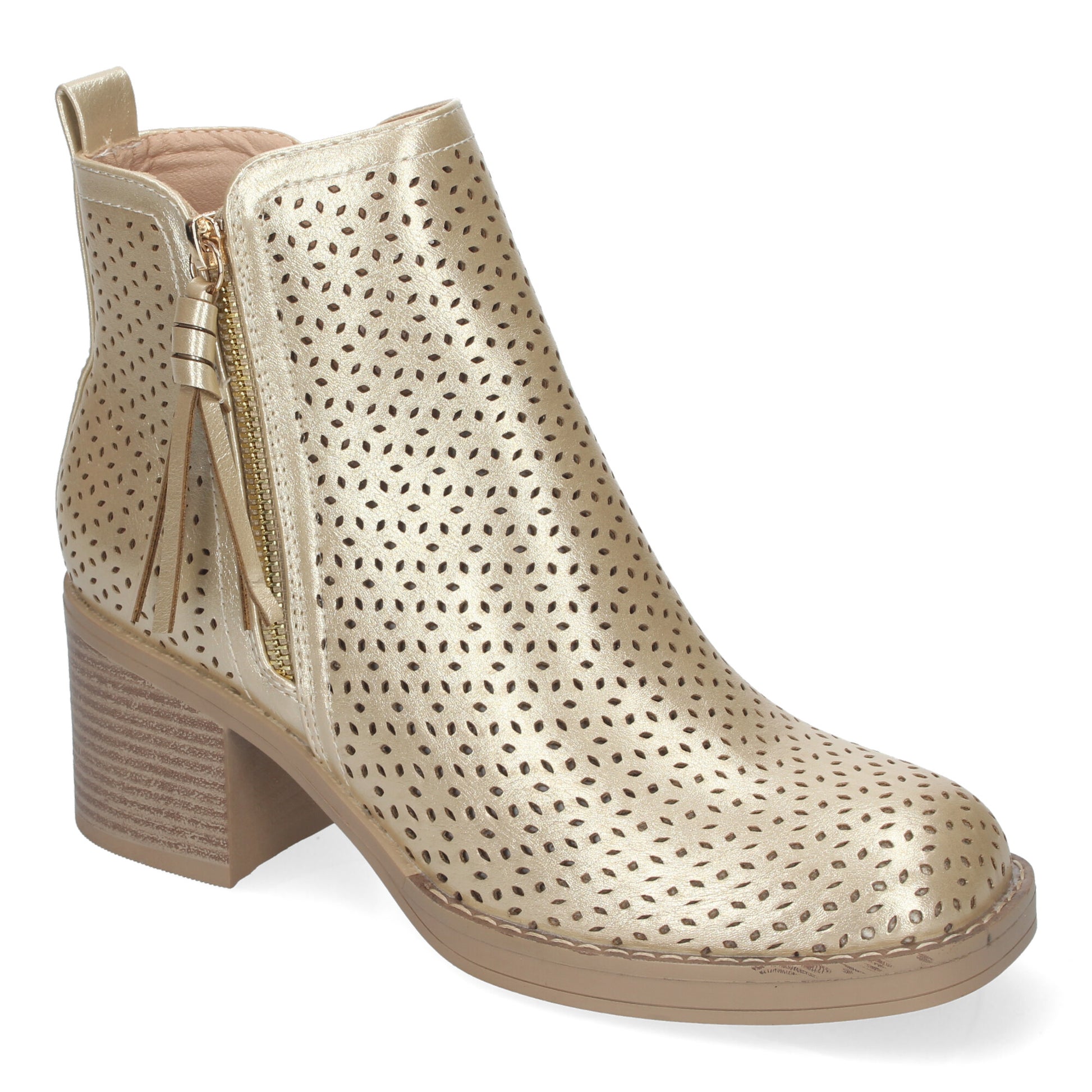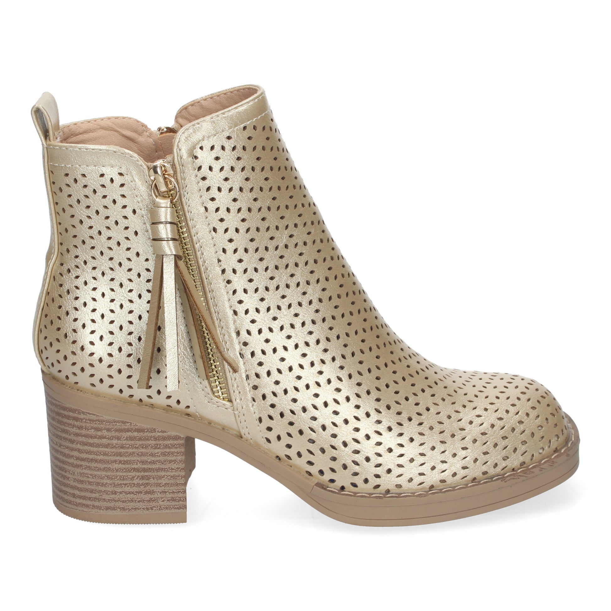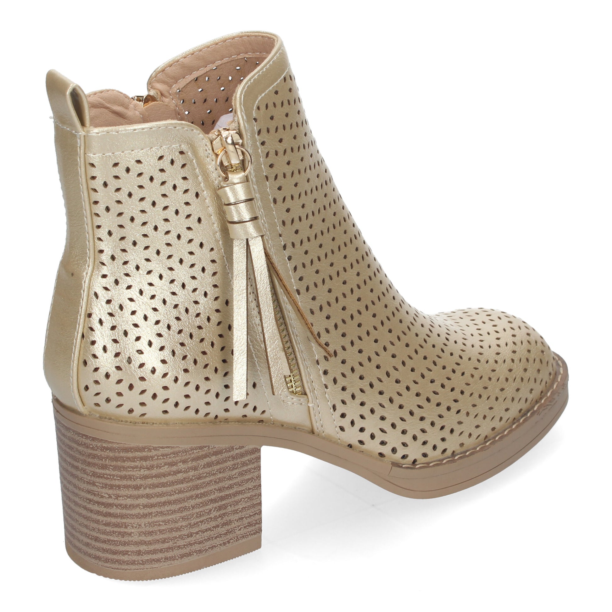 Botines de Mujer Primavera Verano Elegantes y Comodos con Tacón Ancho Diseño Perforado con Doble Cremallera Lateral con Fleco Ideal para Cualquier Ocasión.