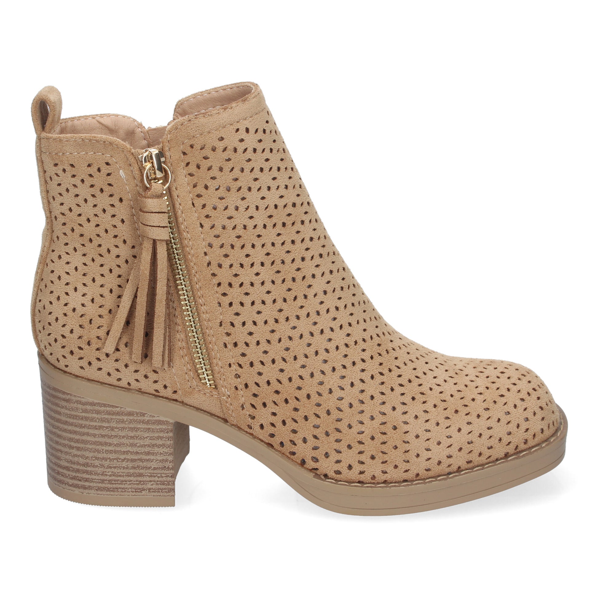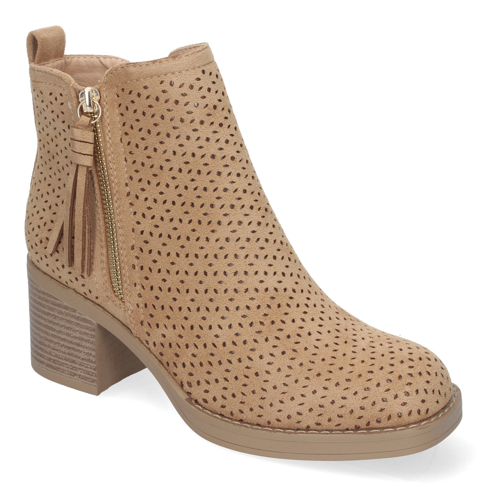 Botines de Mujer Primavera Verano Elegantes y Comodos con Tacón Ancho Diseño Perforado con Doble Cremallera Lateral con Fleco Ideal para Cualquier Ocasión.