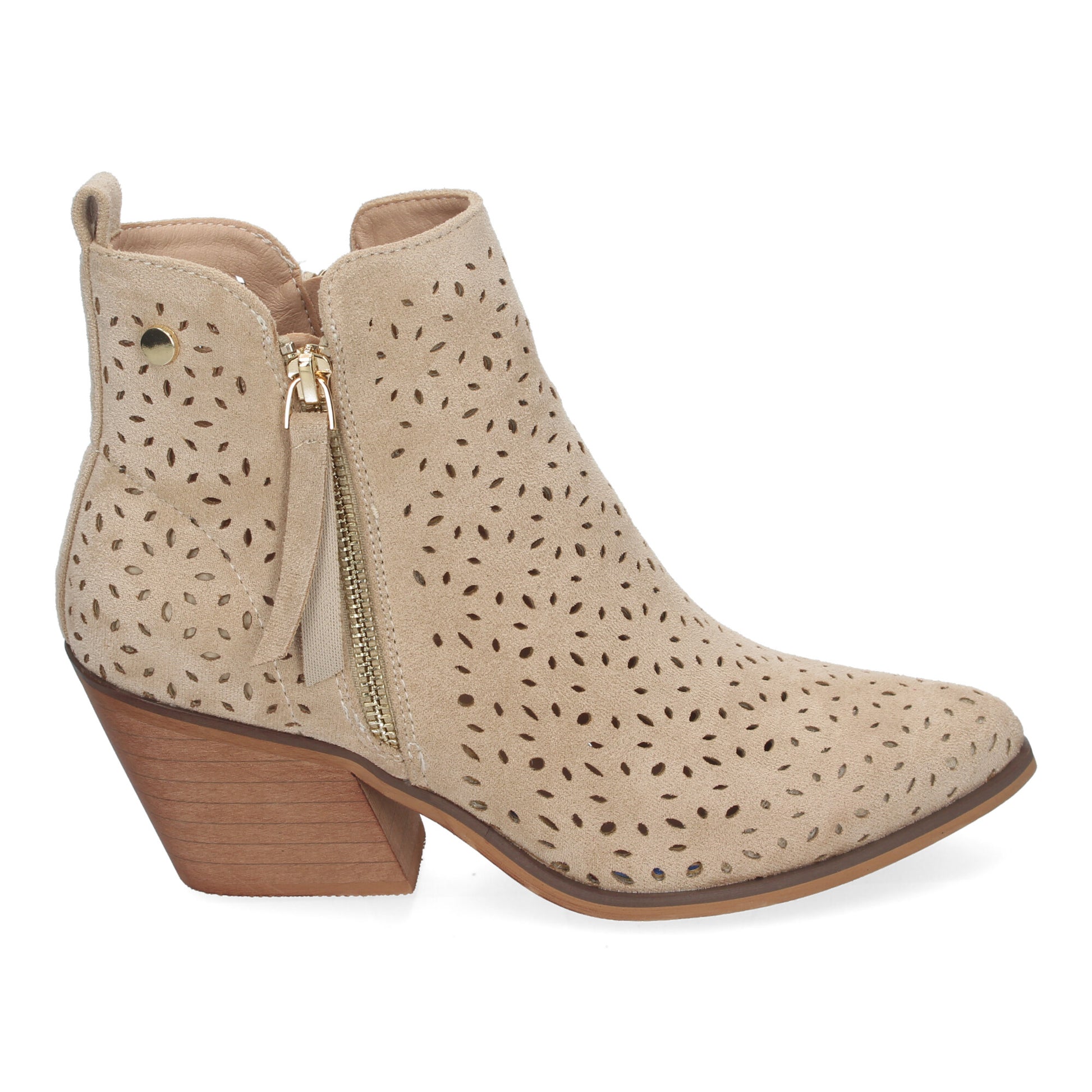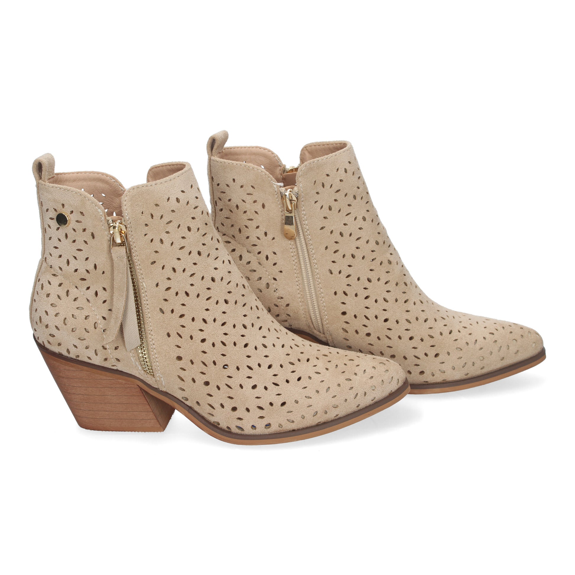 Botines de Tacón Campero para Mujer Primavera Verano Elegantes y Comodos Diseño Perforado con Doble Cremallera Lateral con Fleco Ideal para Cualquier Ocasión.