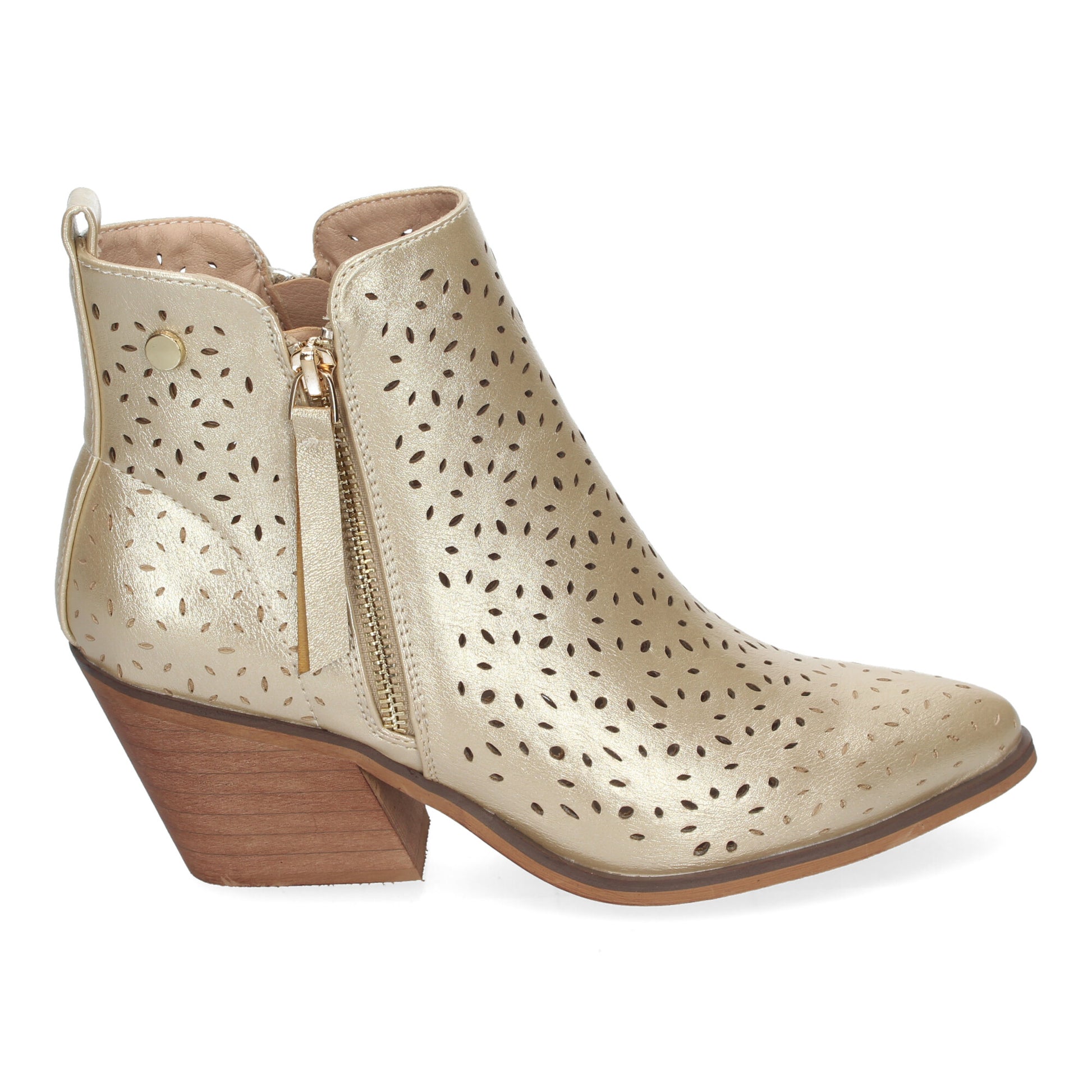 Botines de Tacón Campero para Mujer Primavera Verano Elegantes y Comodos Diseño Perforado con Doble Cremallera Lateral con Fleco Ideal para Cualquier Ocasión.