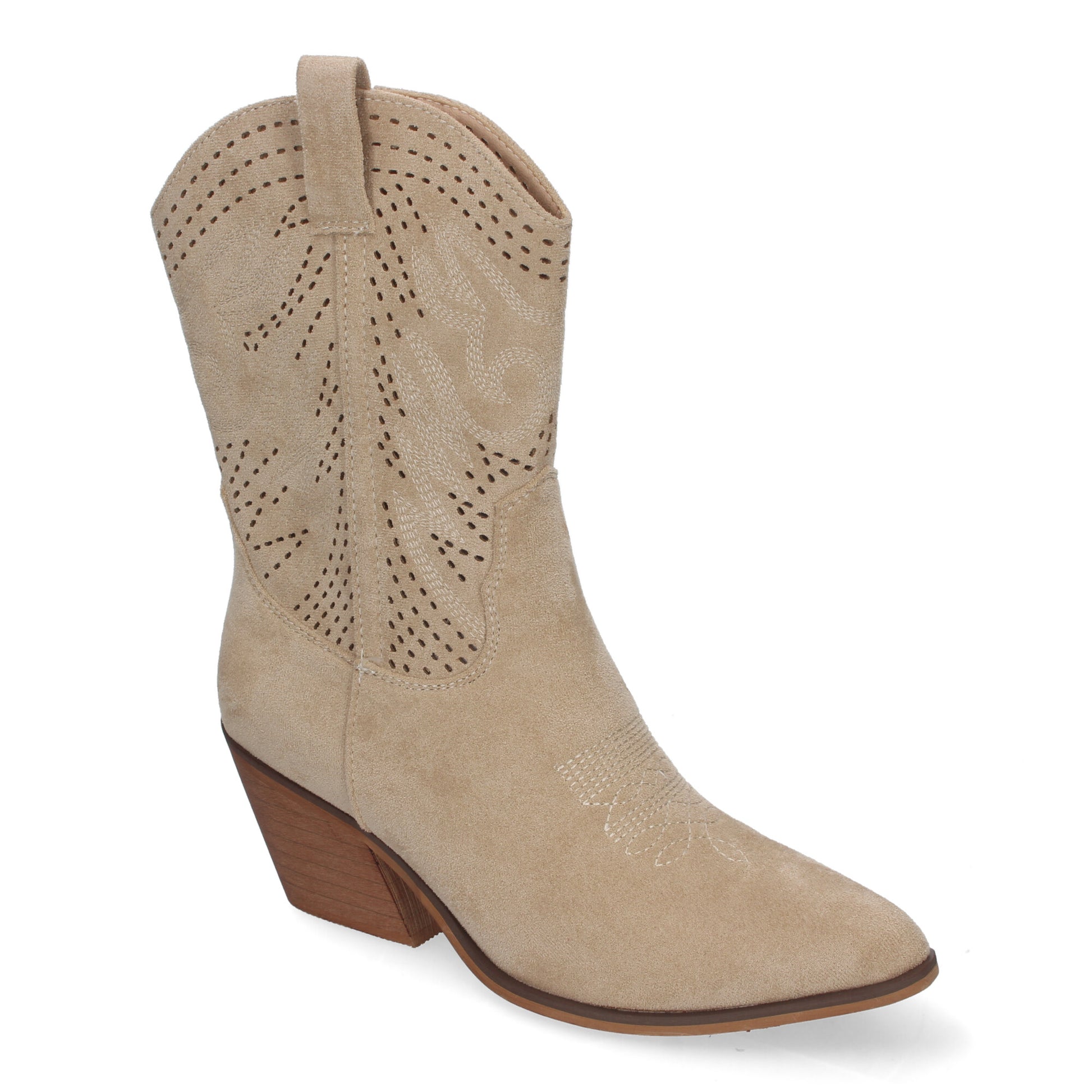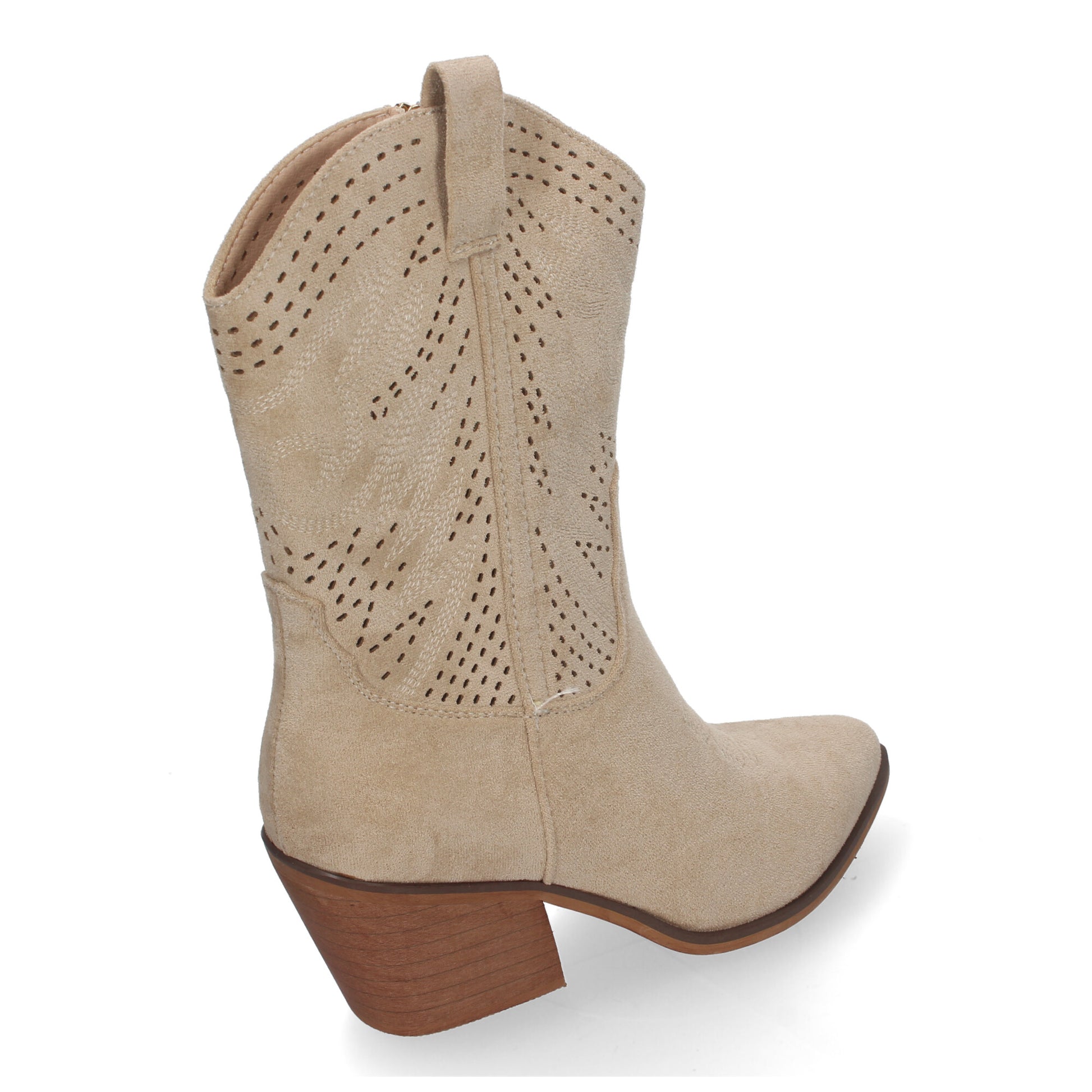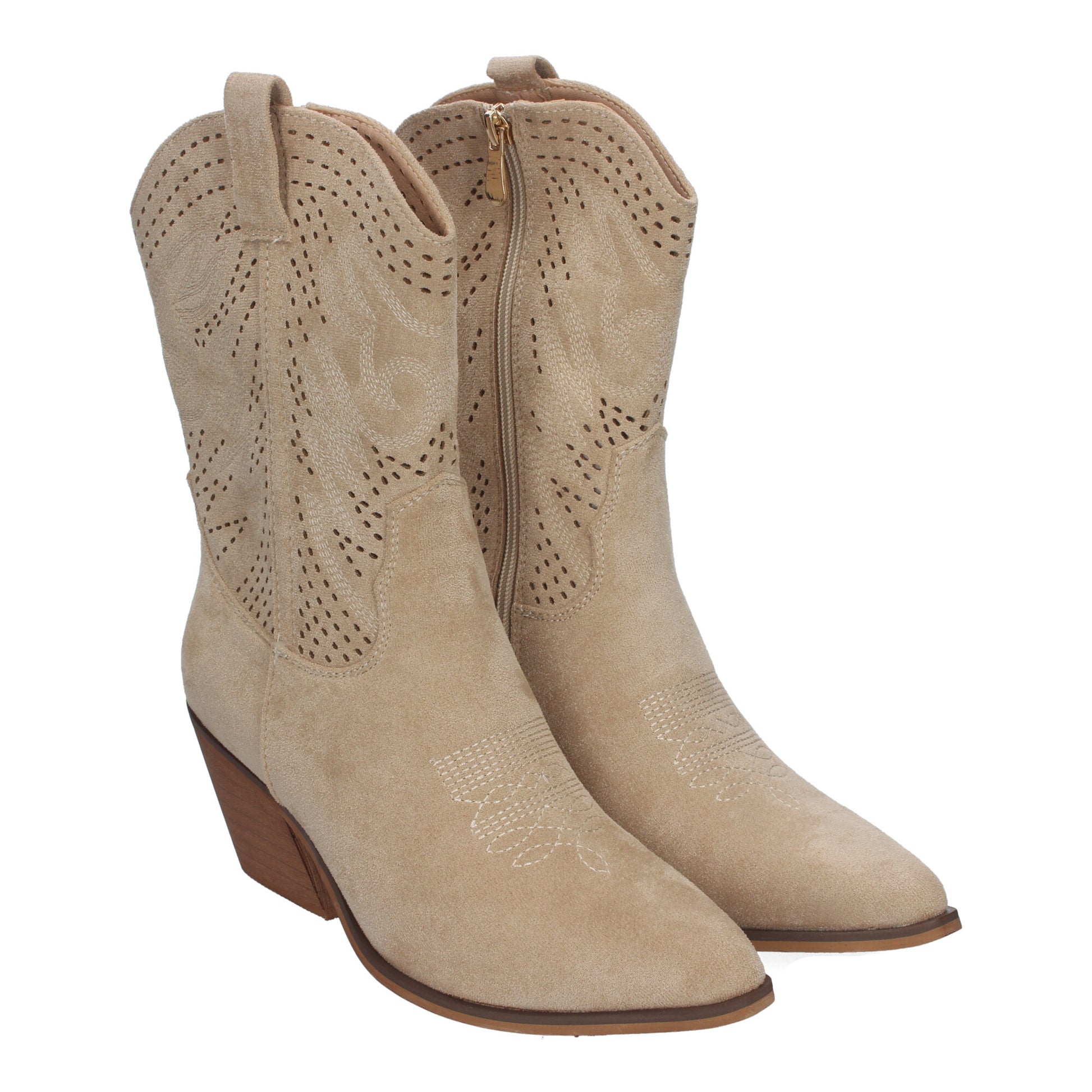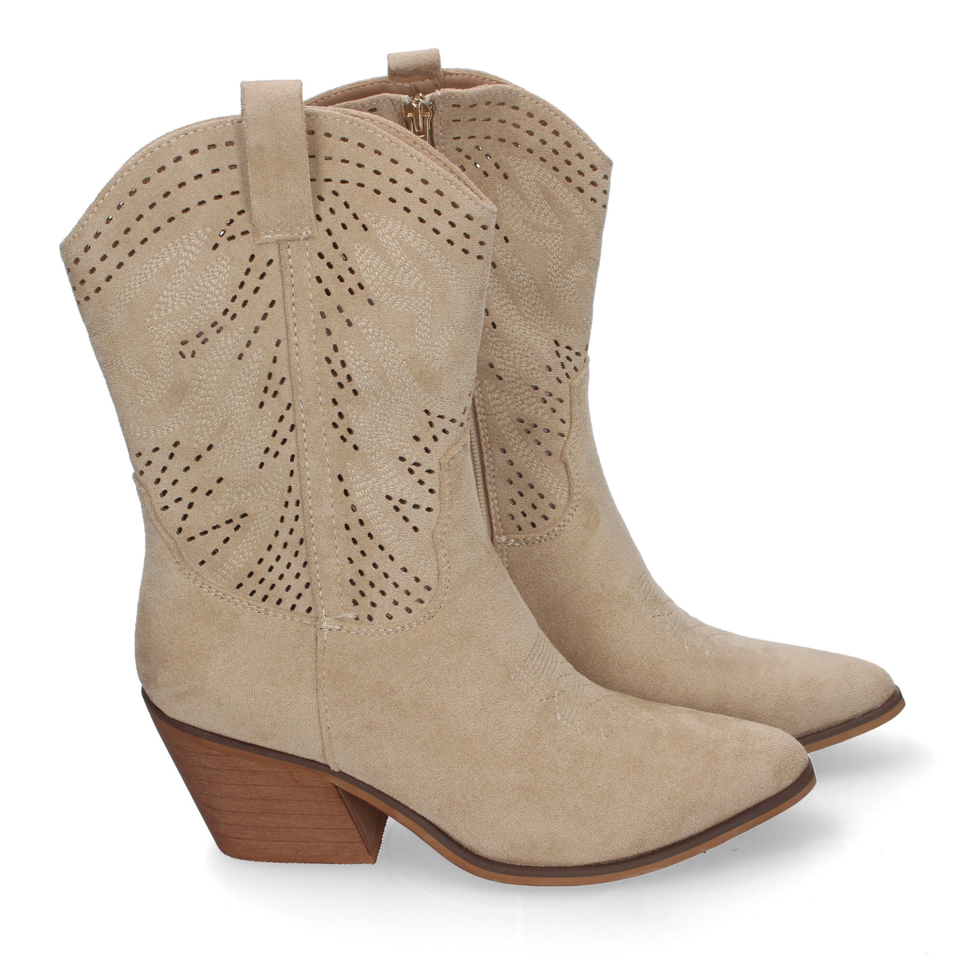 Botín de Tacón Campero para Mujer Estilo Vaquero Elegantes con Bordados en Pala y Caña Punta Afilada y Práctico Cierre Lateral de Cremallera.