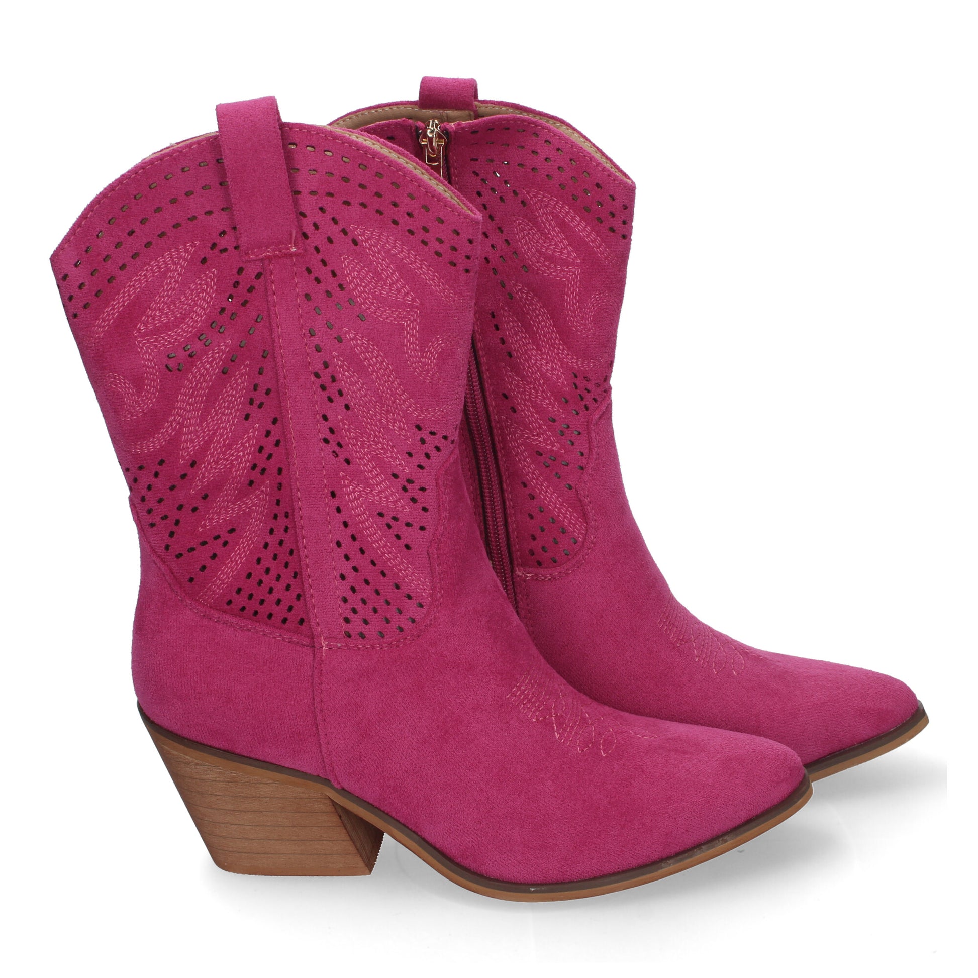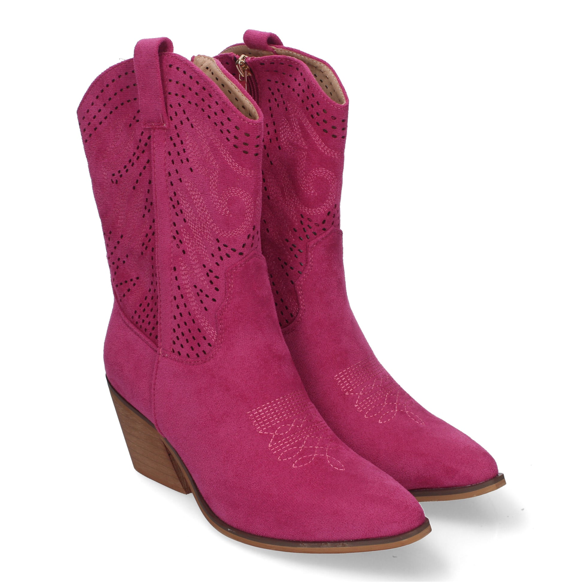 Botín de Tacón Campero para Mujer Estilo Vaquero Elegantes con Bordados en Pala y Caña Punta Afilada y Práctico Cierre Lateral de Cremallera.