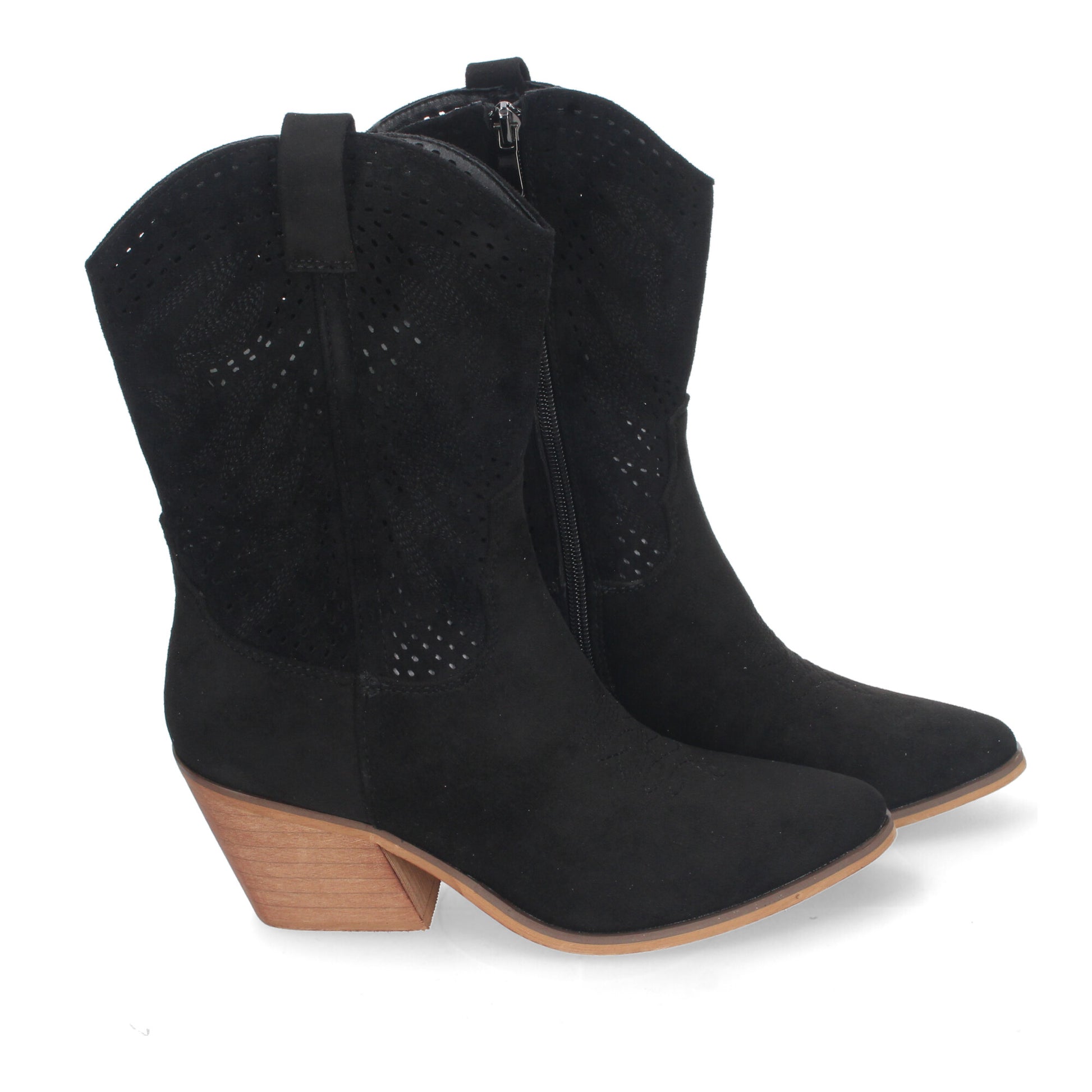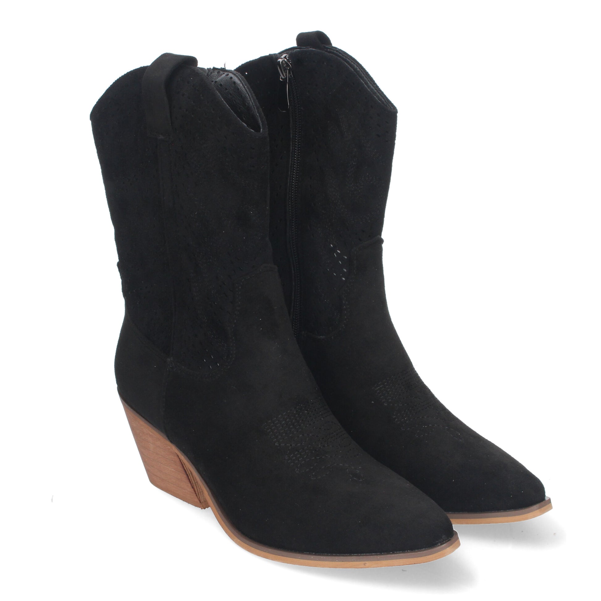 Botín de Tacón Campero para Mujer Estilo Vaquero Elegantes con Bordados en Pala y Caña Punta Afilada y Práctico Cierre Lateral de Cremallera.