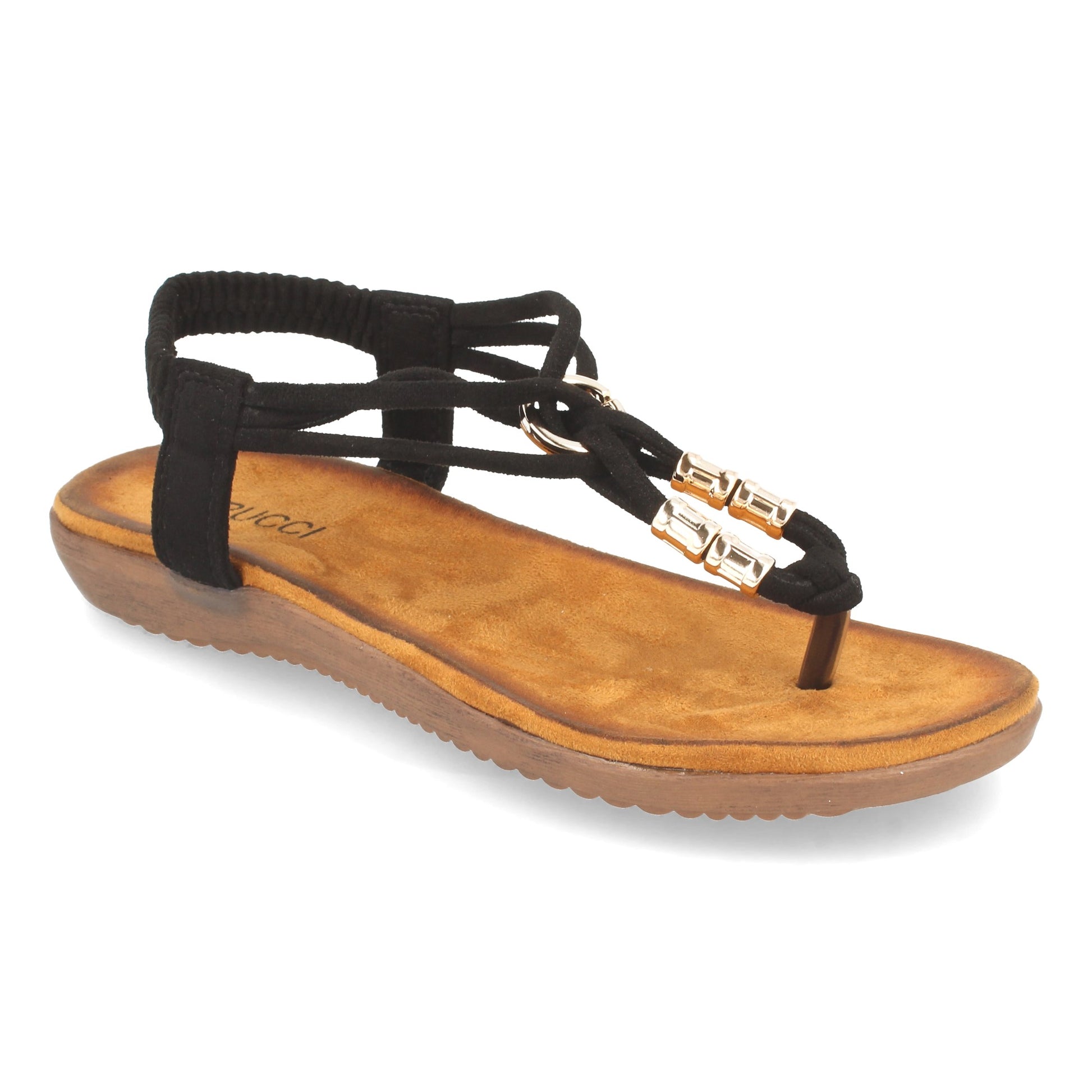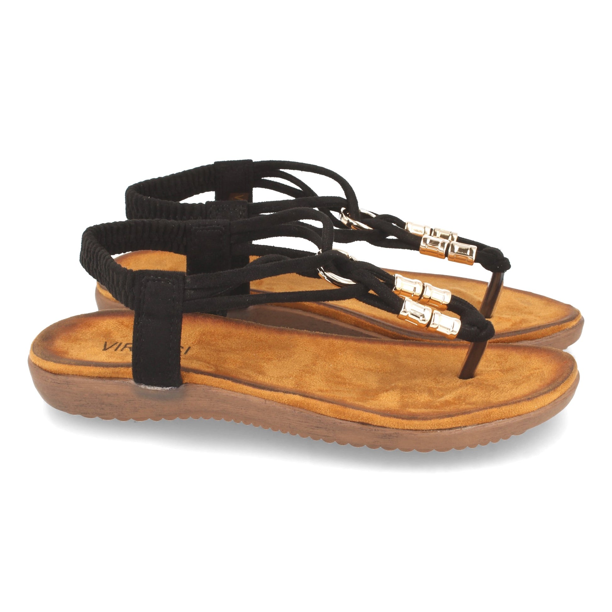 Sandalia Plana de Mujer Comodas de Estilo Esclava con Detalle Metalico en el Empeine y Cierre Elástico en el Talón Primavera Verano 2021