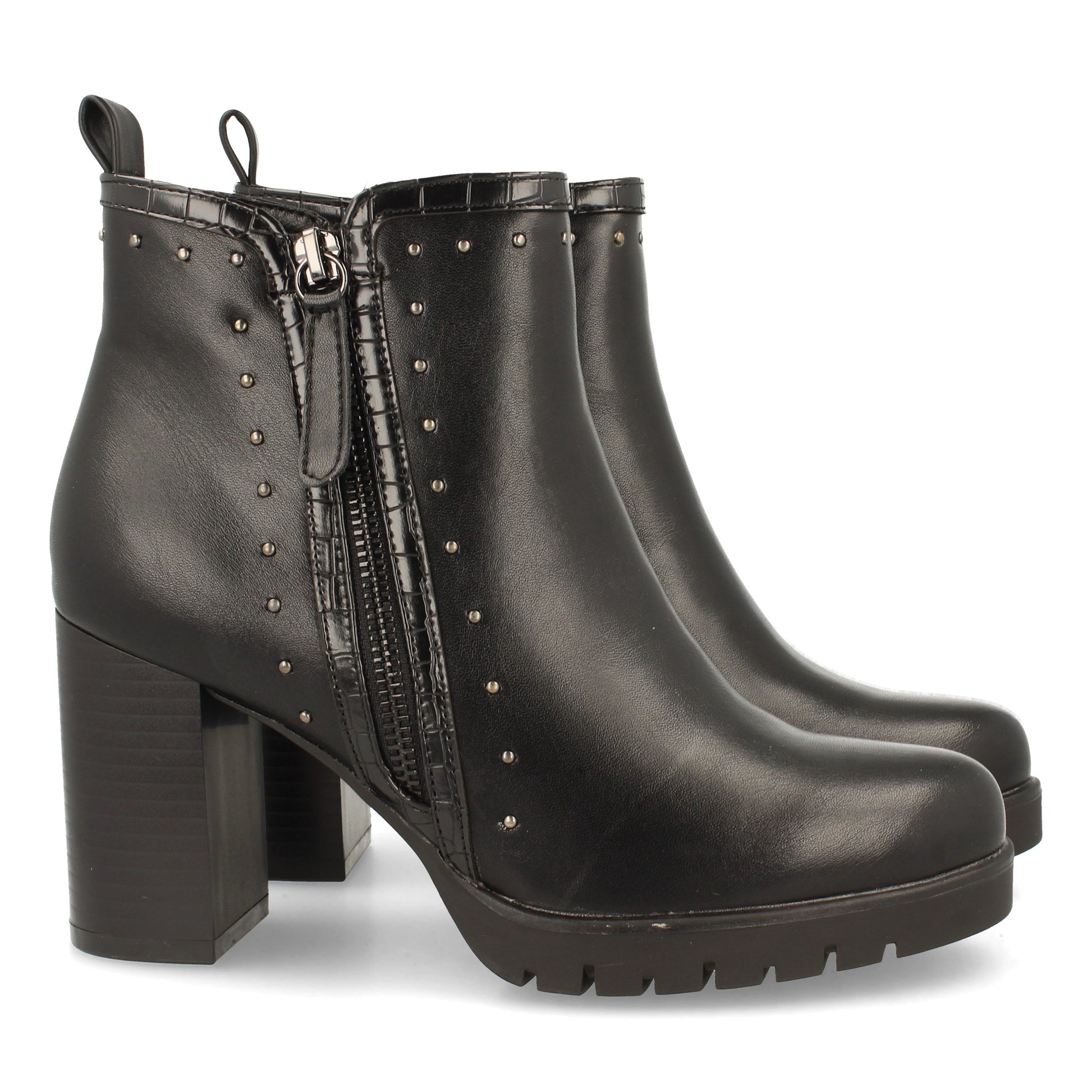 Botin de Tacón para Mujer Comodos con Tachuelas y Cierre de Cremallera Otoño Invierno 2021