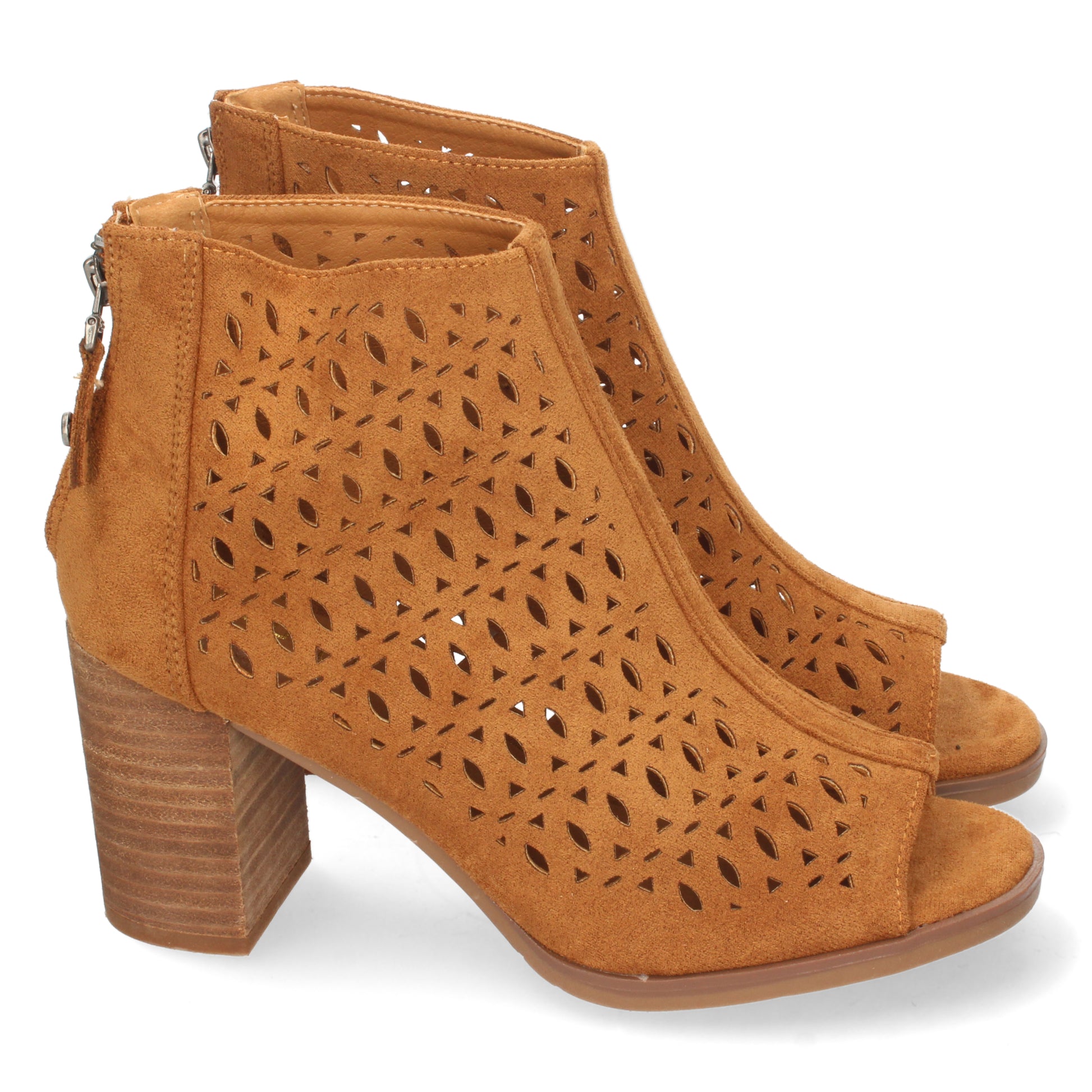 Botín de Tacón para Mujer Comodos con Calados y Punta Abierta Cierre de Cremallera en el Talón Primavera Verano 2022