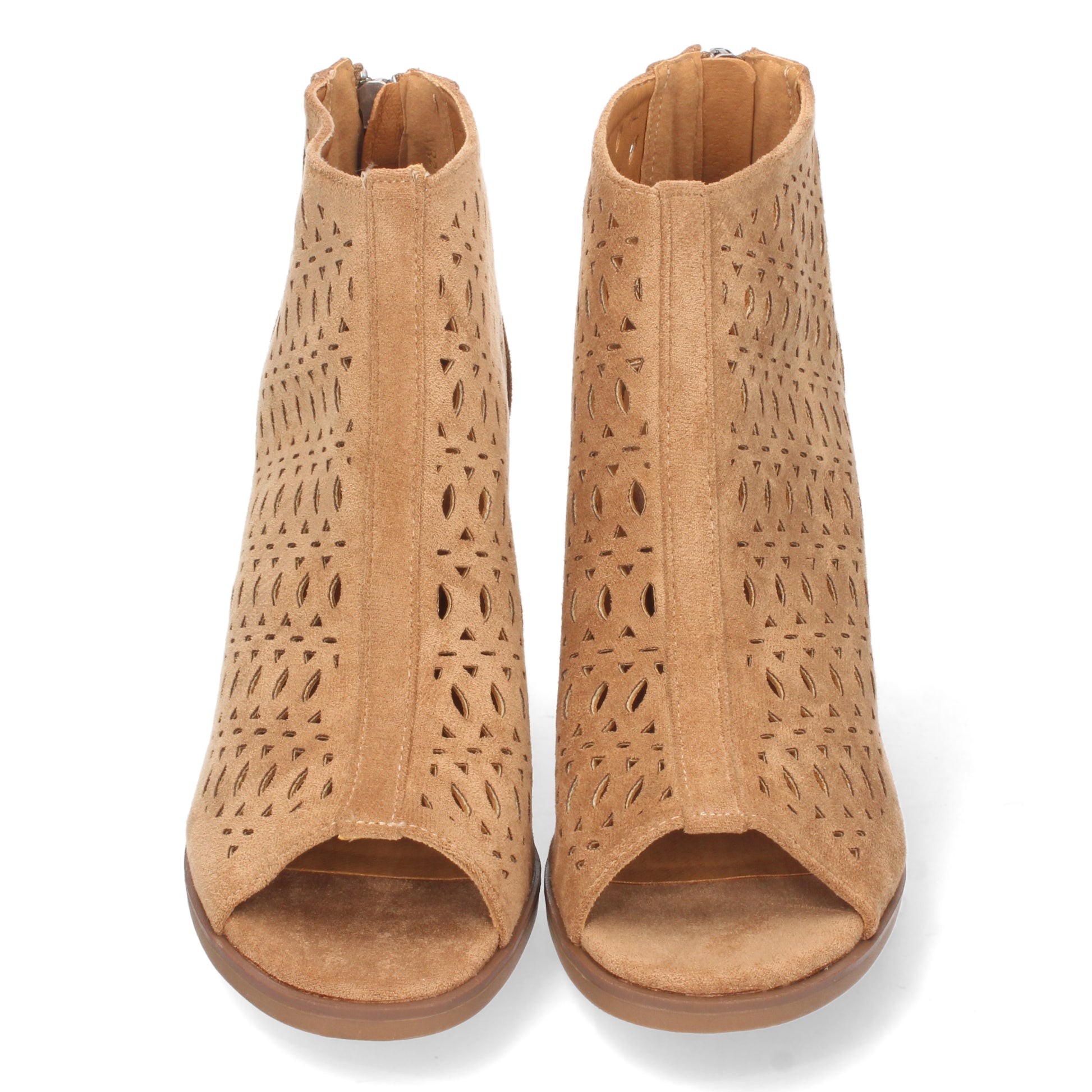 Botín de Tacón para Mujer Comodos con Calados y Punta Abierta Cierre de Cremallera en el Talón Primavera Verano 2022