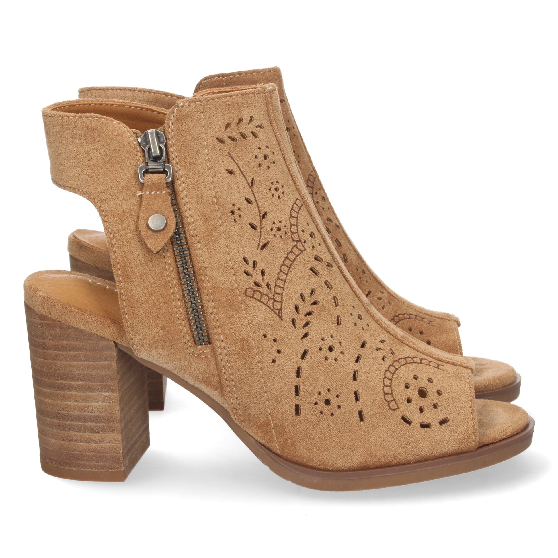 Sandalia de Tacon para Mujer con Calados y Grabados Punta Abierta y Cierre de Cremallera Primavera Verano 2022