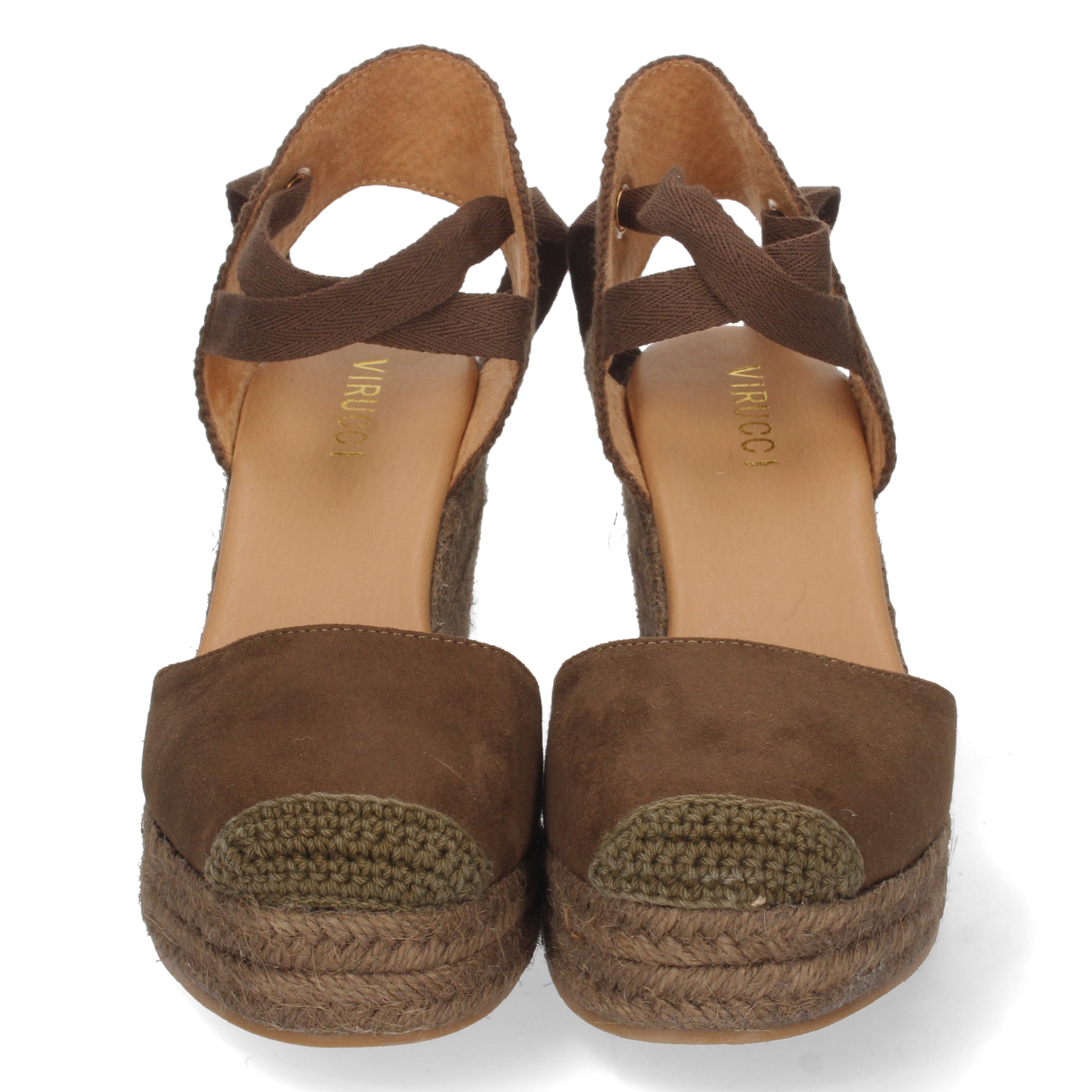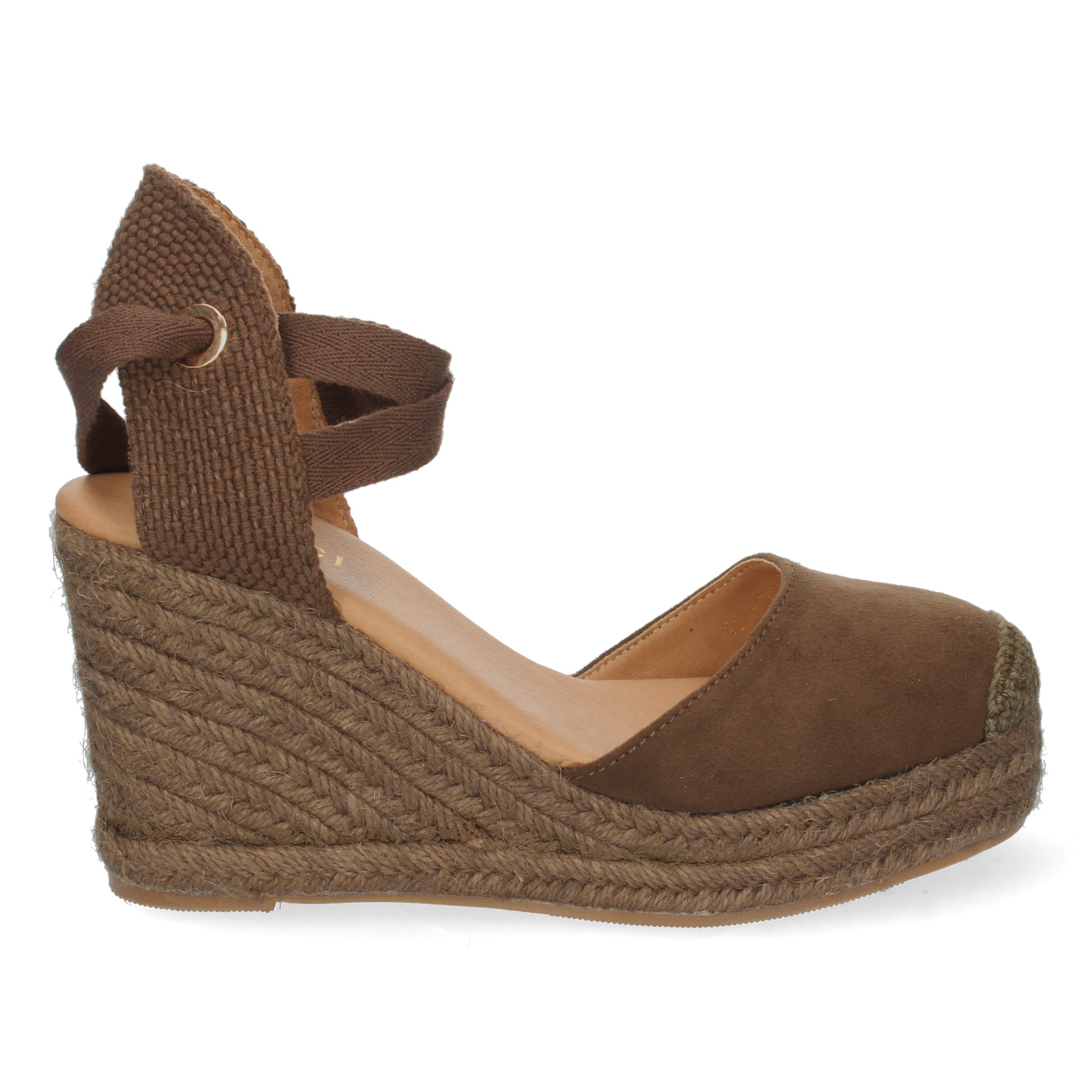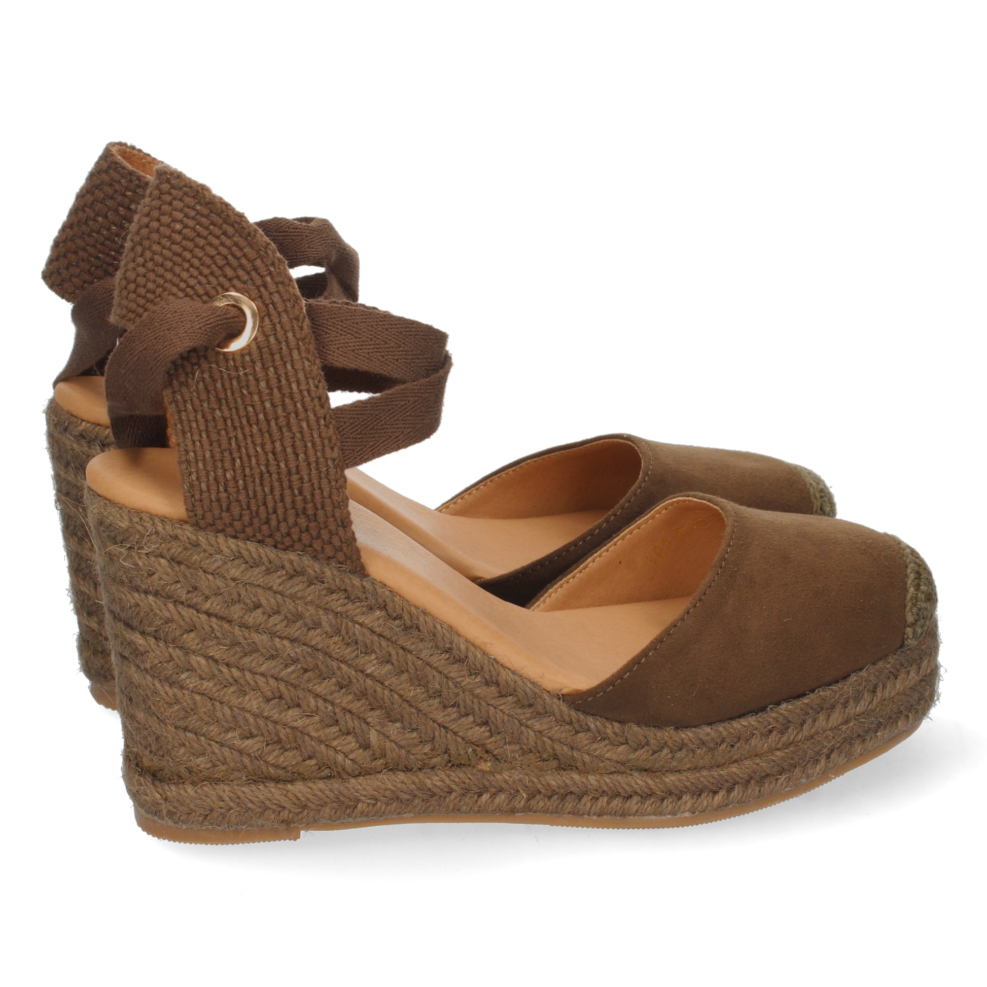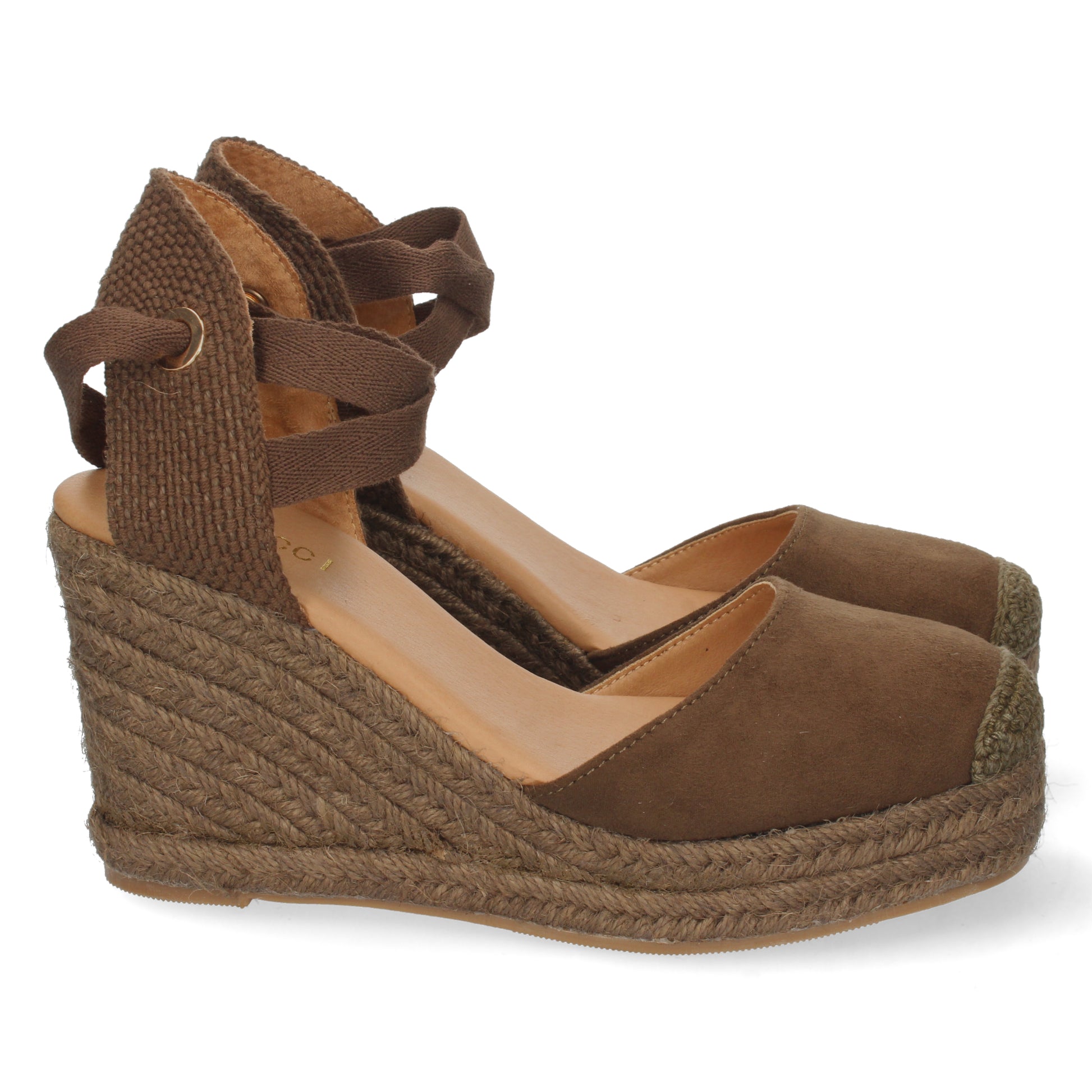 Sandalia de Cuña para Mujer Forrada de Yute Tintado Pala Cerrada y Cierre de Cordones Primavera Verano 2022