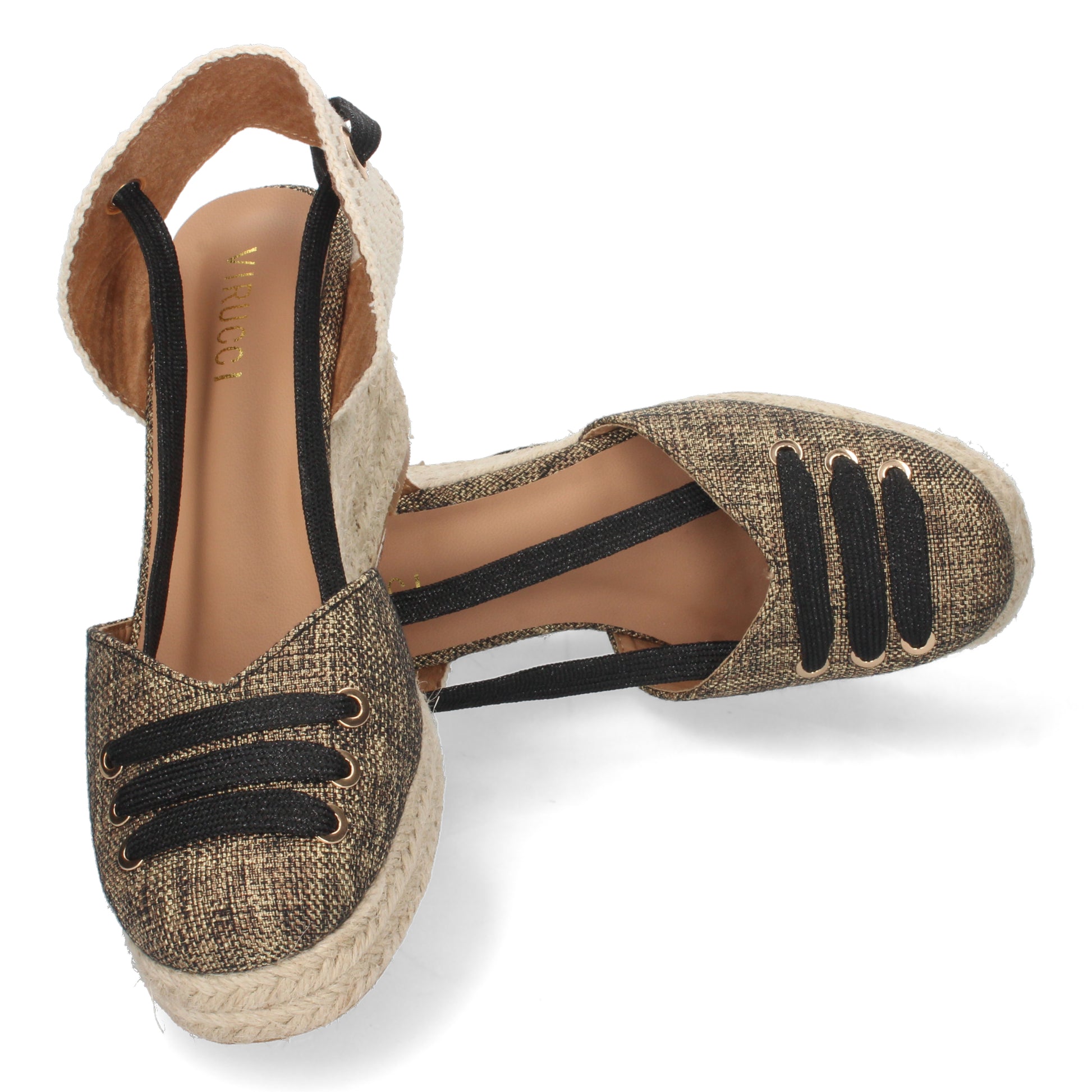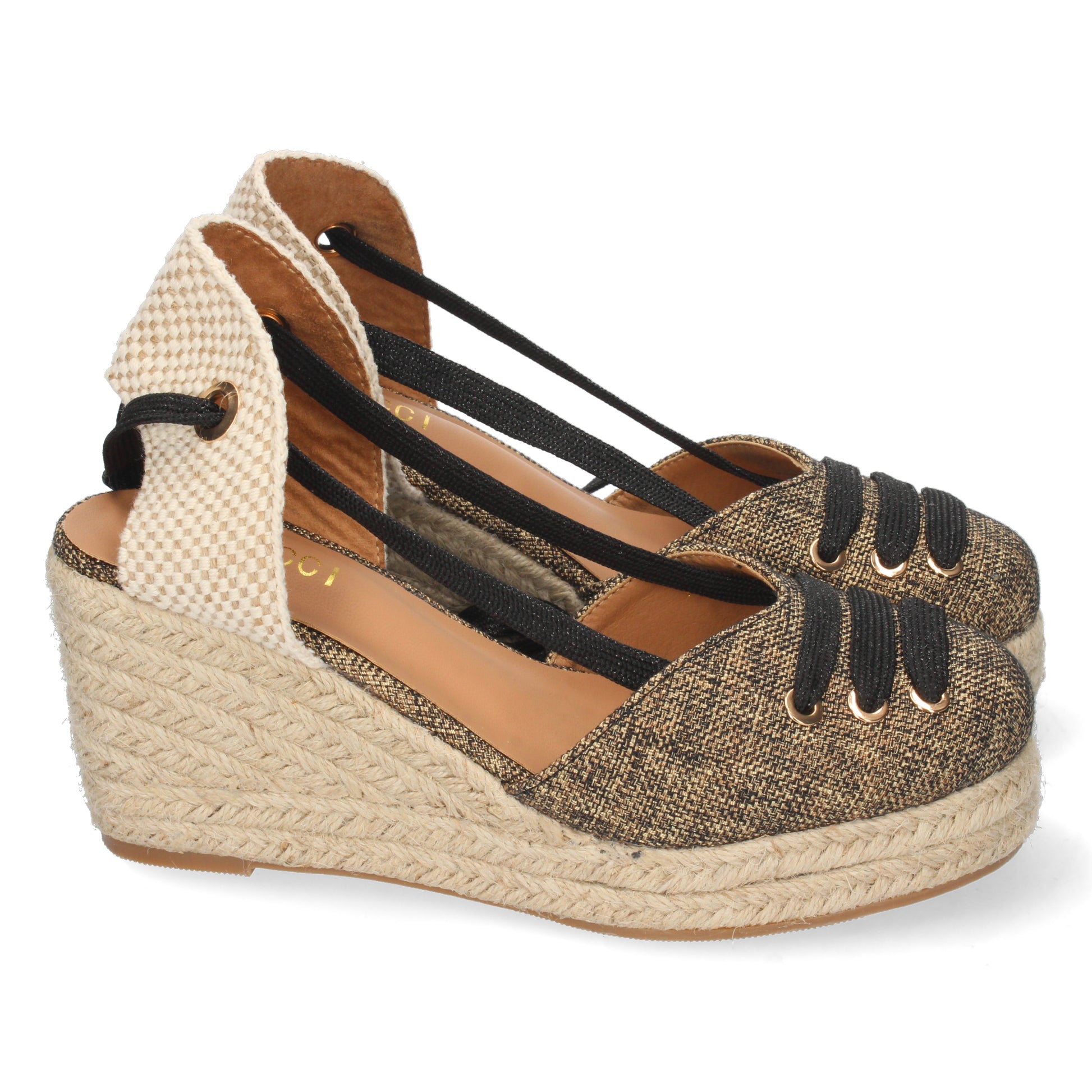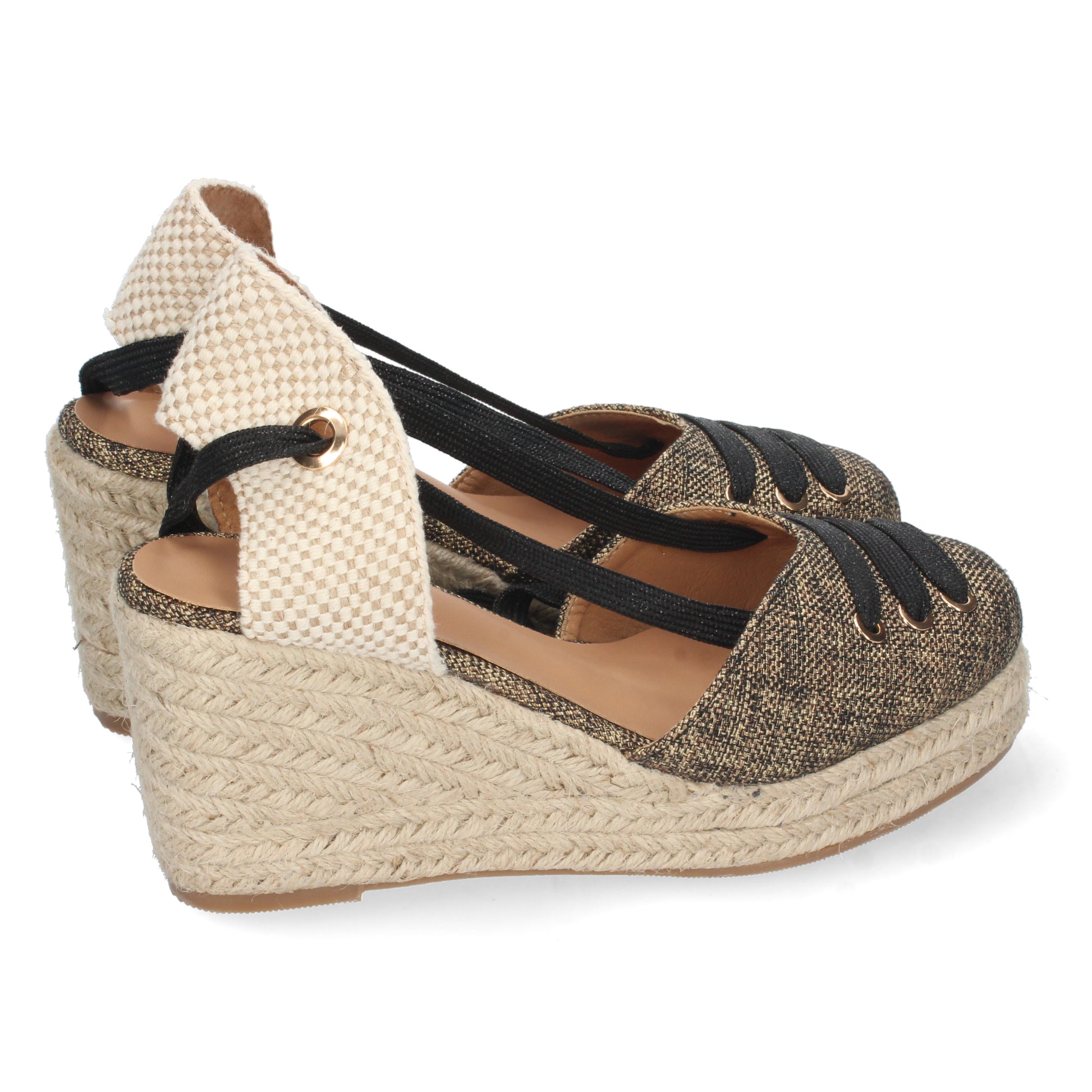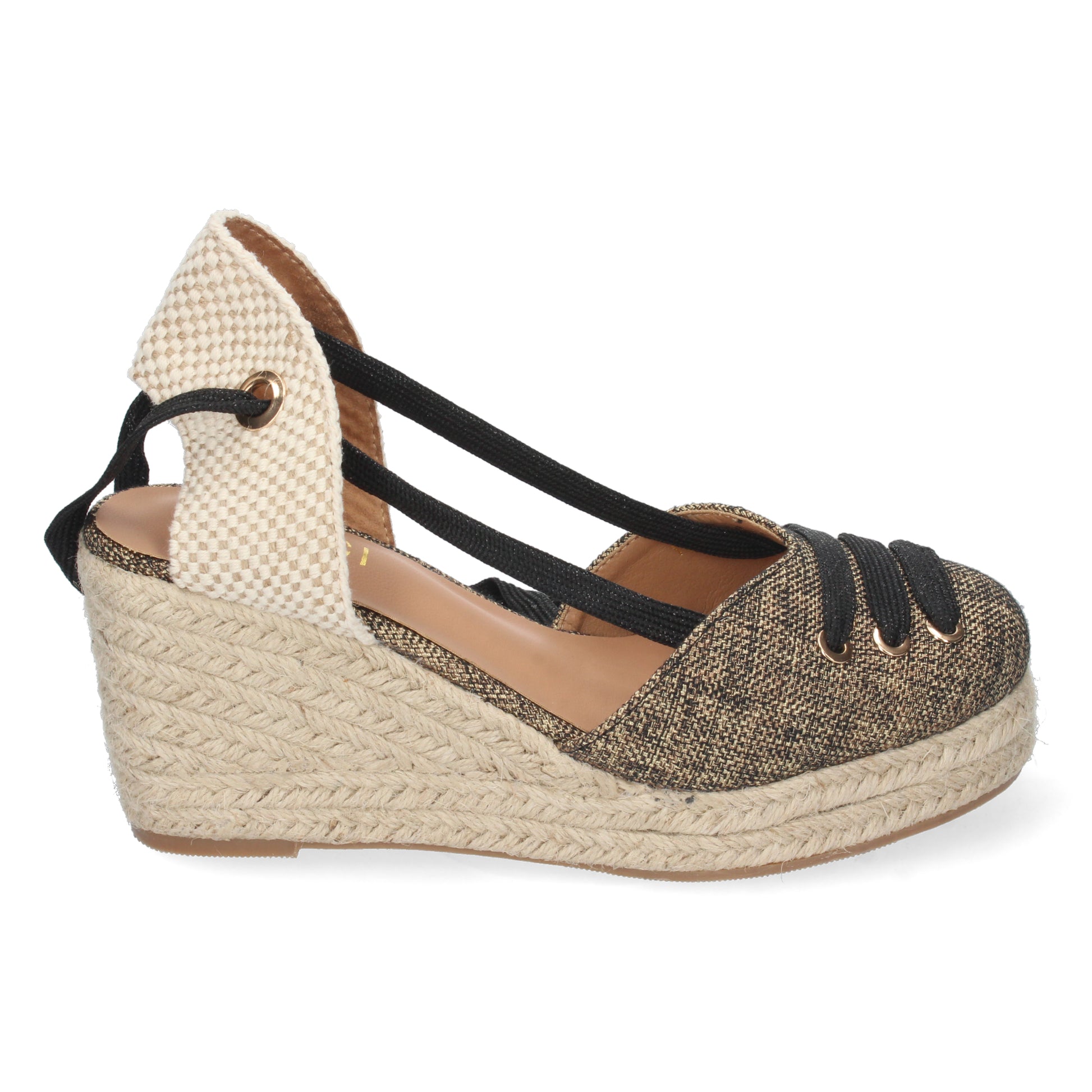 Sandalia de Cuña para Mujer Forrada de Yute Pala Cerrada y Cierre de Cordones Primavera Verano 2022