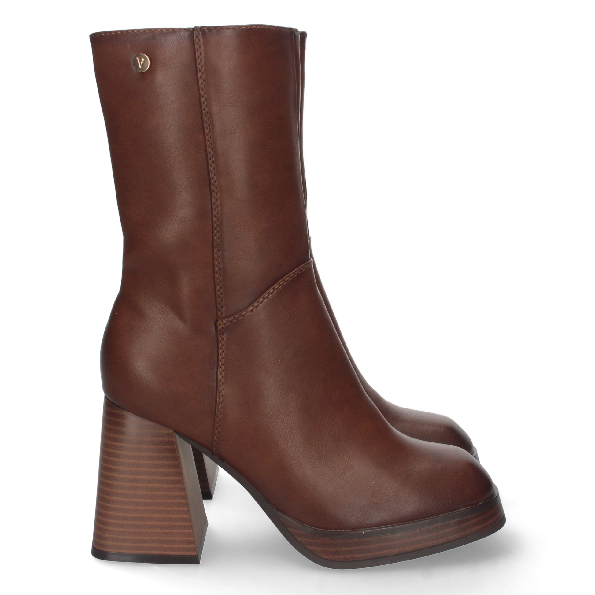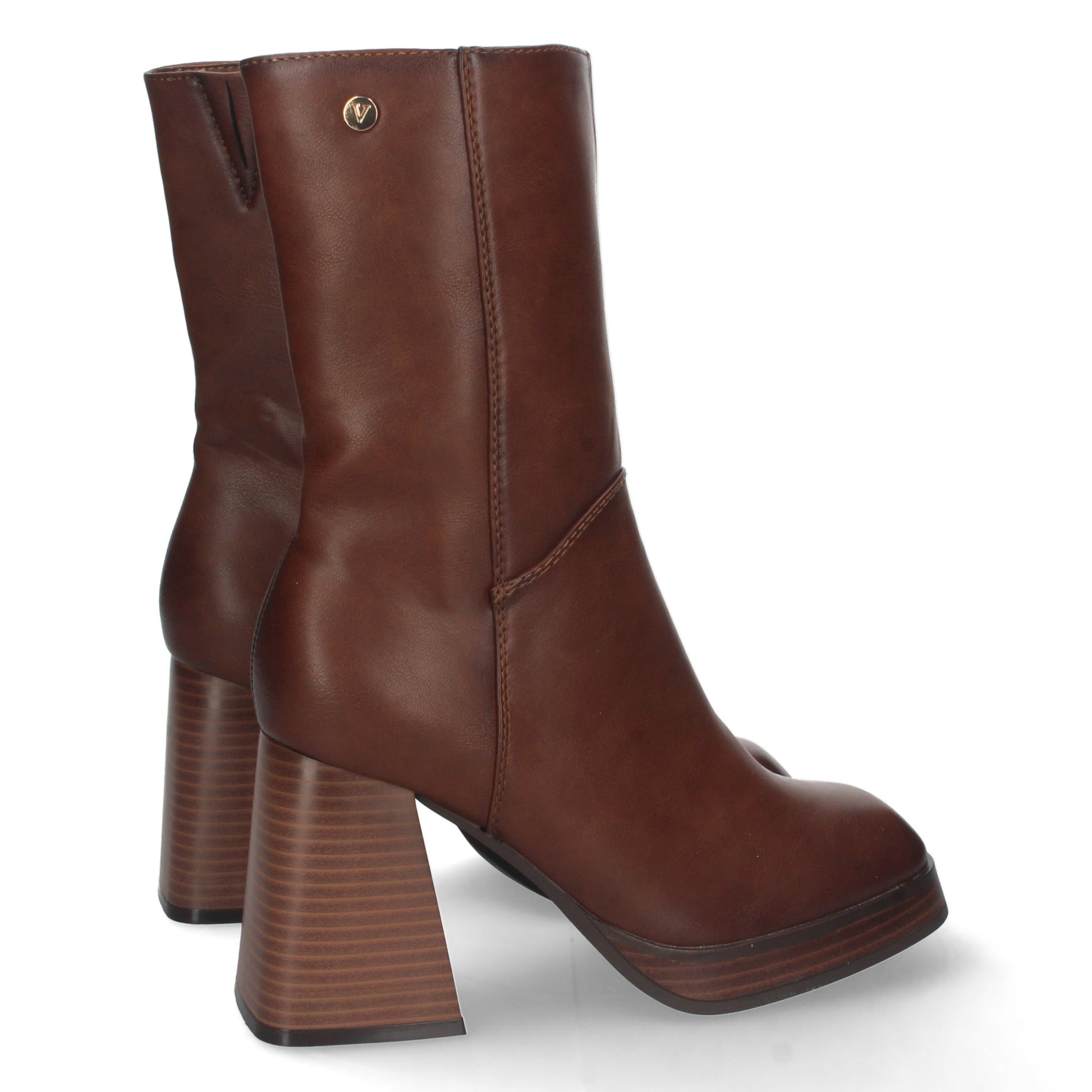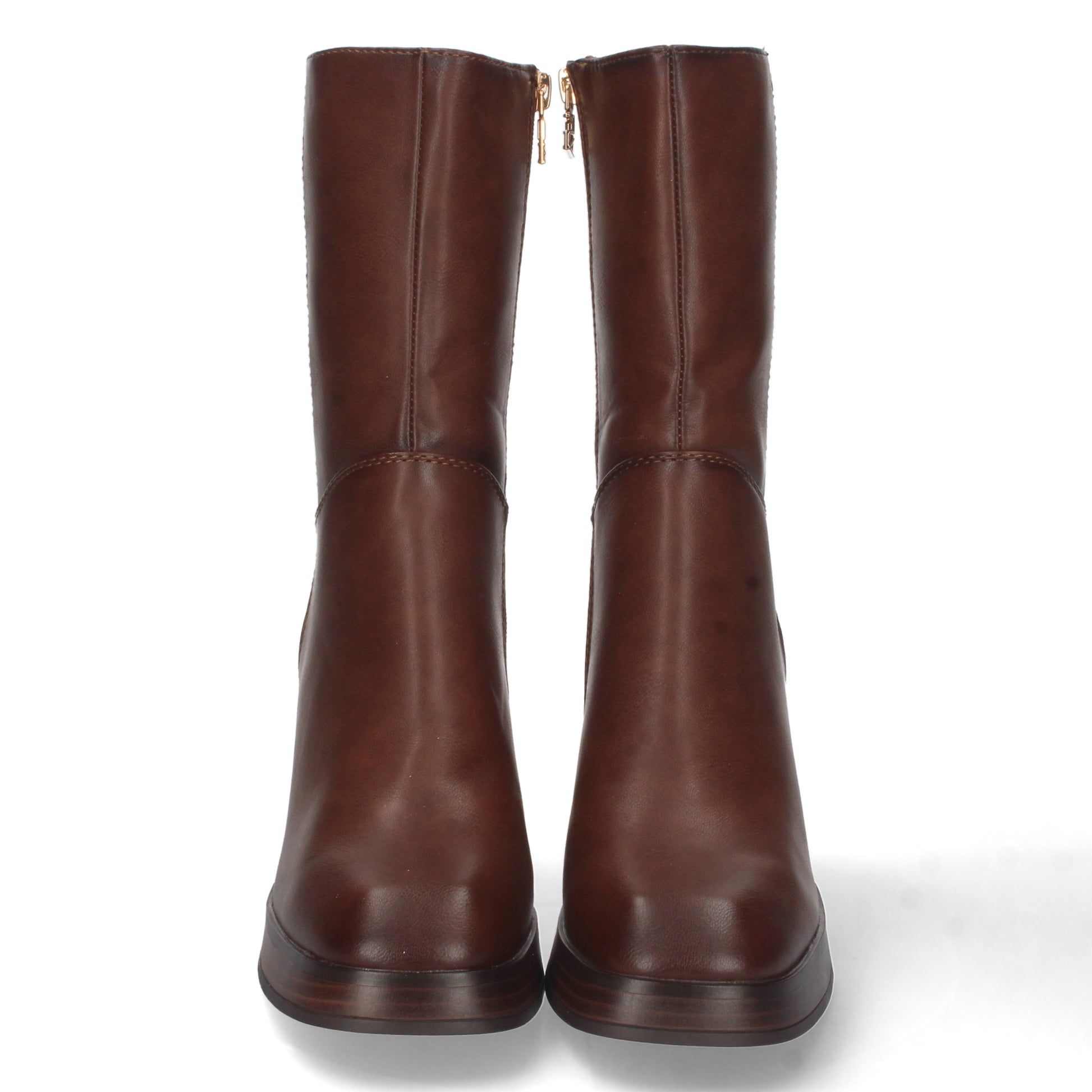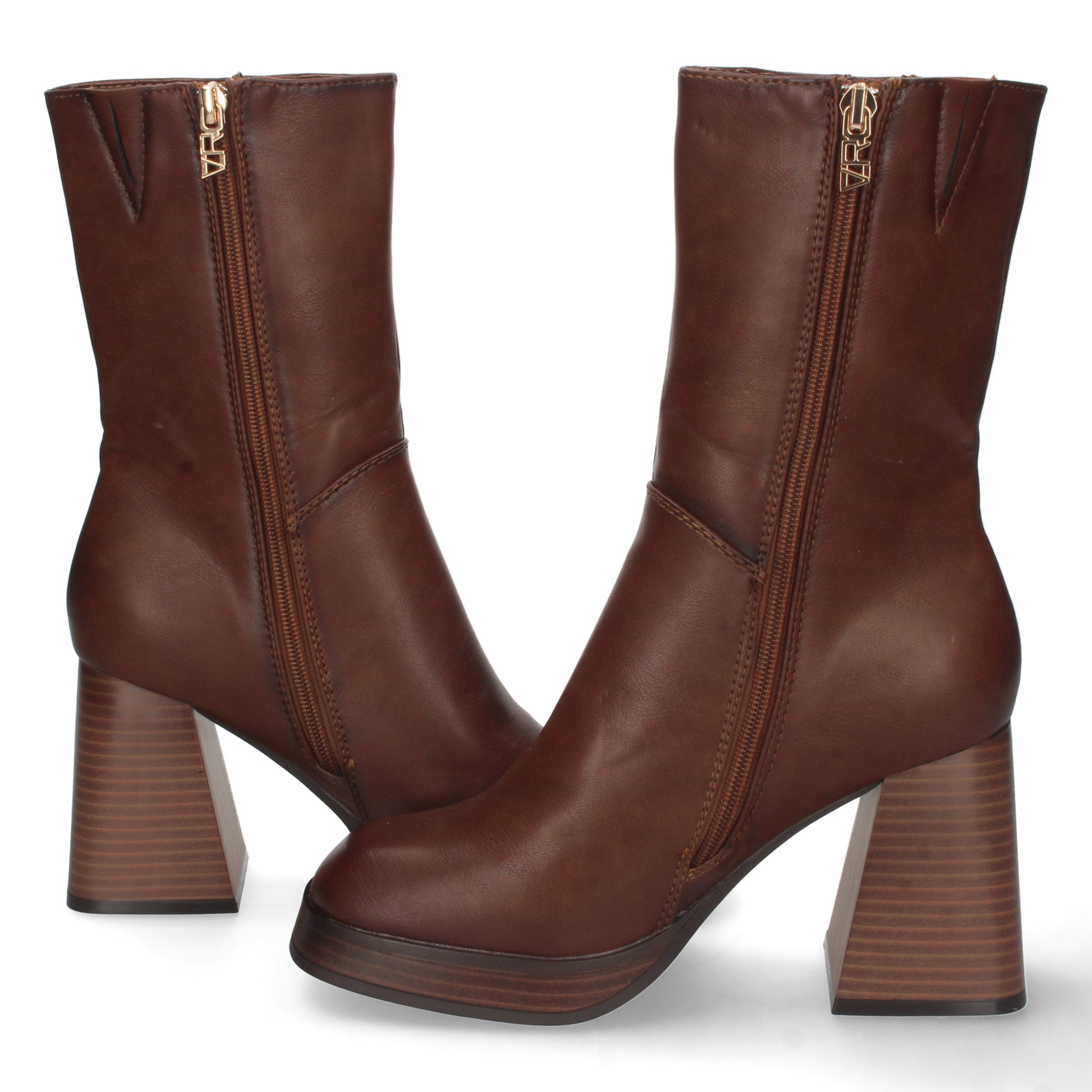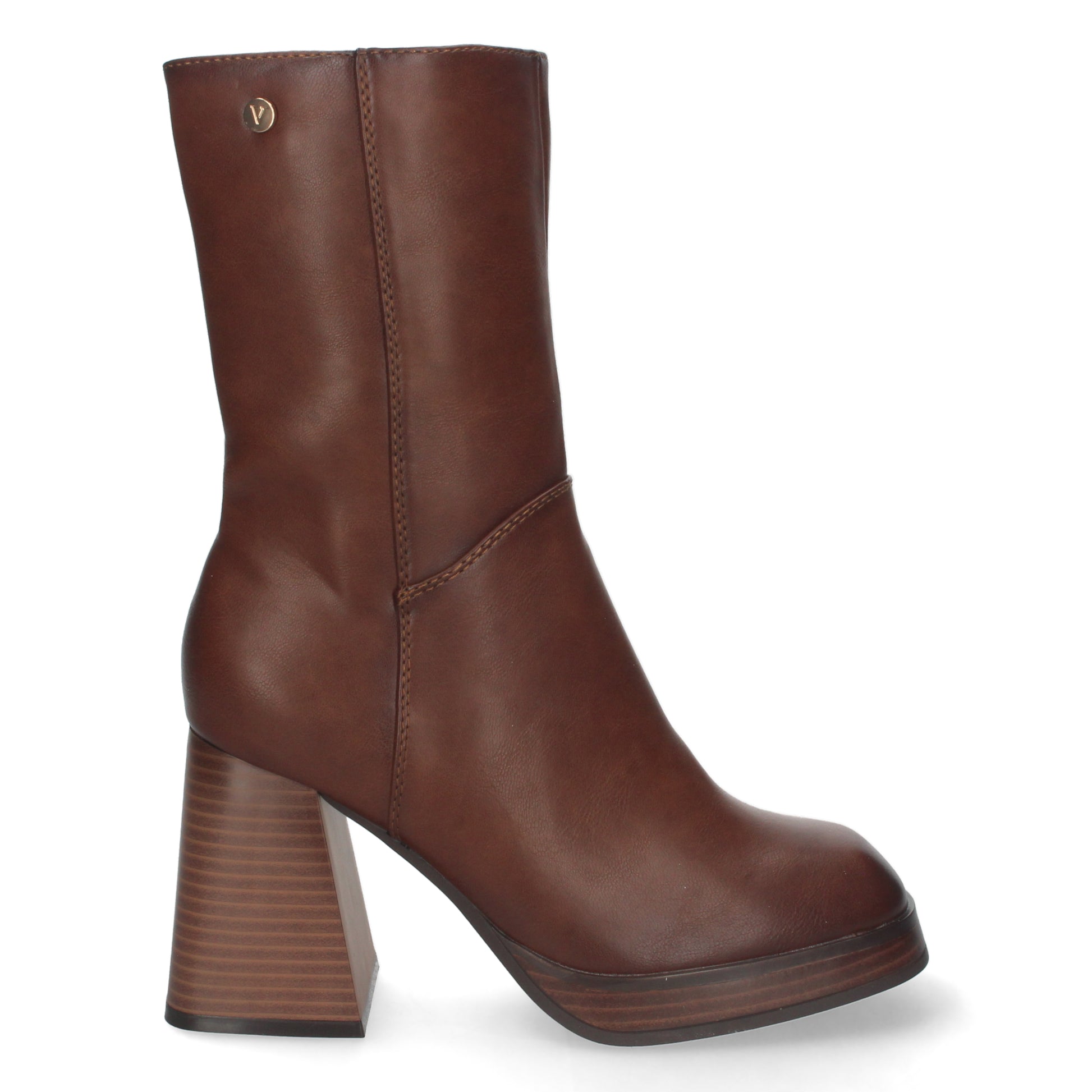 Botin de Tacon Ancho para Mujer con Estampado Liso Tachuela en Caña y Cierre de Cremallera Otoño Invierno 2022