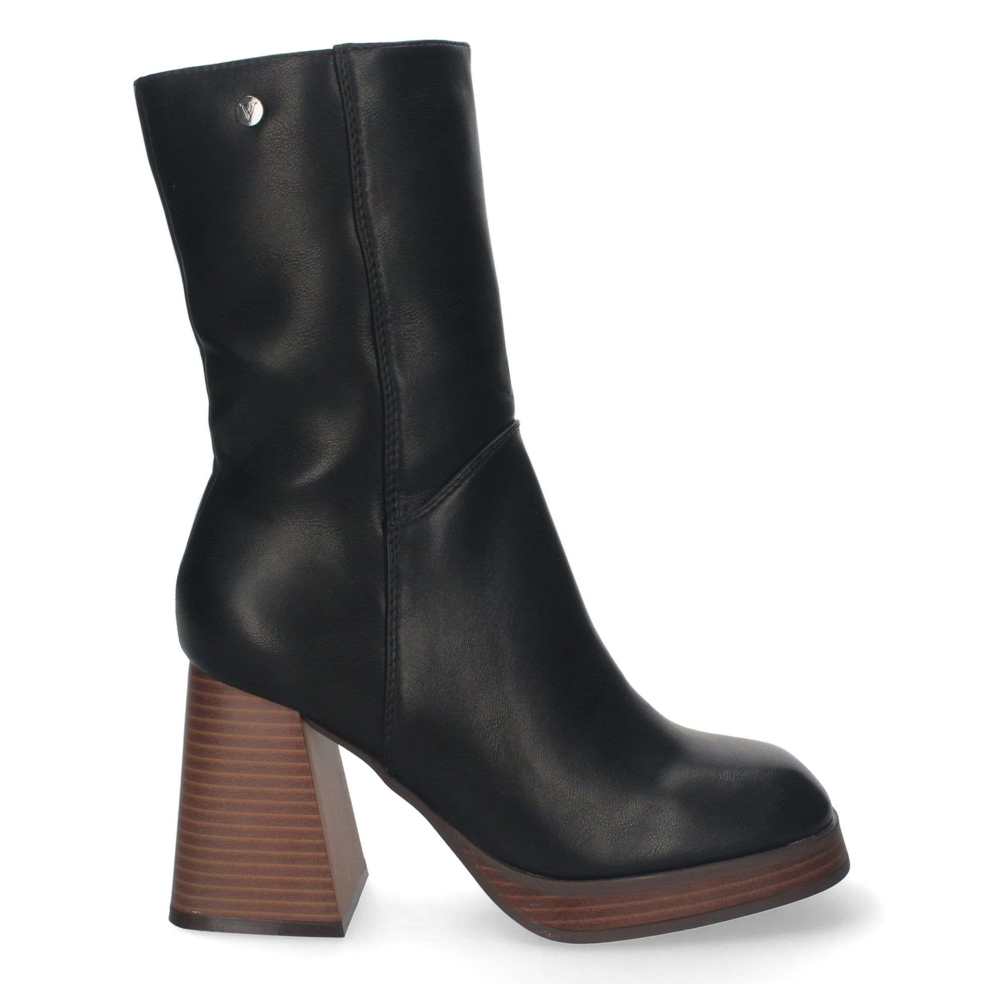 Botin de Tacon Ancho para Mujer con Estampado Liso Tachuela en Caña y Cierre de Cremallera Otoño Invierno 2022
