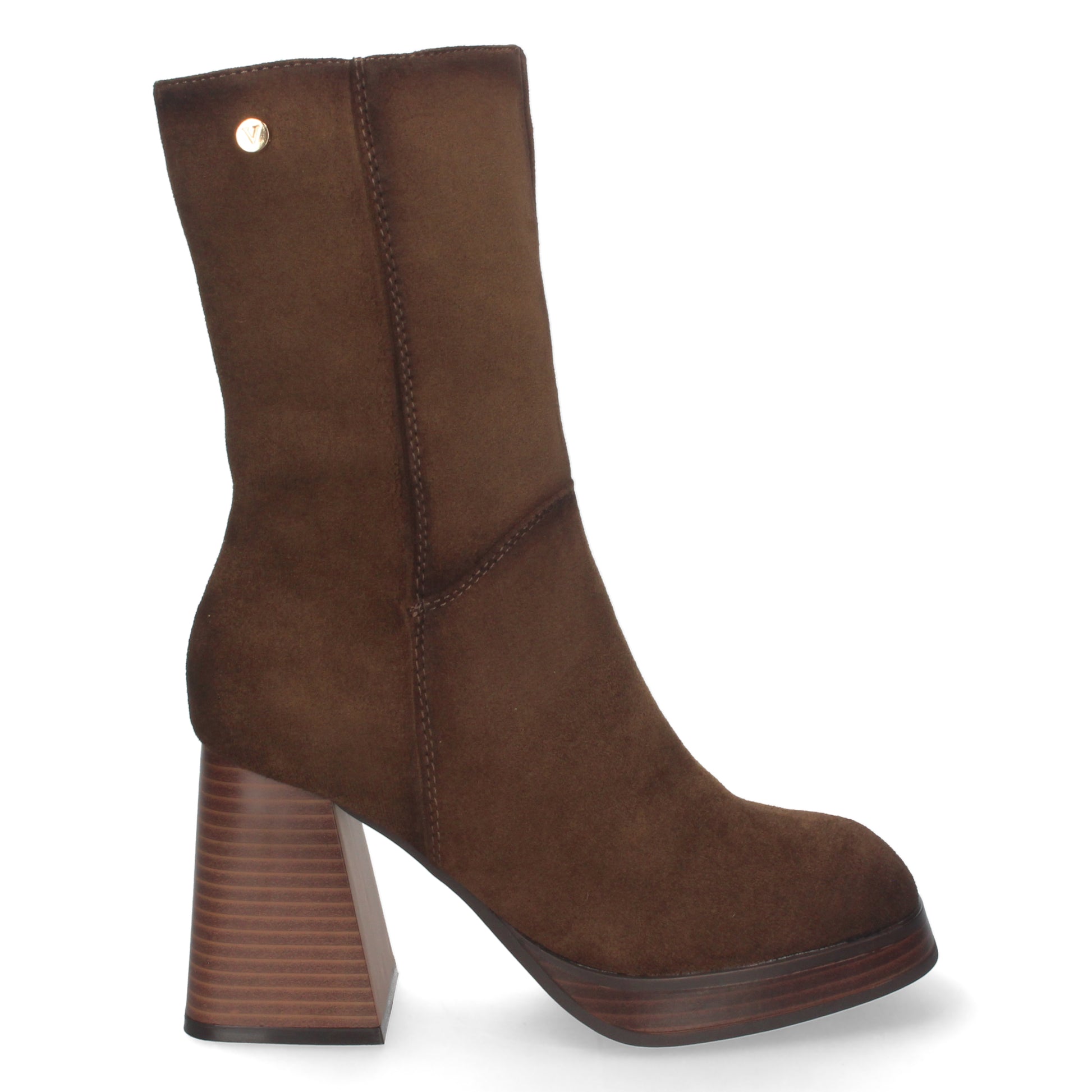 Botin de Tacon Ancho para Mujer con Estampado Liso Tachuela en Caña y Cierre de Cremallera Otoño Invierno 2022