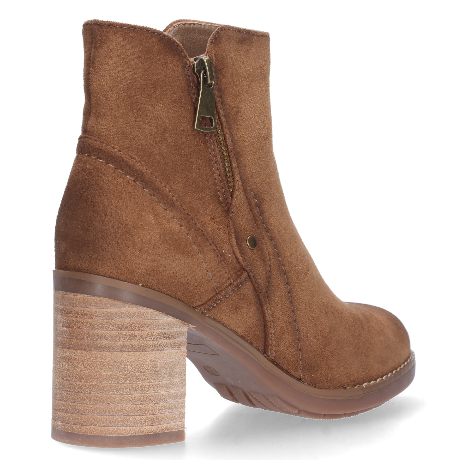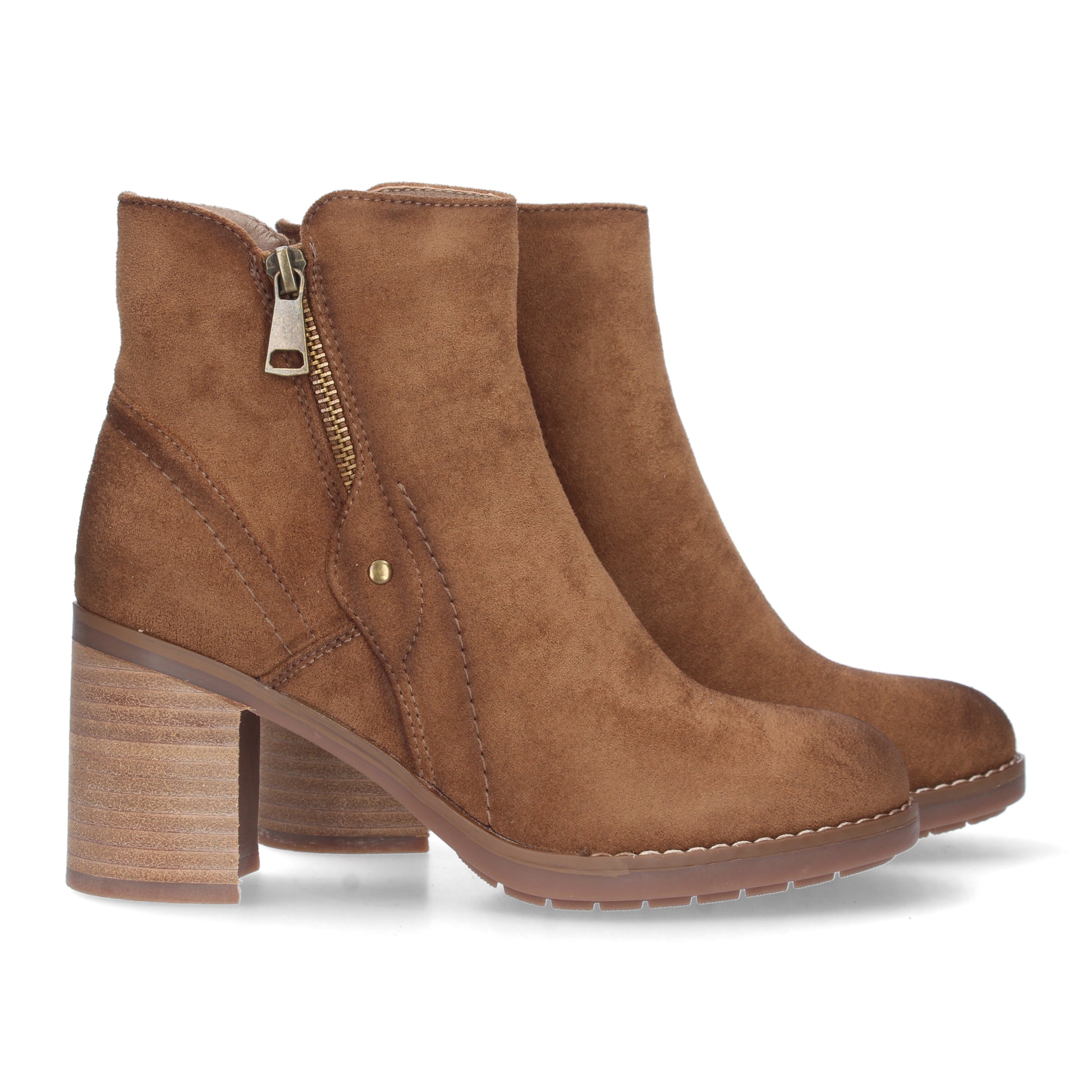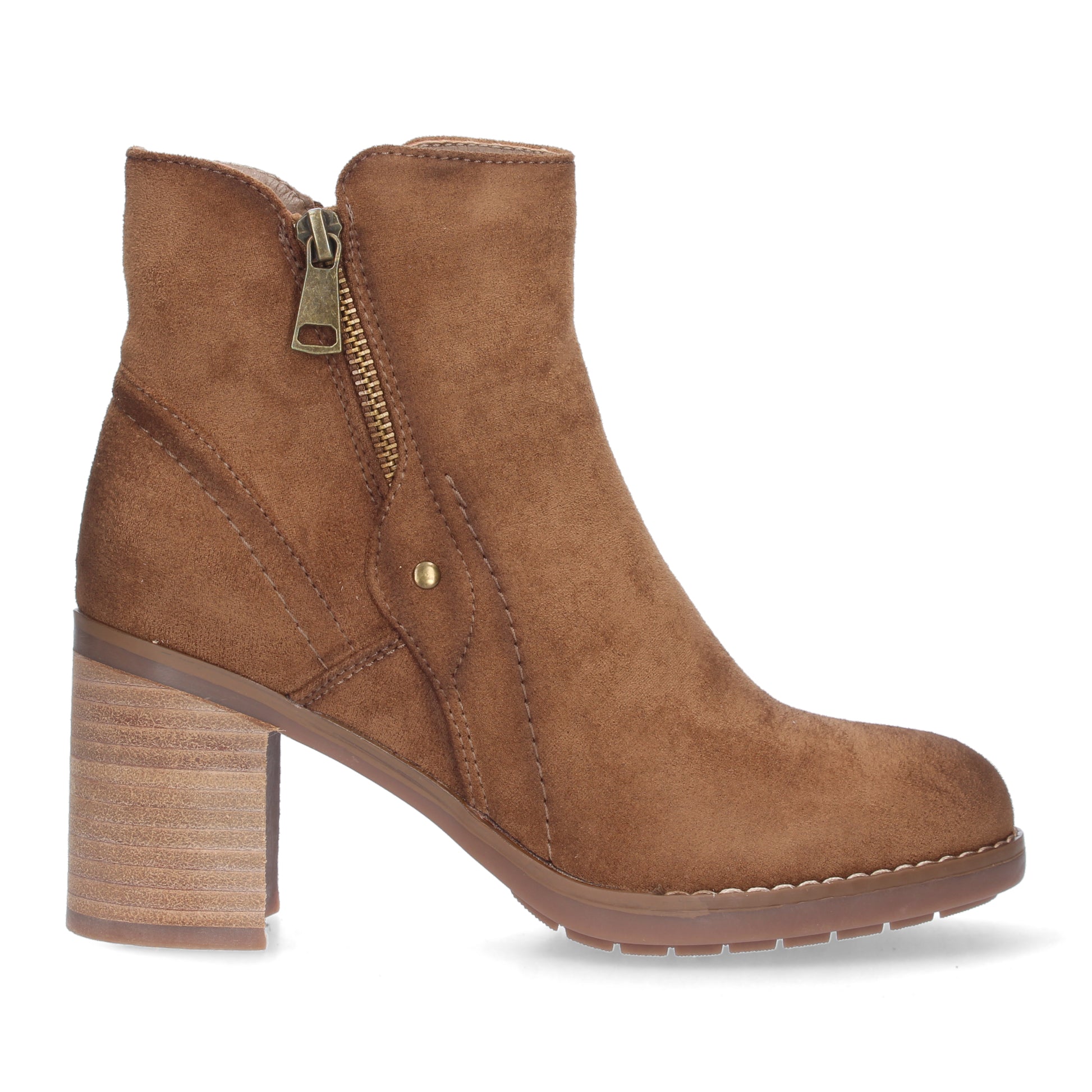 Botín mujer estampado liso con tirador y tachuela cierre de cremallera. Tacón recto temporada otoño invierno 2023
