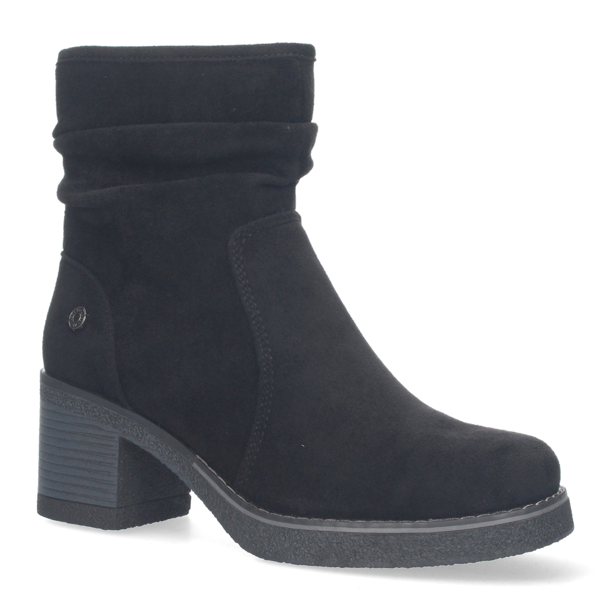 Botin como para mujer caña arrugada y detalle metalico material aterciopelado cierre de cremallera.