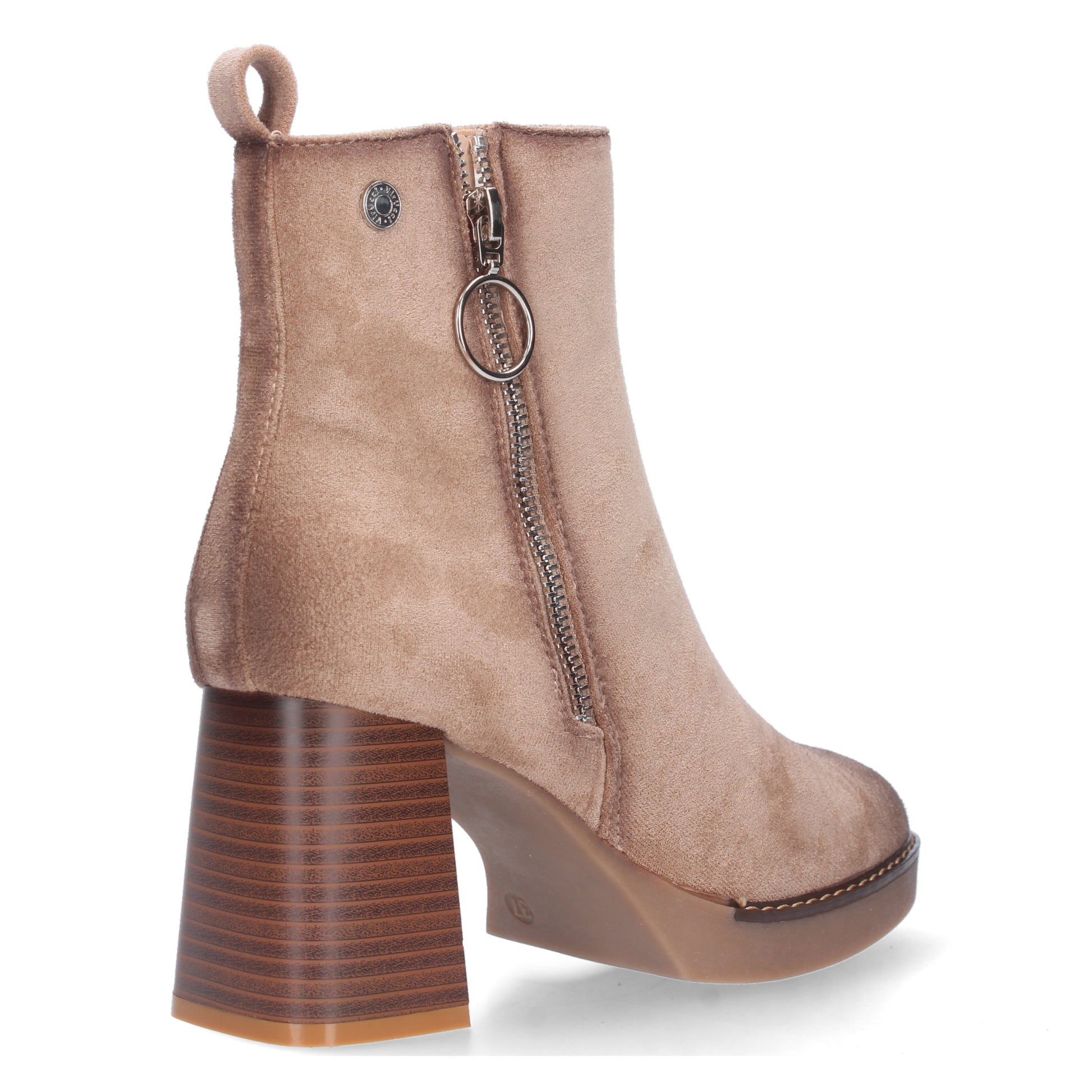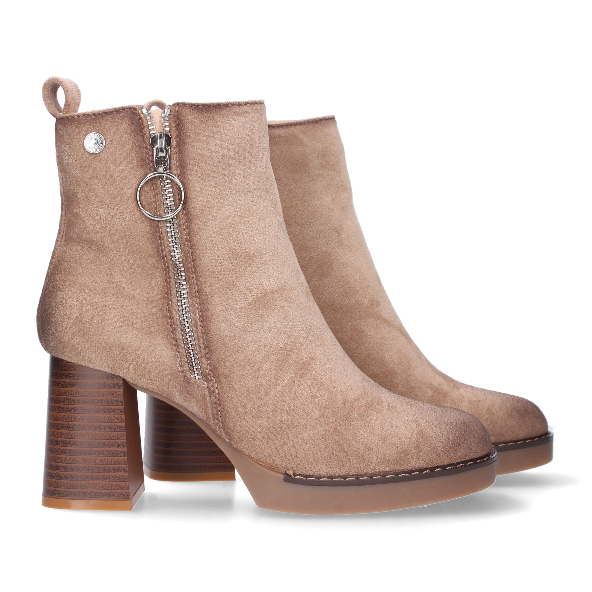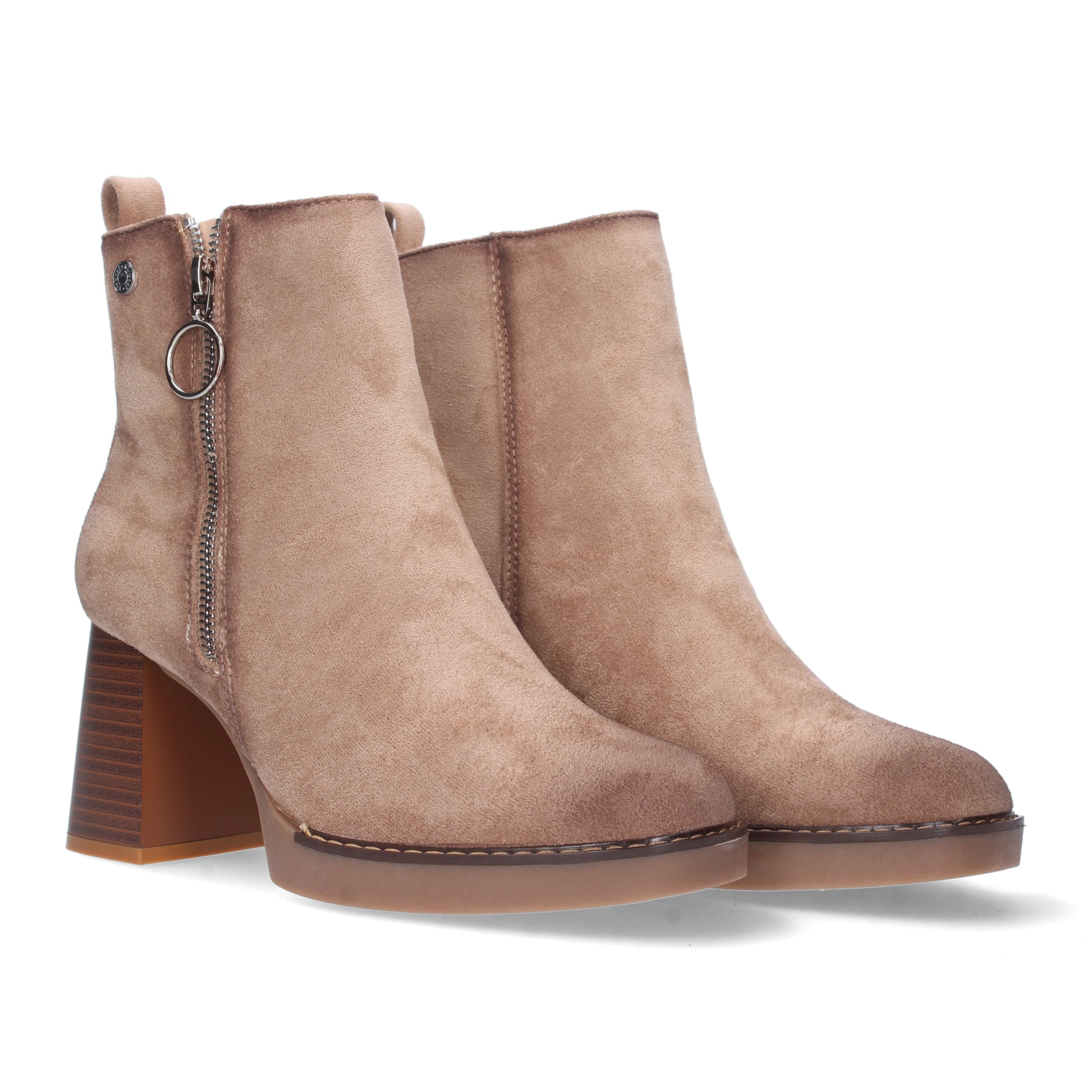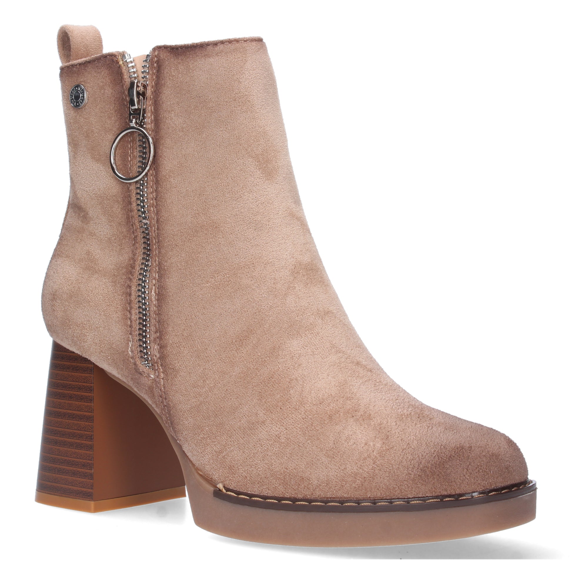Botín mujer estampado liso con tirador y tachuela cierre de cremallera. Tacón recto temporada otoño invierno 2023