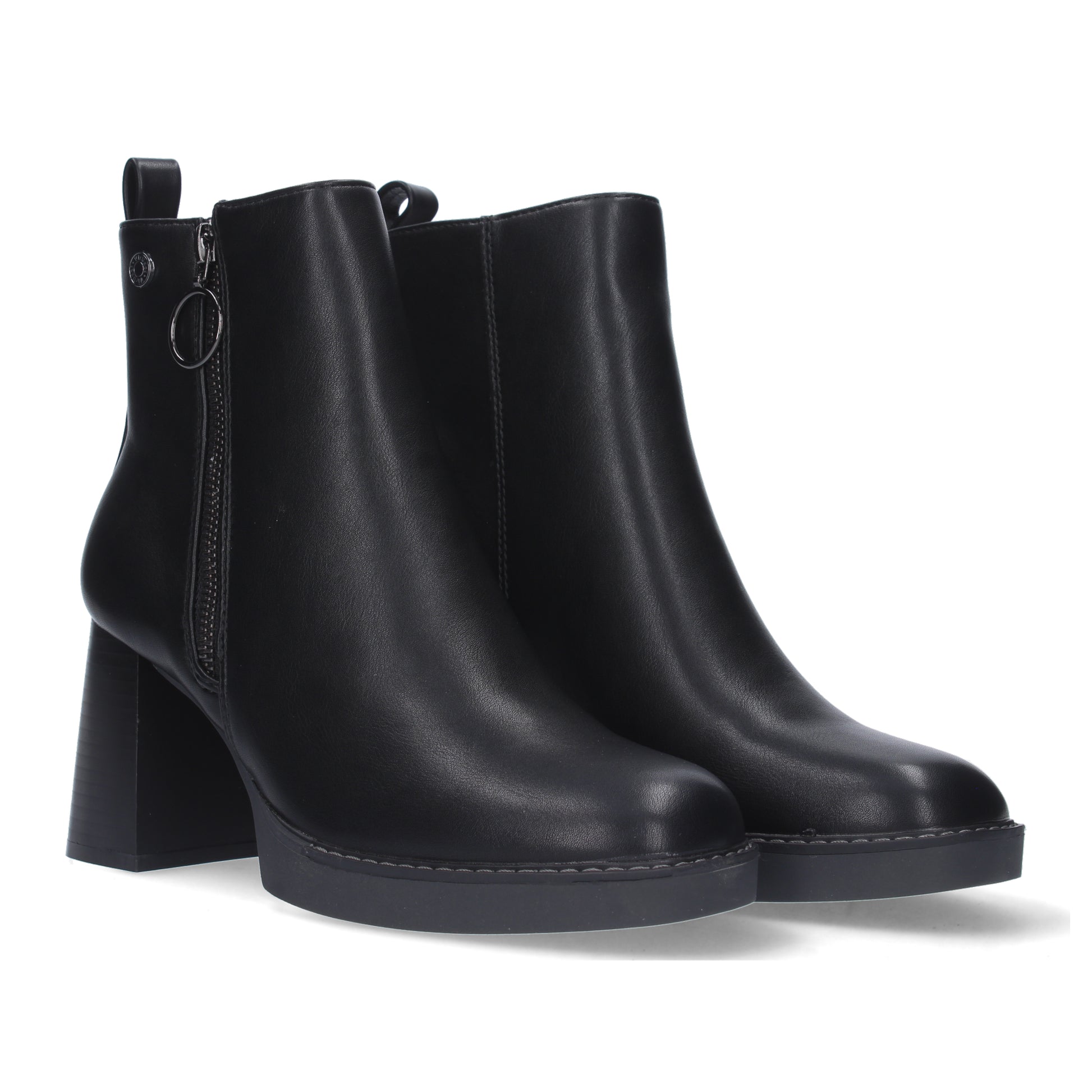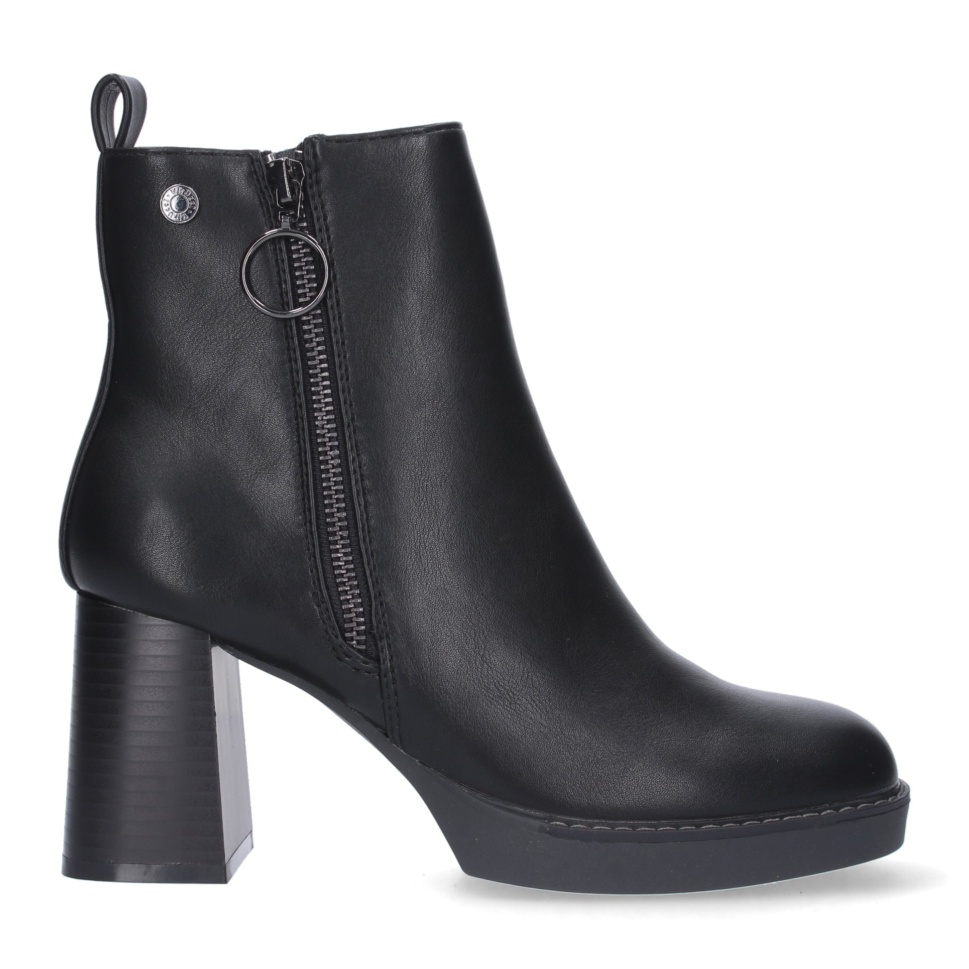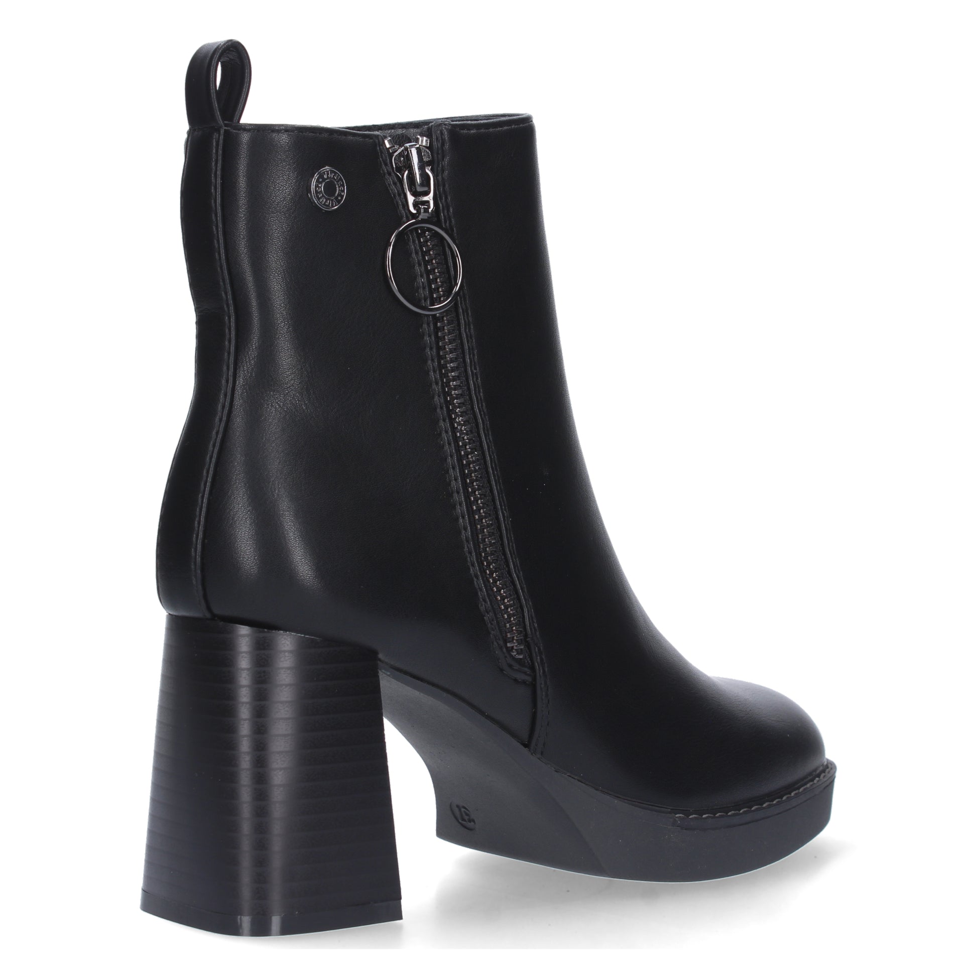 Botín mujer estampado liso con tirador y tachuela cierre de cremallera. Tacón recto temporada otoño invierno 2023
