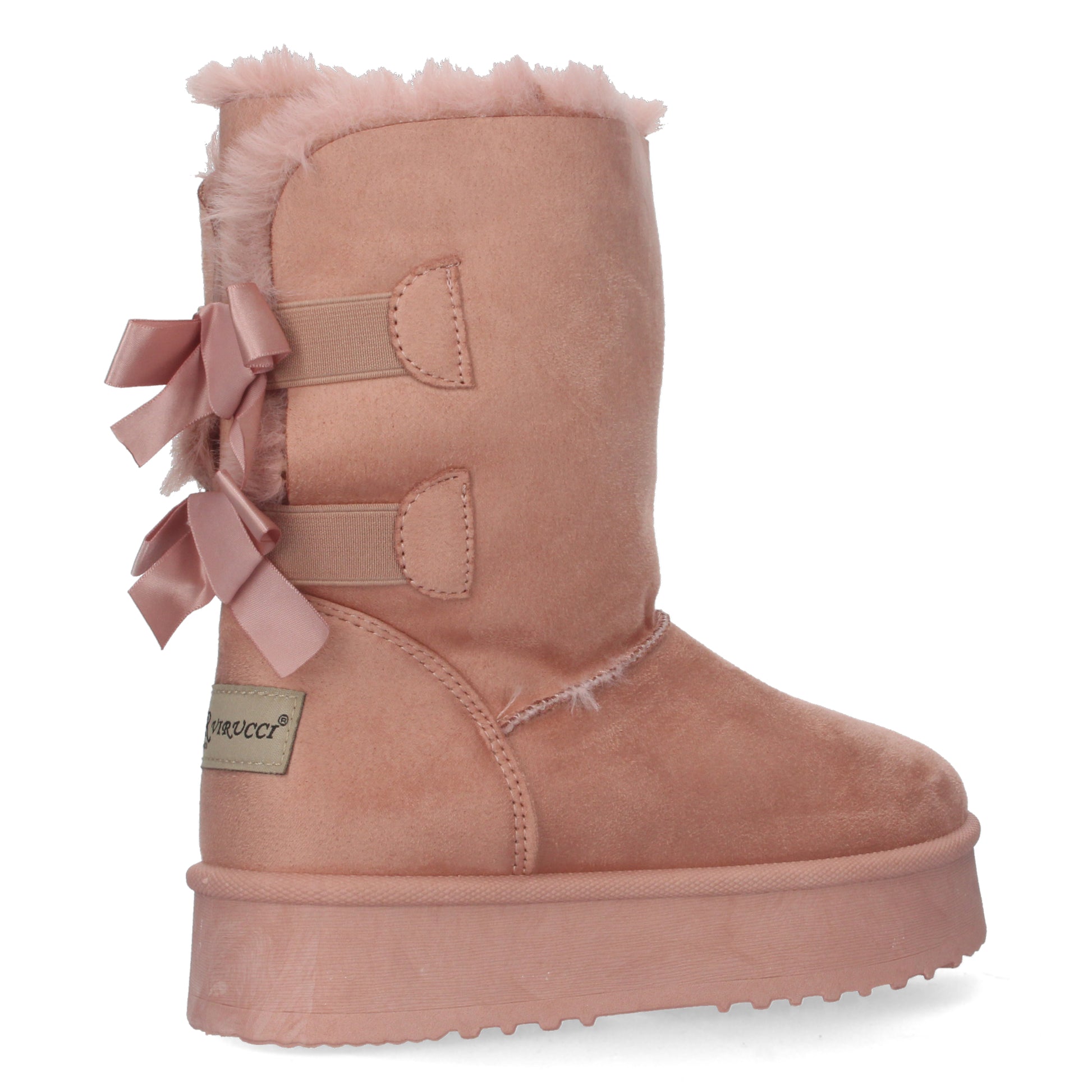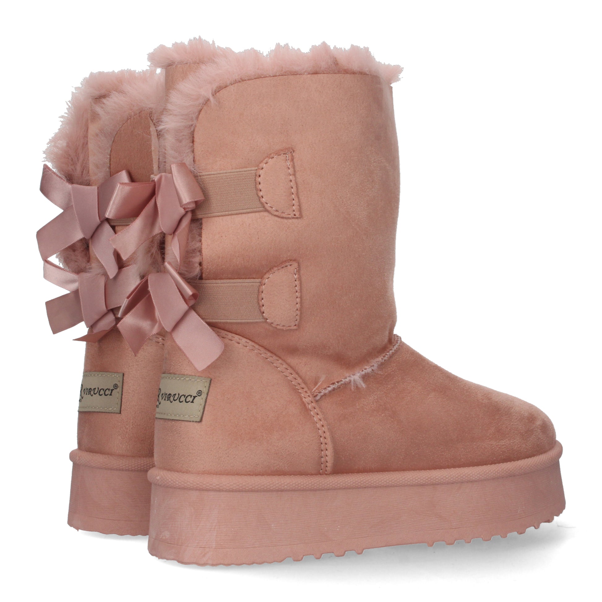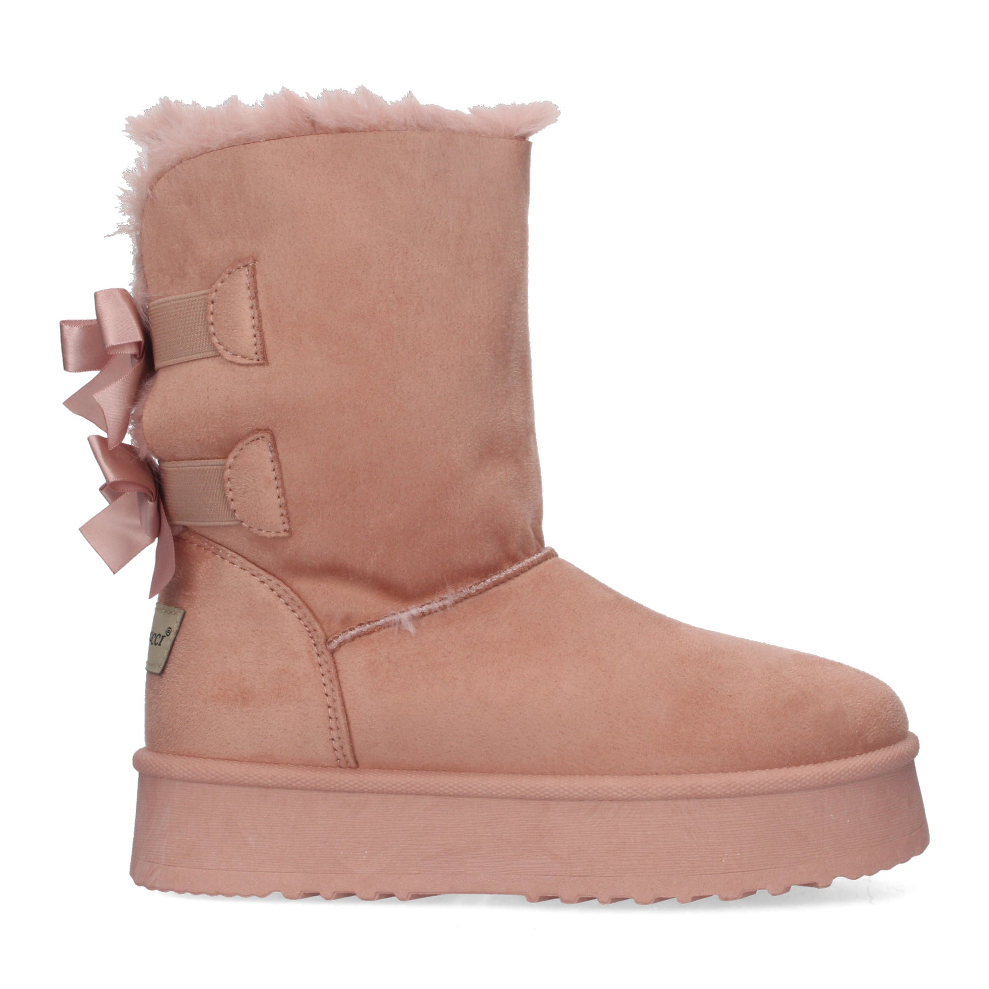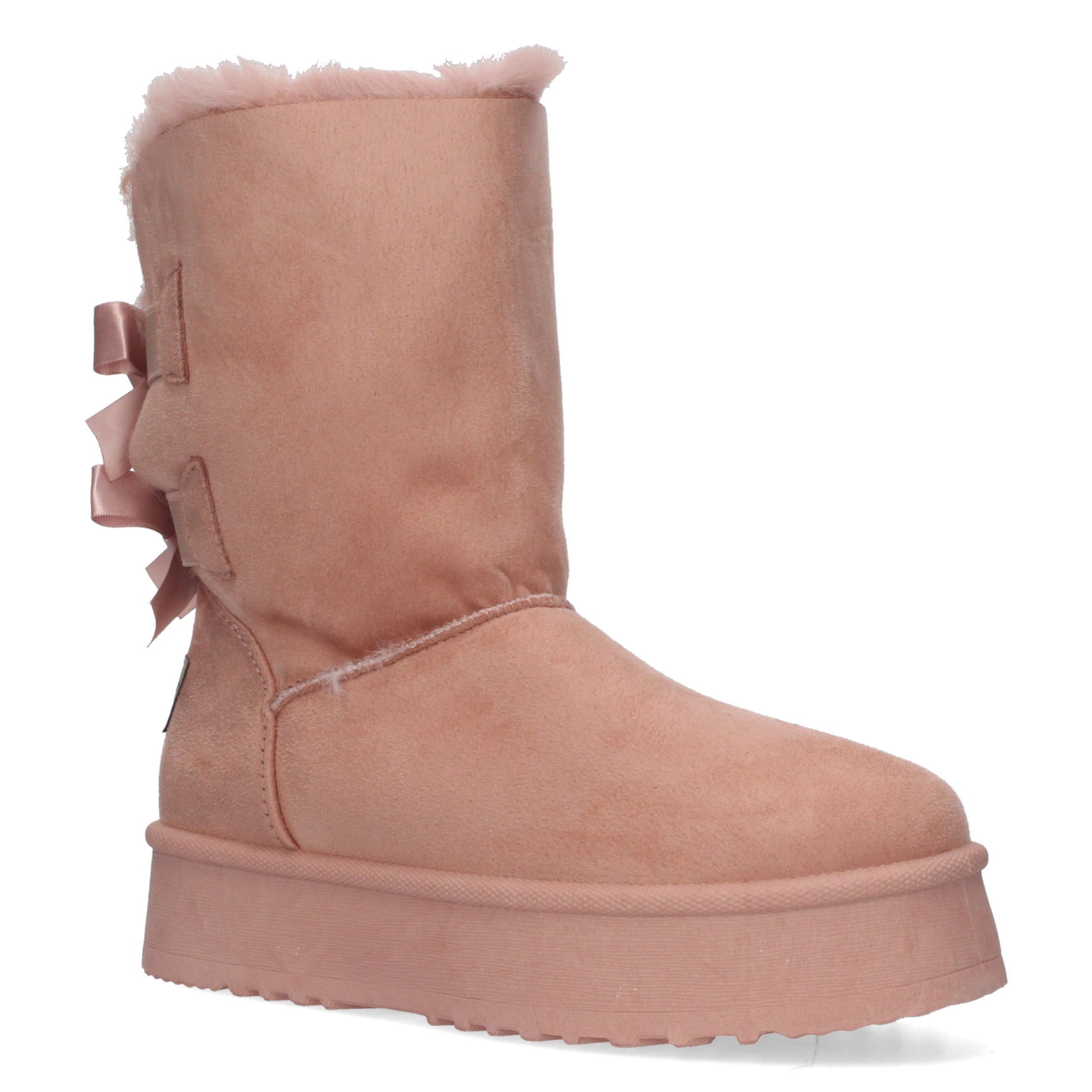 Botínes lisos de plataforma con interior forrado en pelo y lazos como adornos en la parte posterior.