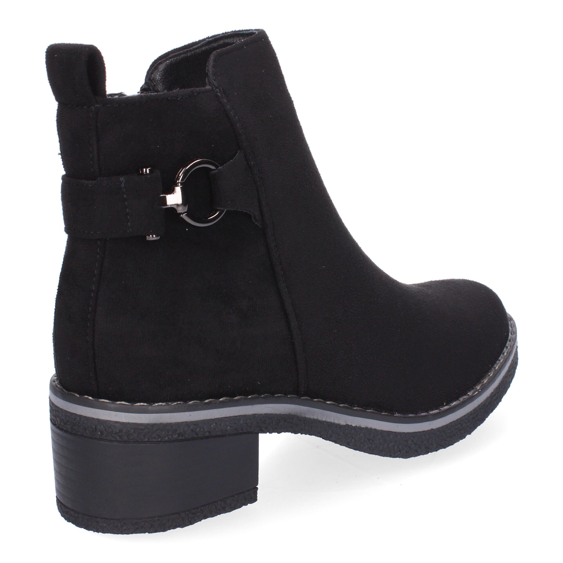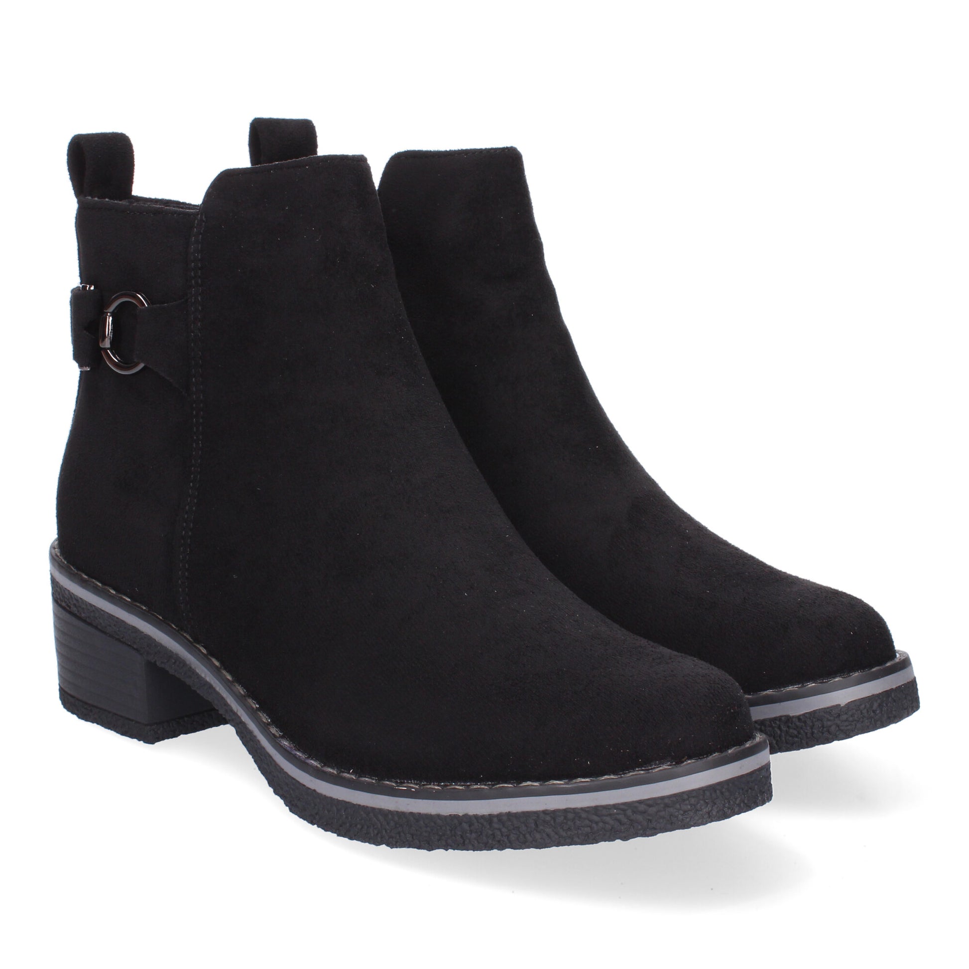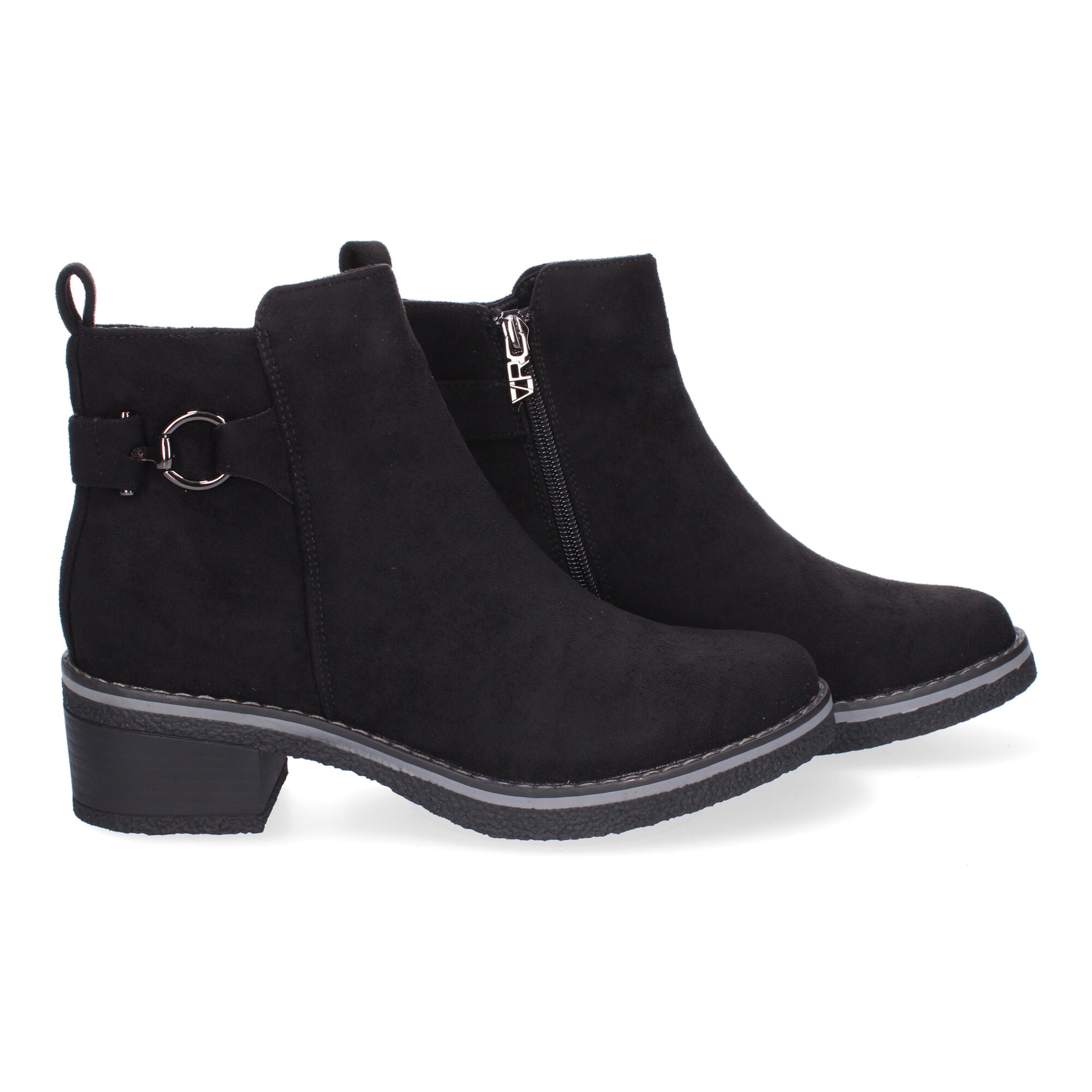 Botines de Tacón para Mujer Comodos y Elegantes Adorno Metálico Punta Redonda y Cierre de Cremallera.