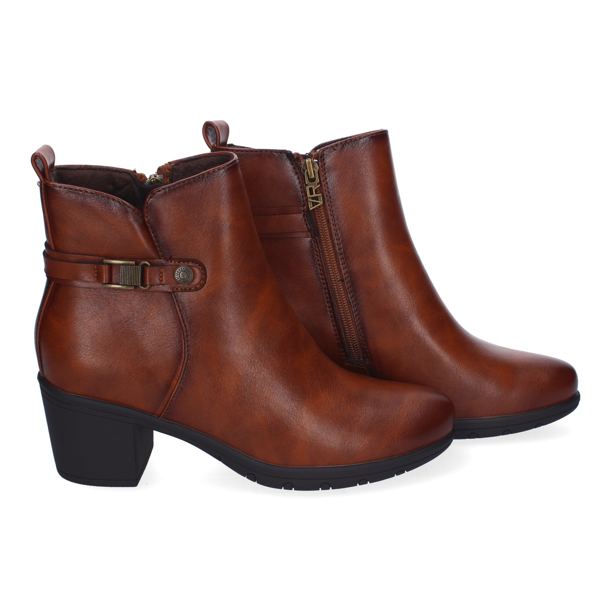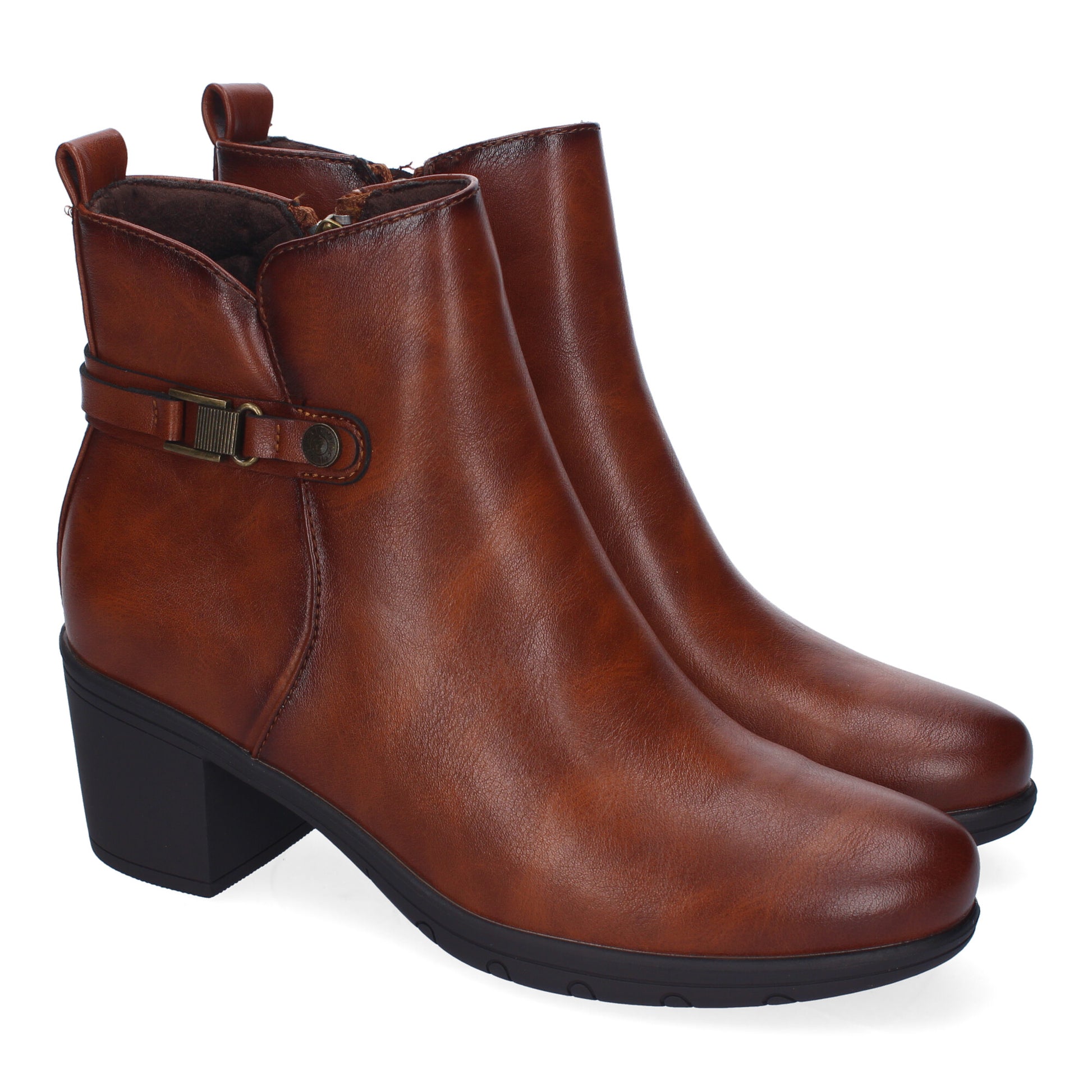 Botines de Tacón para Mujer Comodos y Eleganes Adorno Metalico en la Caña Punta Redonda y Cierre de Cremallera Lateral.
