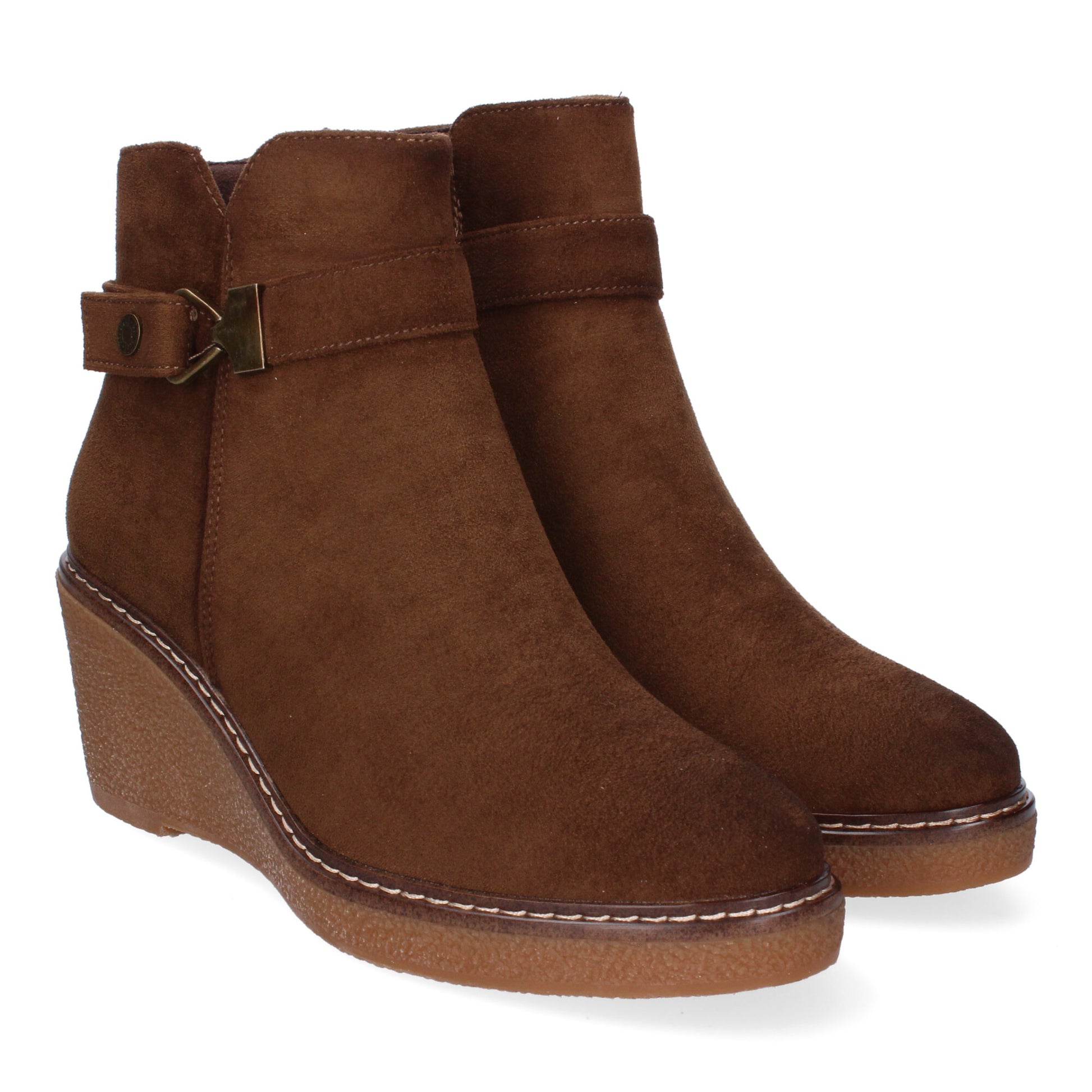 Botines de Cuña para Mujer Comodos Diseño Elegante con Cremallera Lateral y Adorno de Correa en la Caña Ideal para Uso Diario