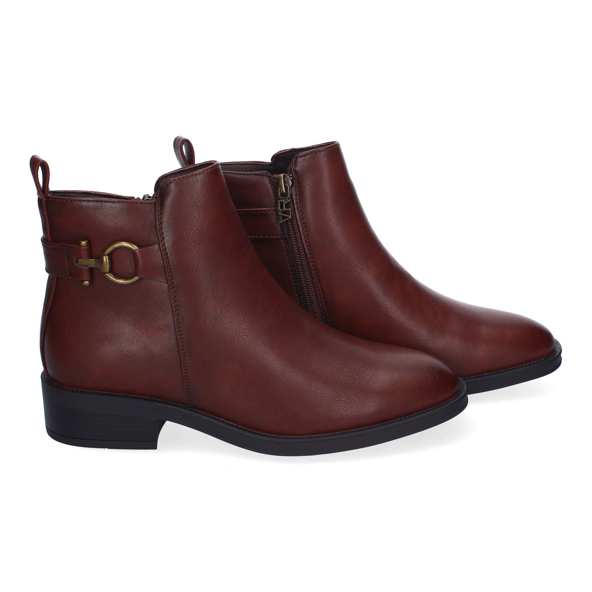 Botines de Tacón Campero para Mujer Comodos y Eleganes Adorno Metalico en la Caña Punta Redonda y Cierre de Cremallera Lateral.