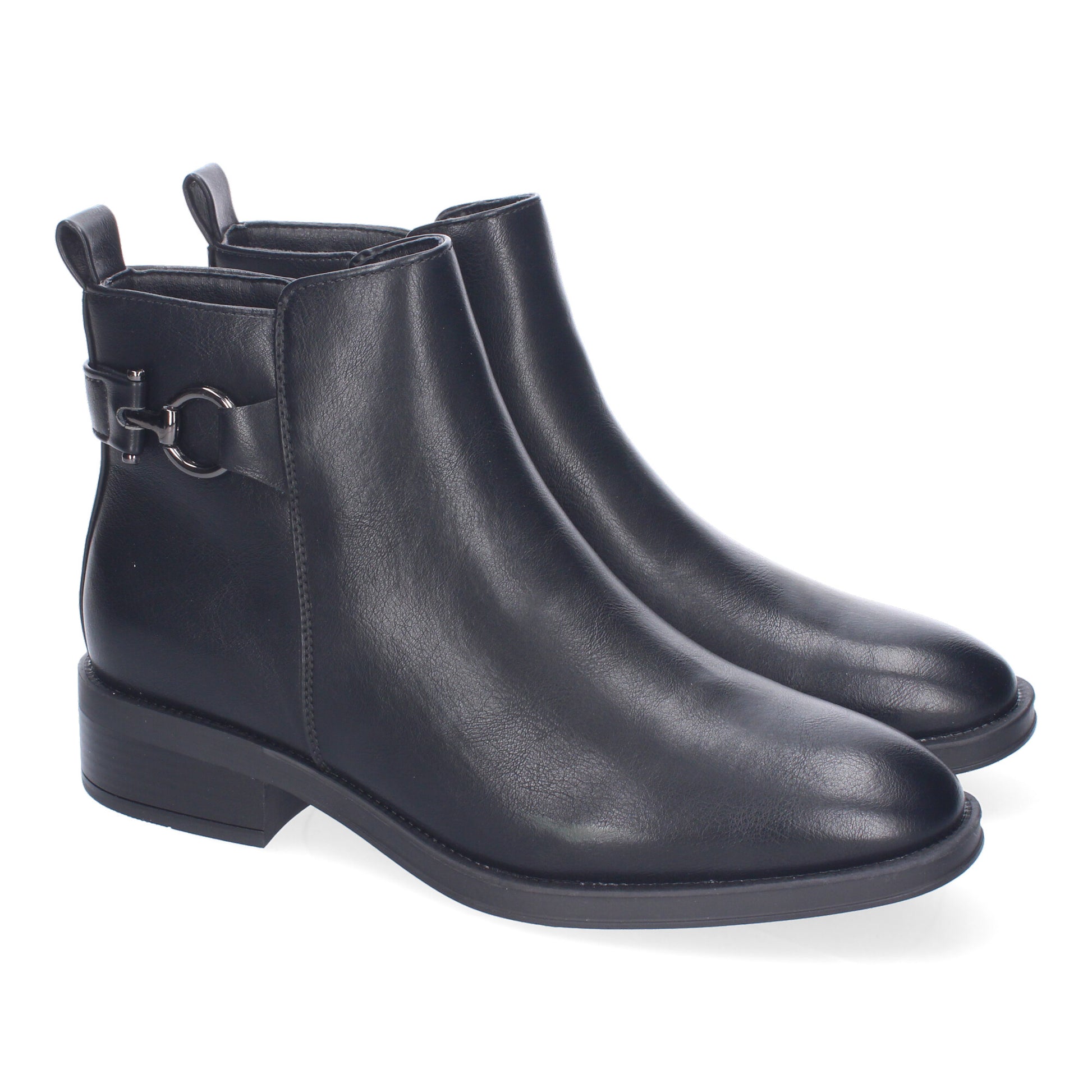 Botines de Tacón Campero para Mujer Comodos y Eleganes Adorno Metalico en la Caña Punta Redonda y Cierre de Cremallera Lateral.