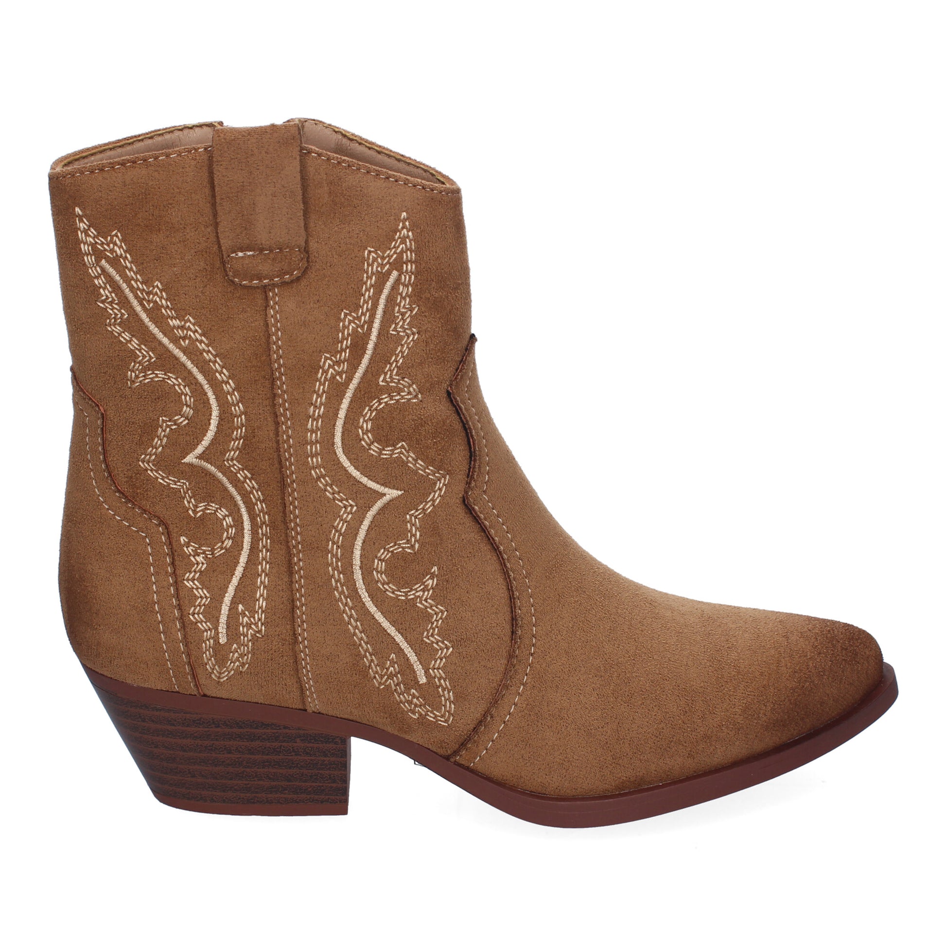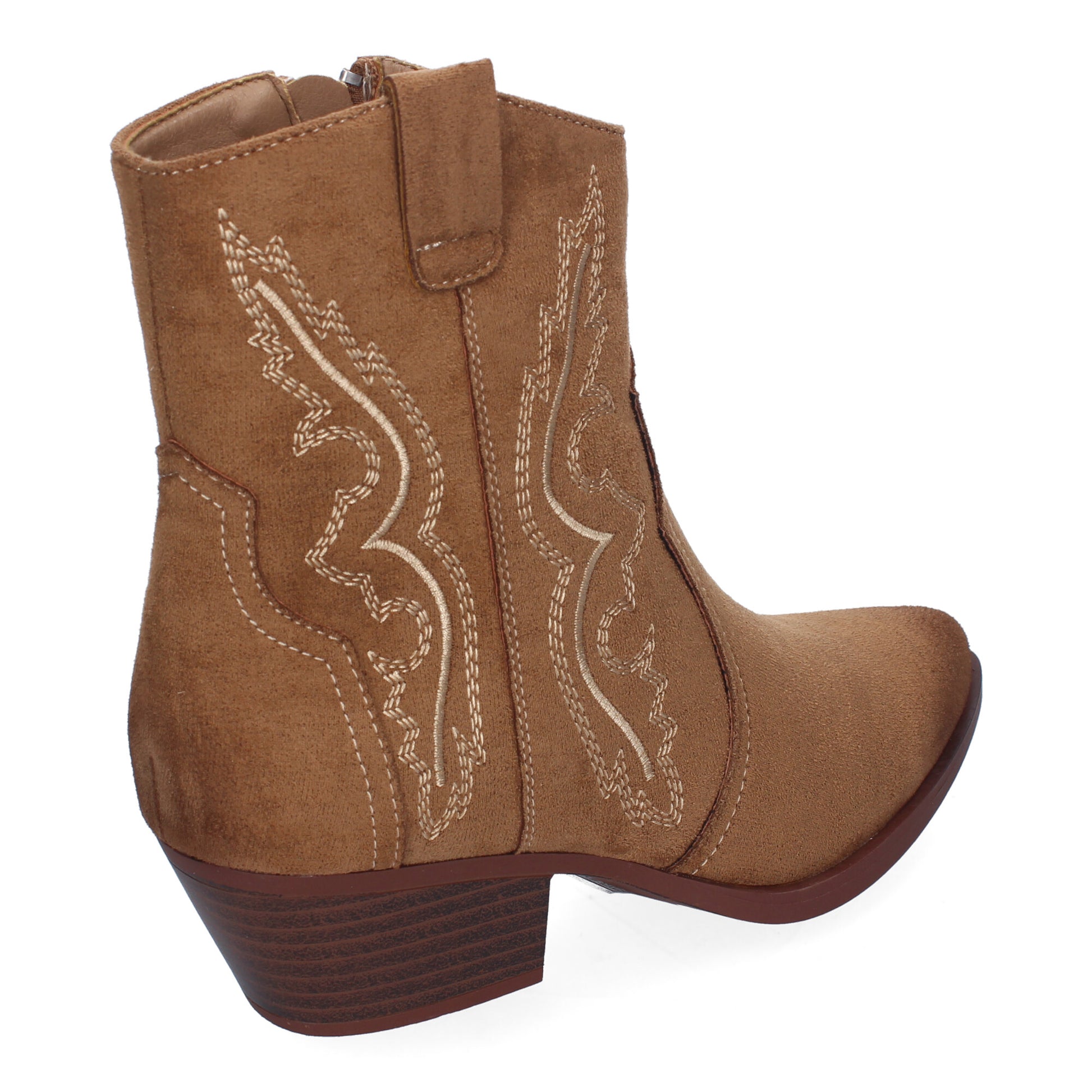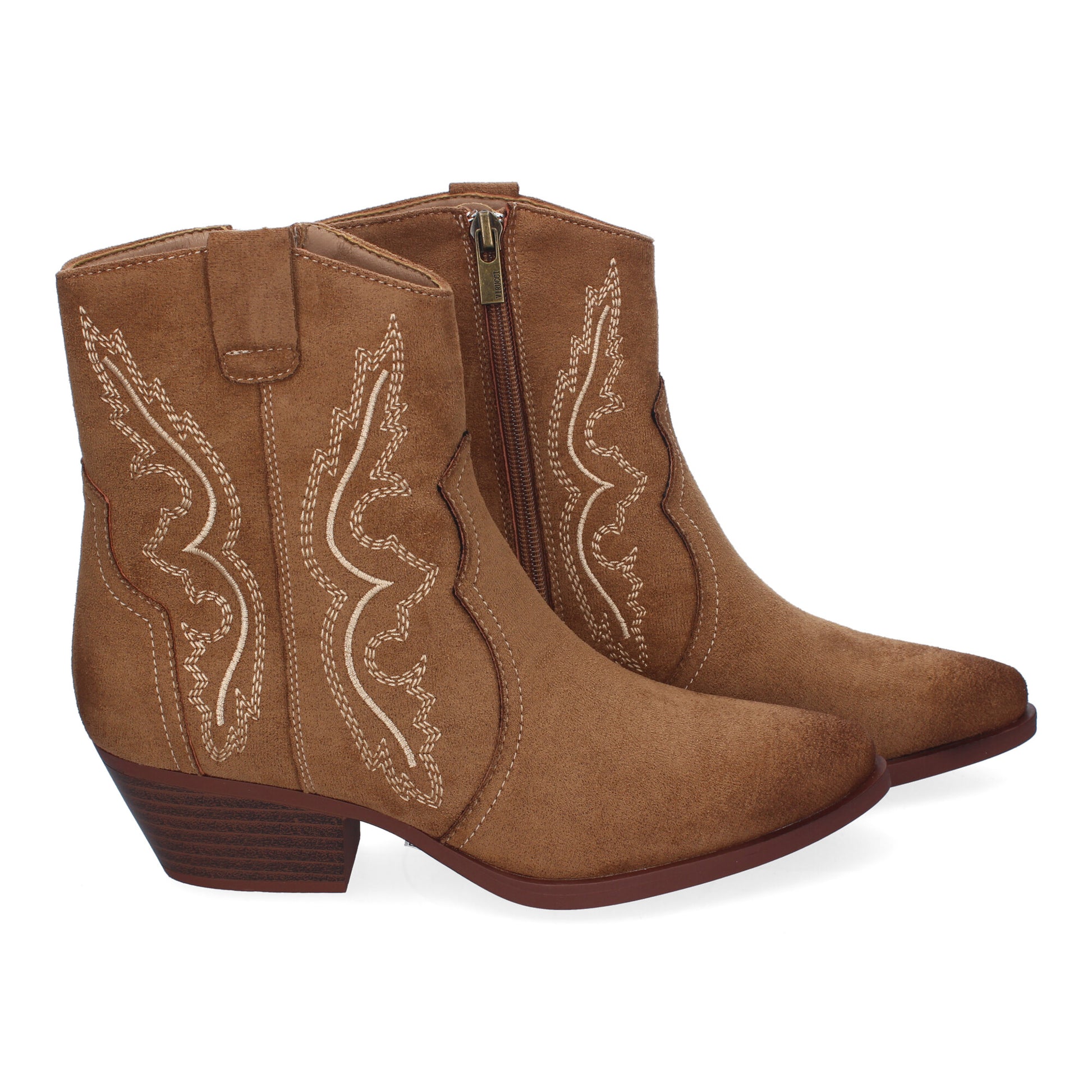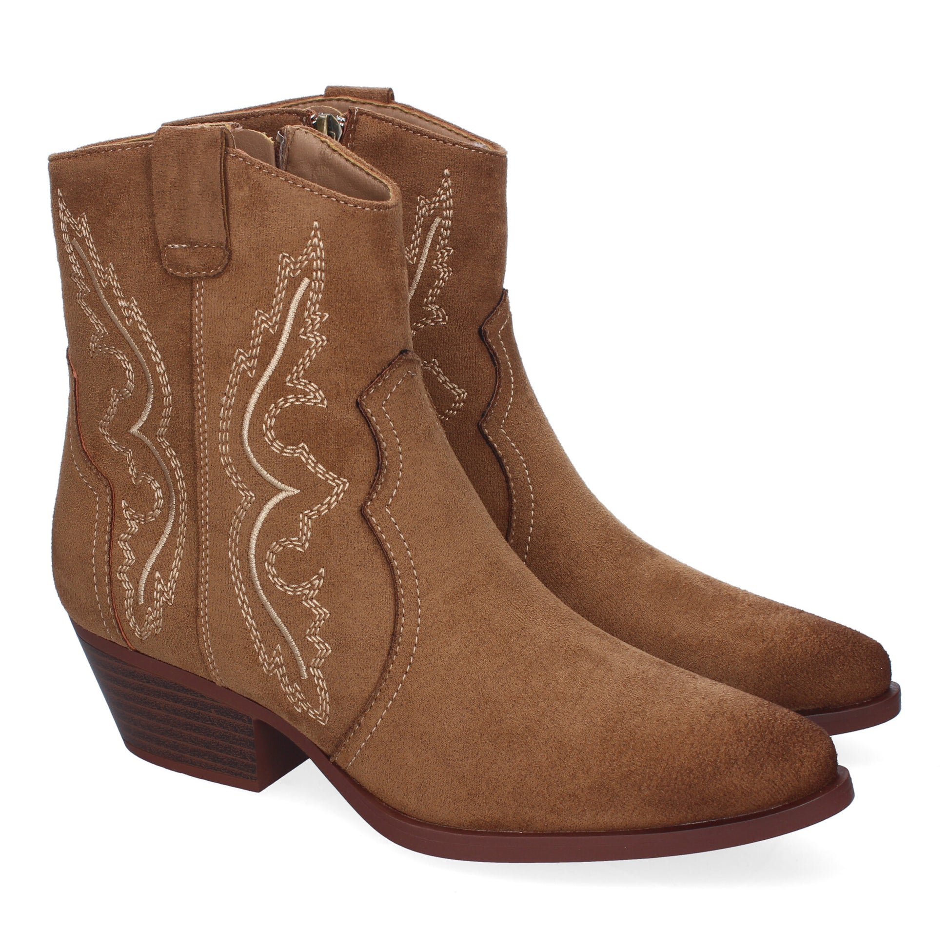 Botín de Tacón Campero para Mujer Comodos y Elegantes Diseño Bordado en la Caña y Cierre de Cremallera Lateral.