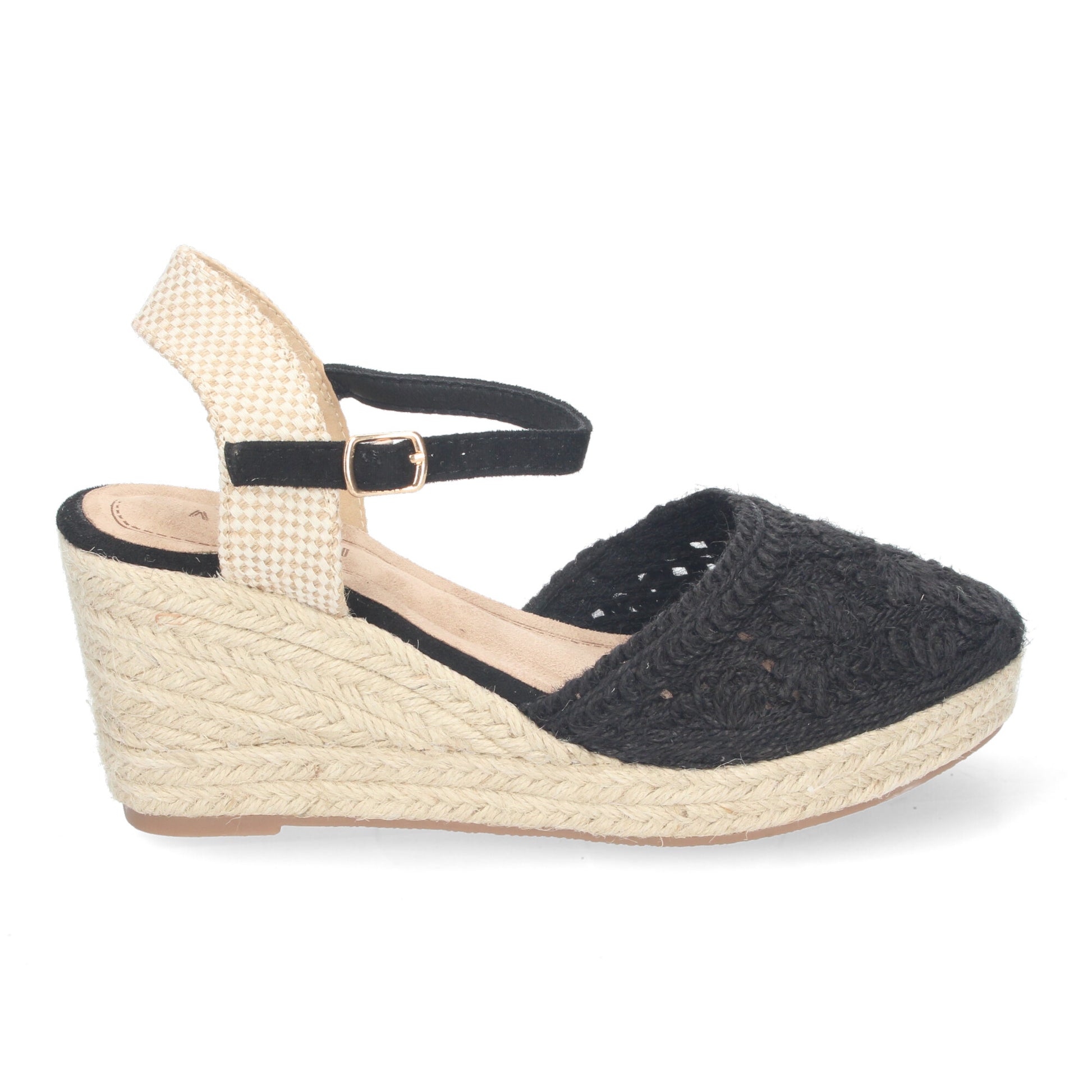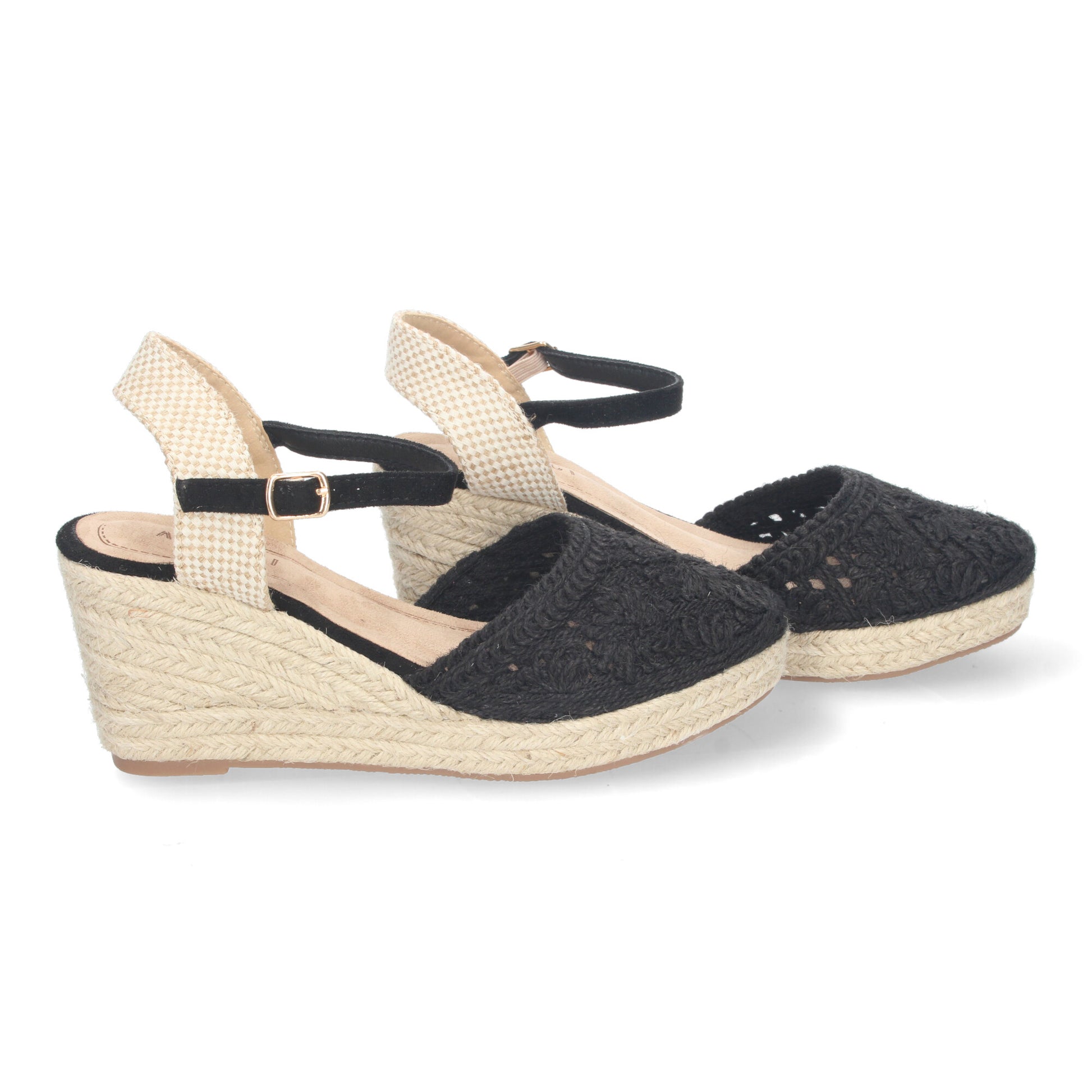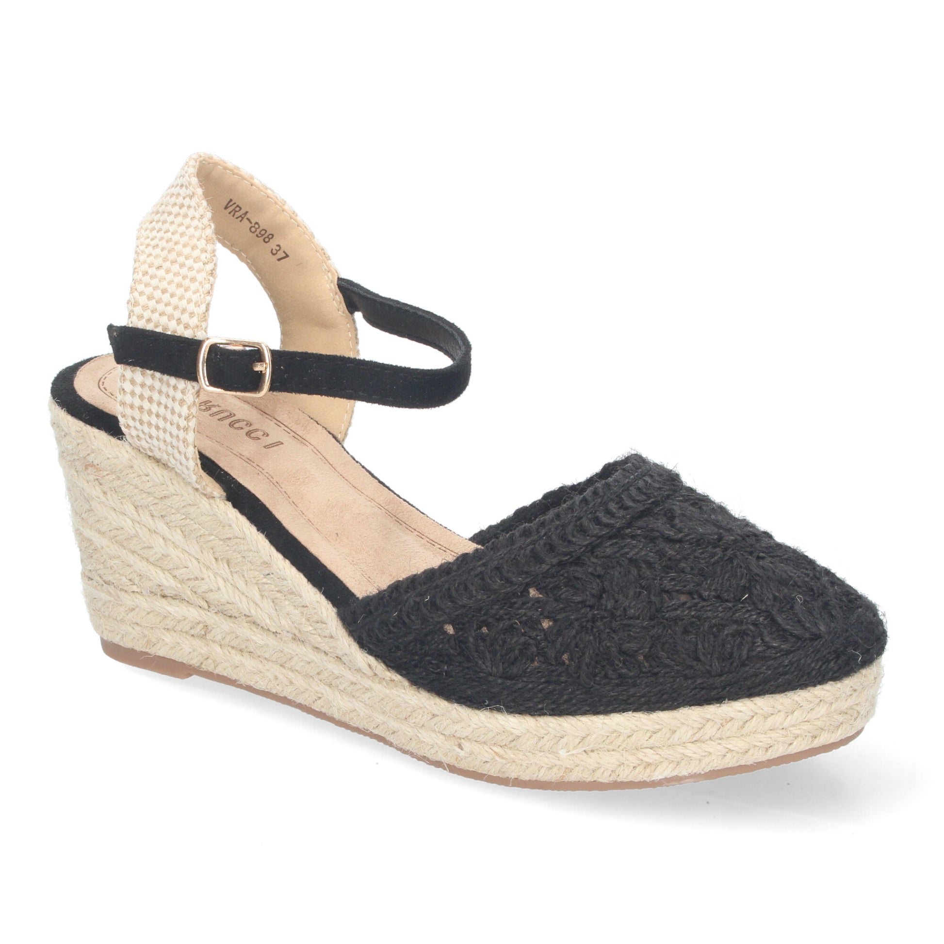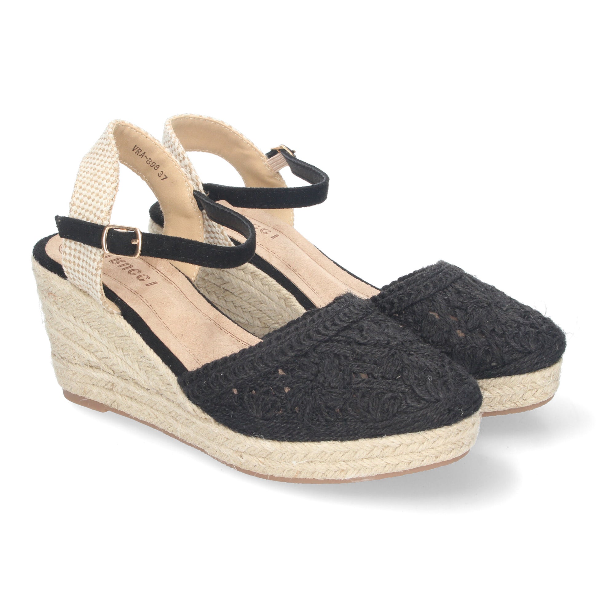 Sandalia de Cuña de Yute para Mujer Estilo Valenciana con Bordados de Flores Cierre de Hebilla ideal para Primavera-Verano.